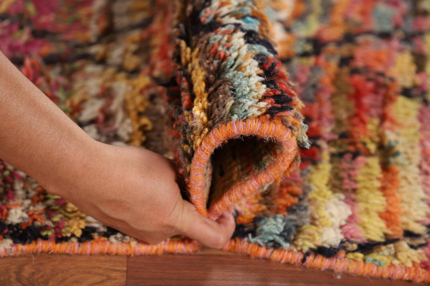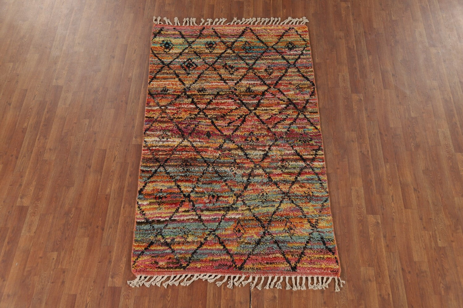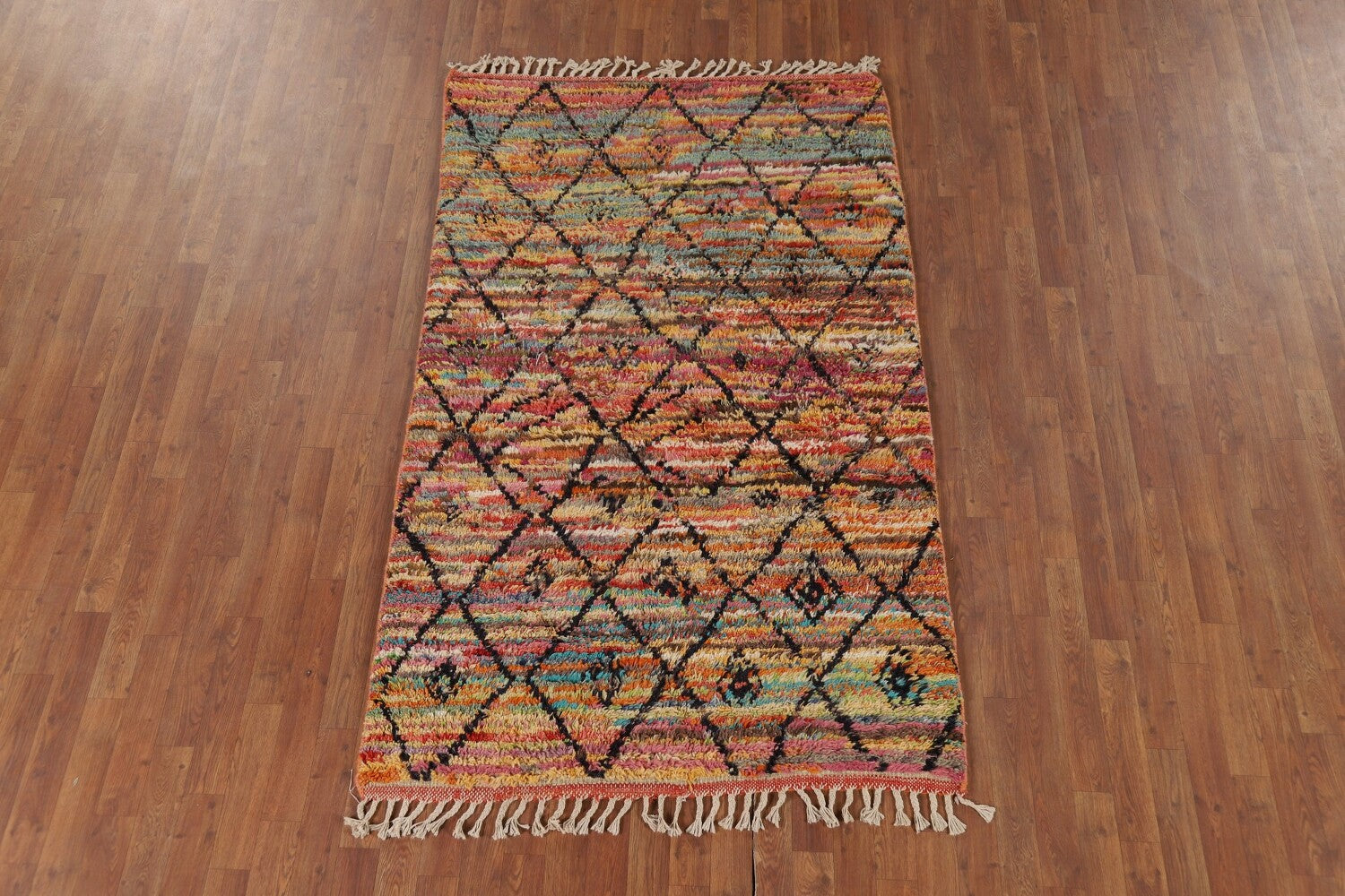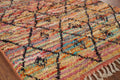 A Beautiful Genuine Pakistan Moroccan rug is Hand Knotted by skillful weavers in Pakistan with 100% Wool Material. This rug is in New, First Quality condition. dimensions are 6' 11'' X 4' 2'' in foot and 211 X 127 in centimeter. the primary color is Multi-Colored.