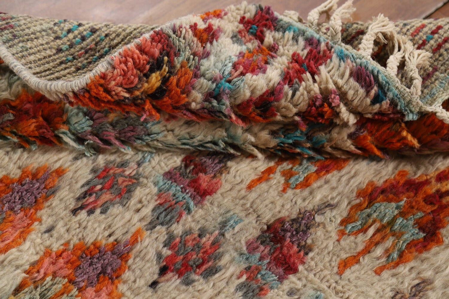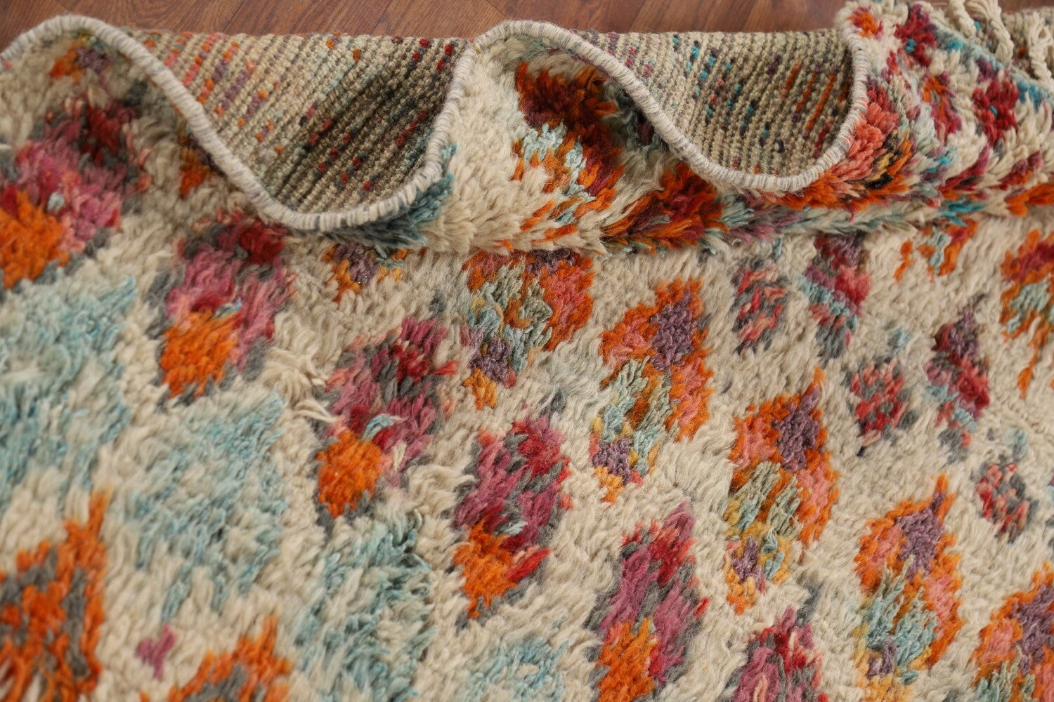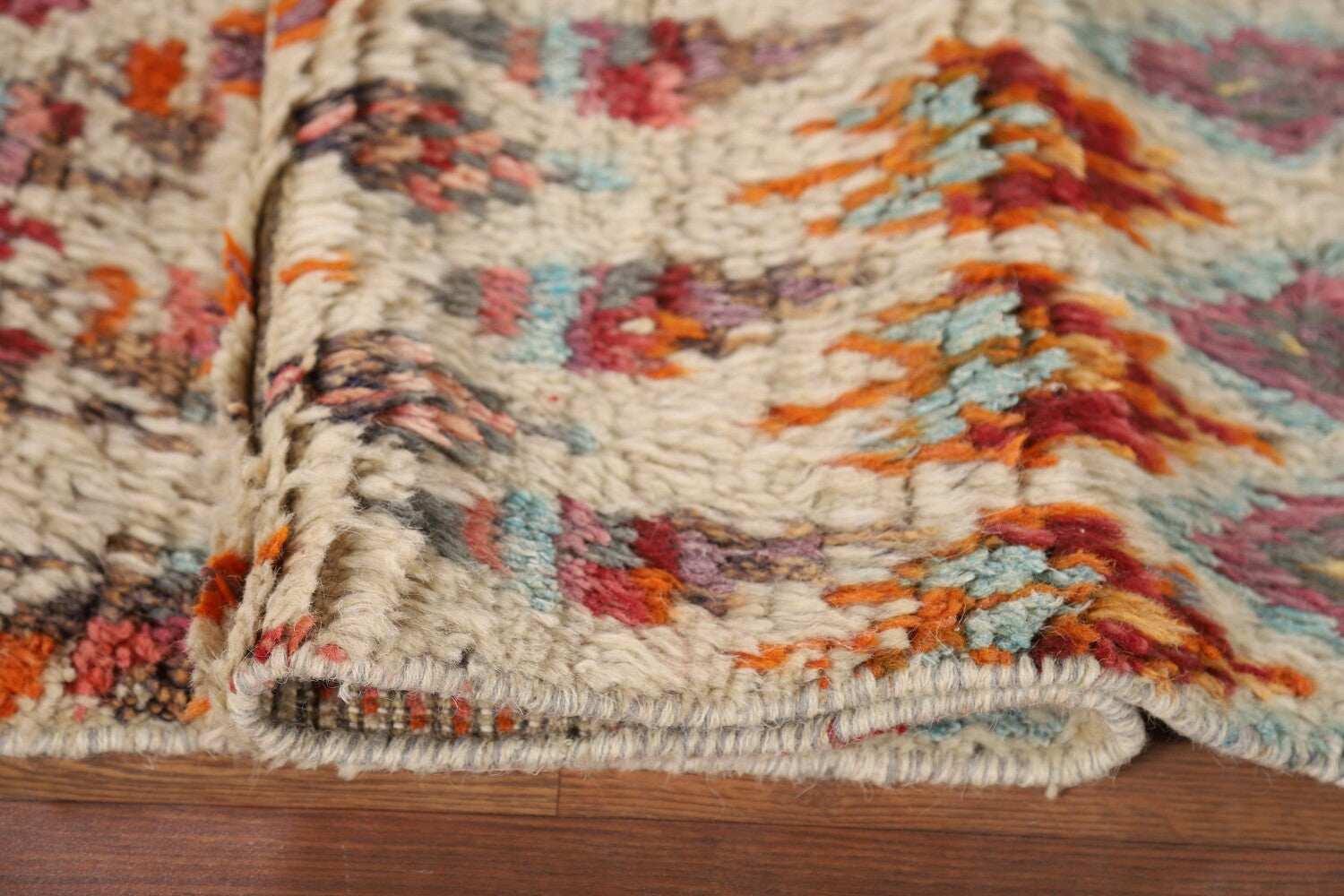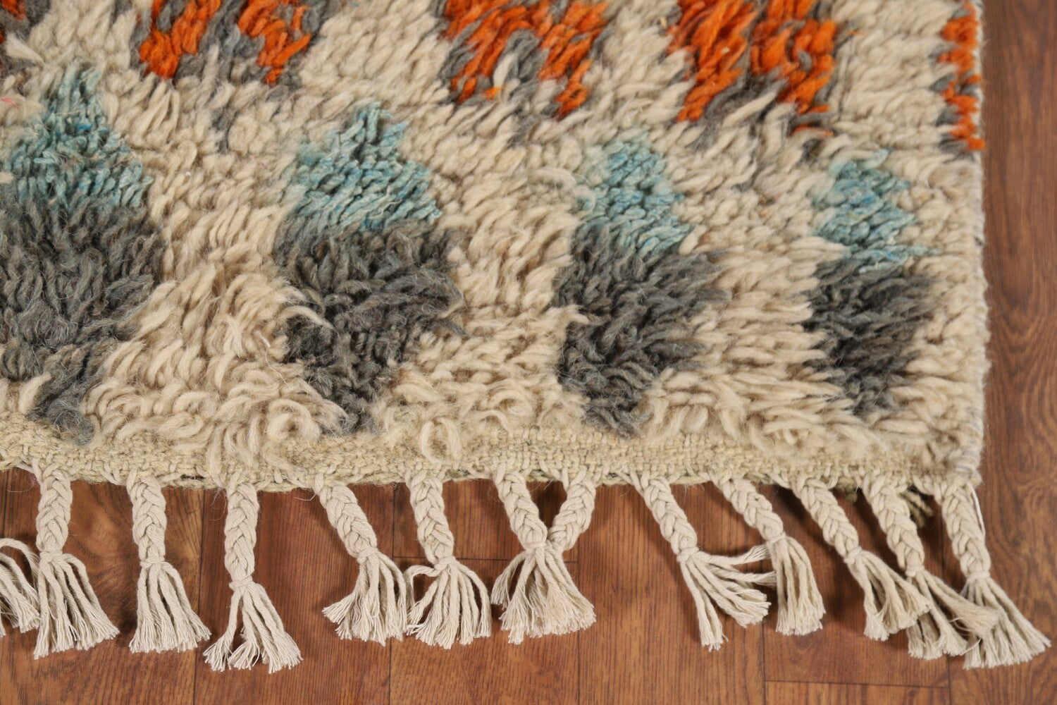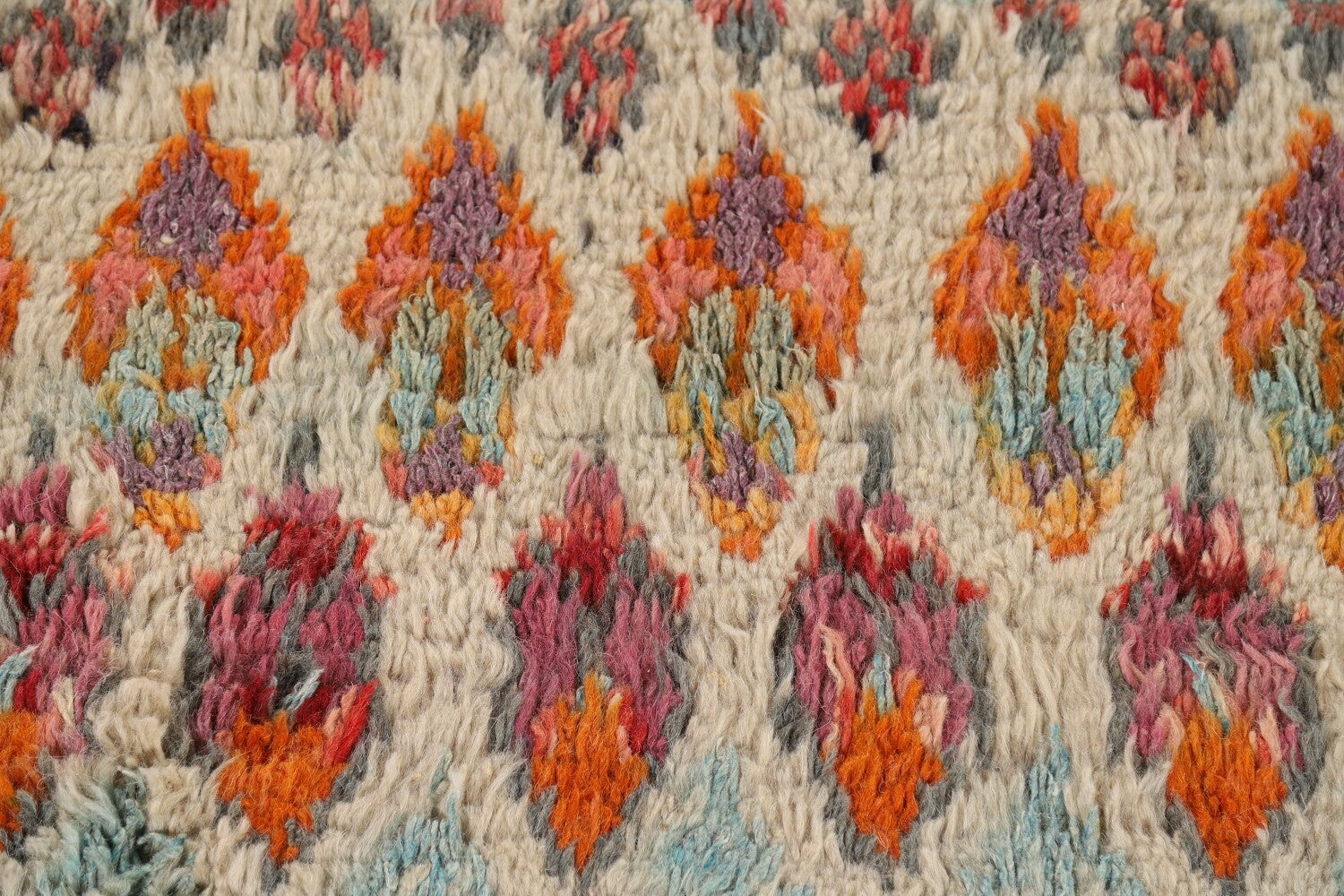 A Beautiful Genuine Pakistan Moroccan rug is Hand Knotted by skillful weavers in Pakistan with 100% Wool Material. This rug is in New, First Quality condition. dimensions are 6' 6'' X 3' 3'' in foot and 198 X 99 in centimeter. the primary color is Beige & Ivories.