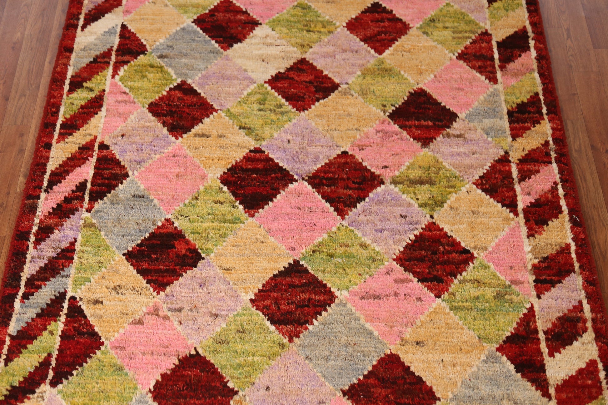 A Beautiful Genuine Pakistan Moroccan rug is Hand Knotted by skillful weavers in Pakistan with 100% Wool Material. This rug is in New, First Quality condition. dimensions are 6' 6'' X 5' 3'' in foot and 198 X 160 in centimeter. the primary color is Multi-Colored.