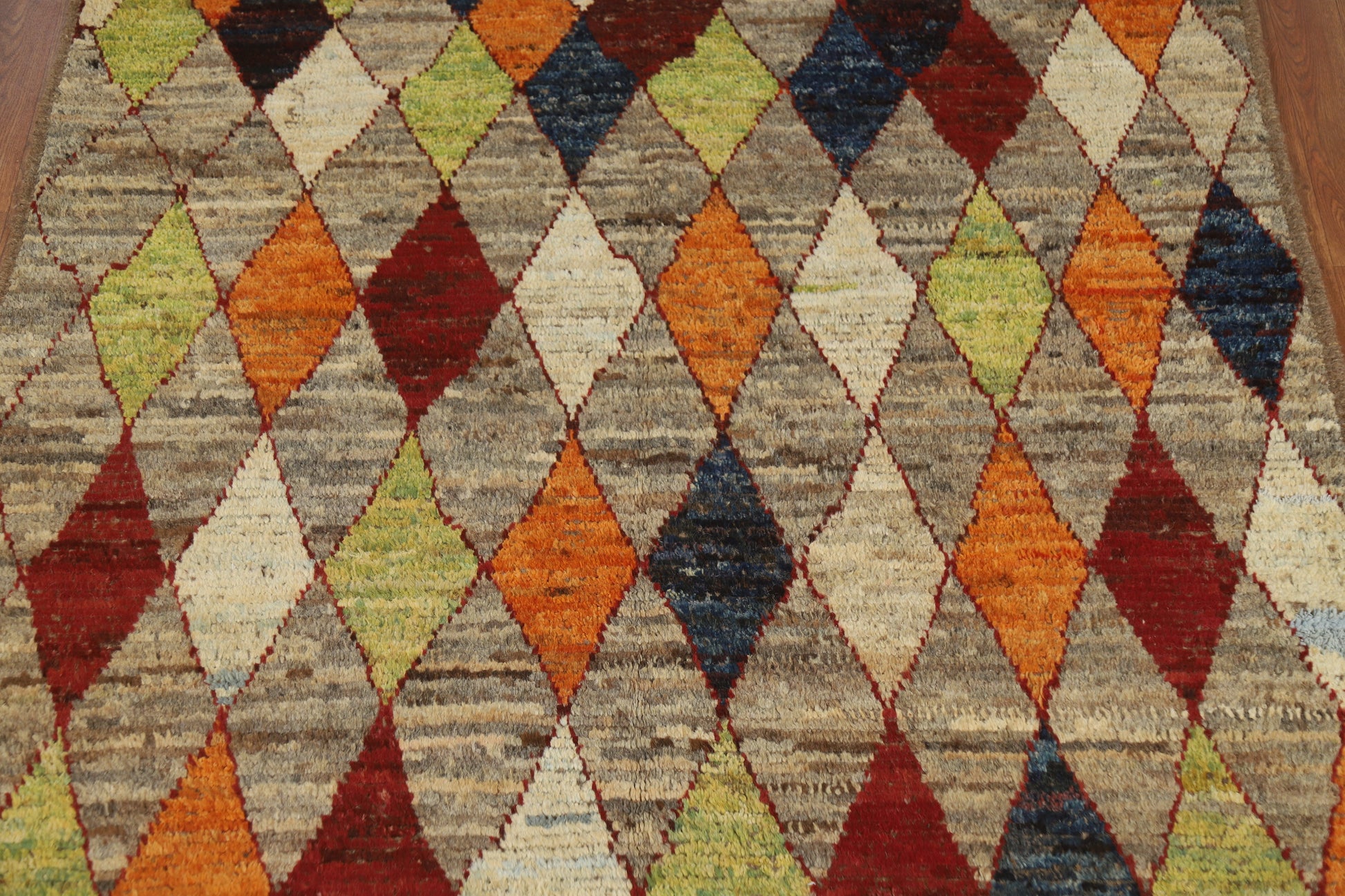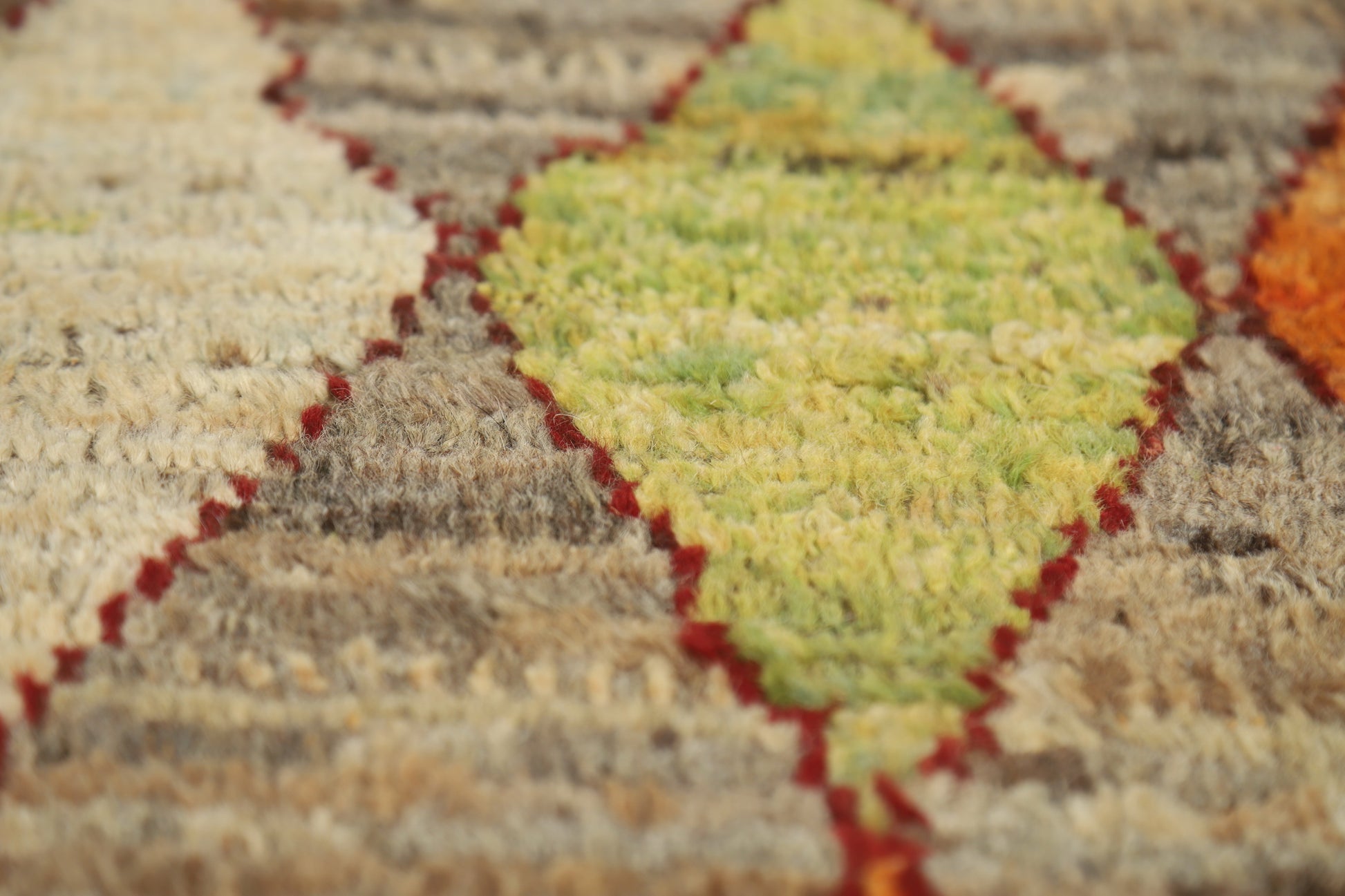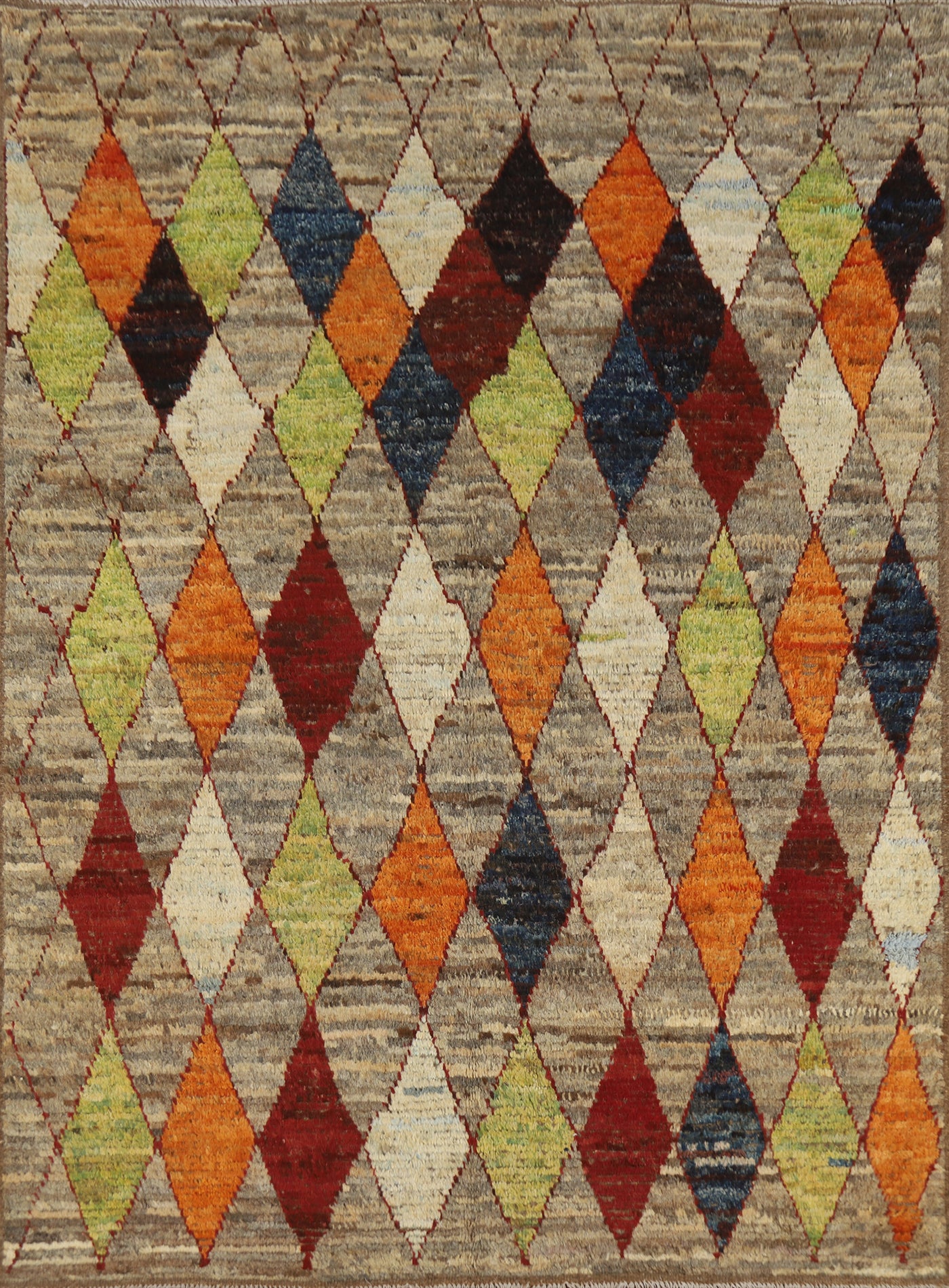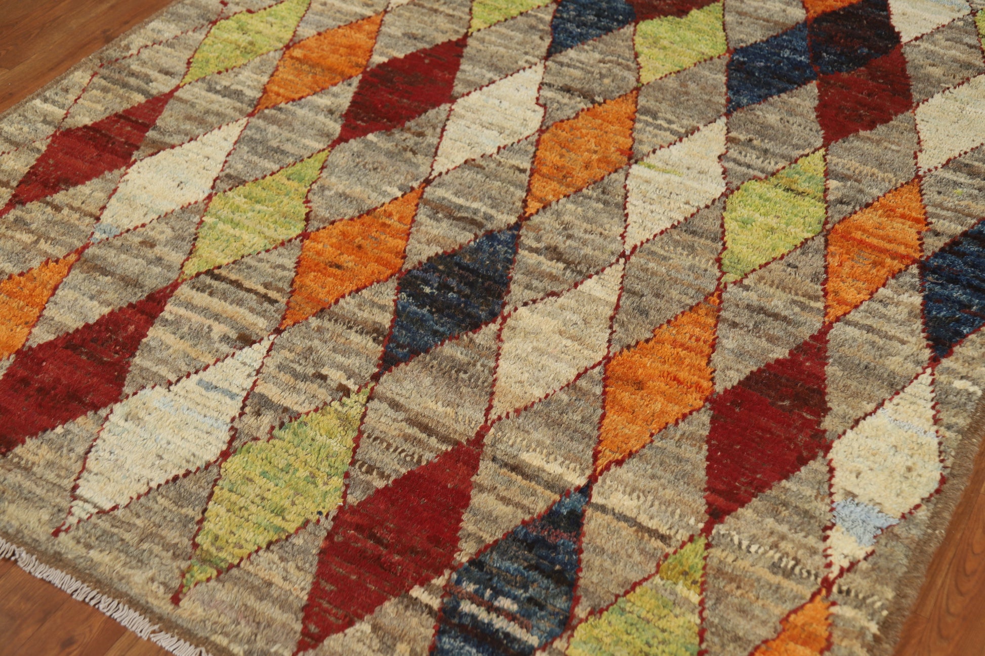 A Beautiful Genuine Pakistan Moroccan rug is Hand Knotted by skillful weavers in Pakistan with 100% Wool Material. This rug is in New, First Quality condition. dimensions are 6' 7'' X 5' 0'' in foot and 201 X 152 in centimeter. the primary color is Multi-Colored.