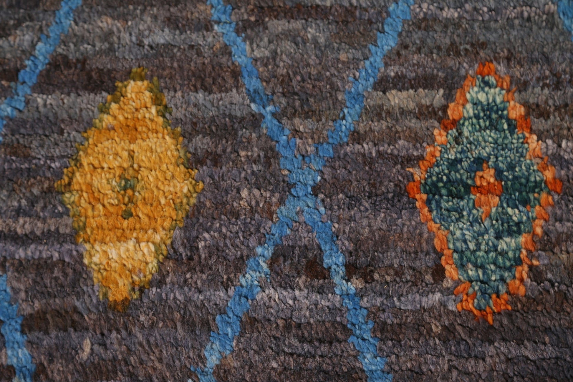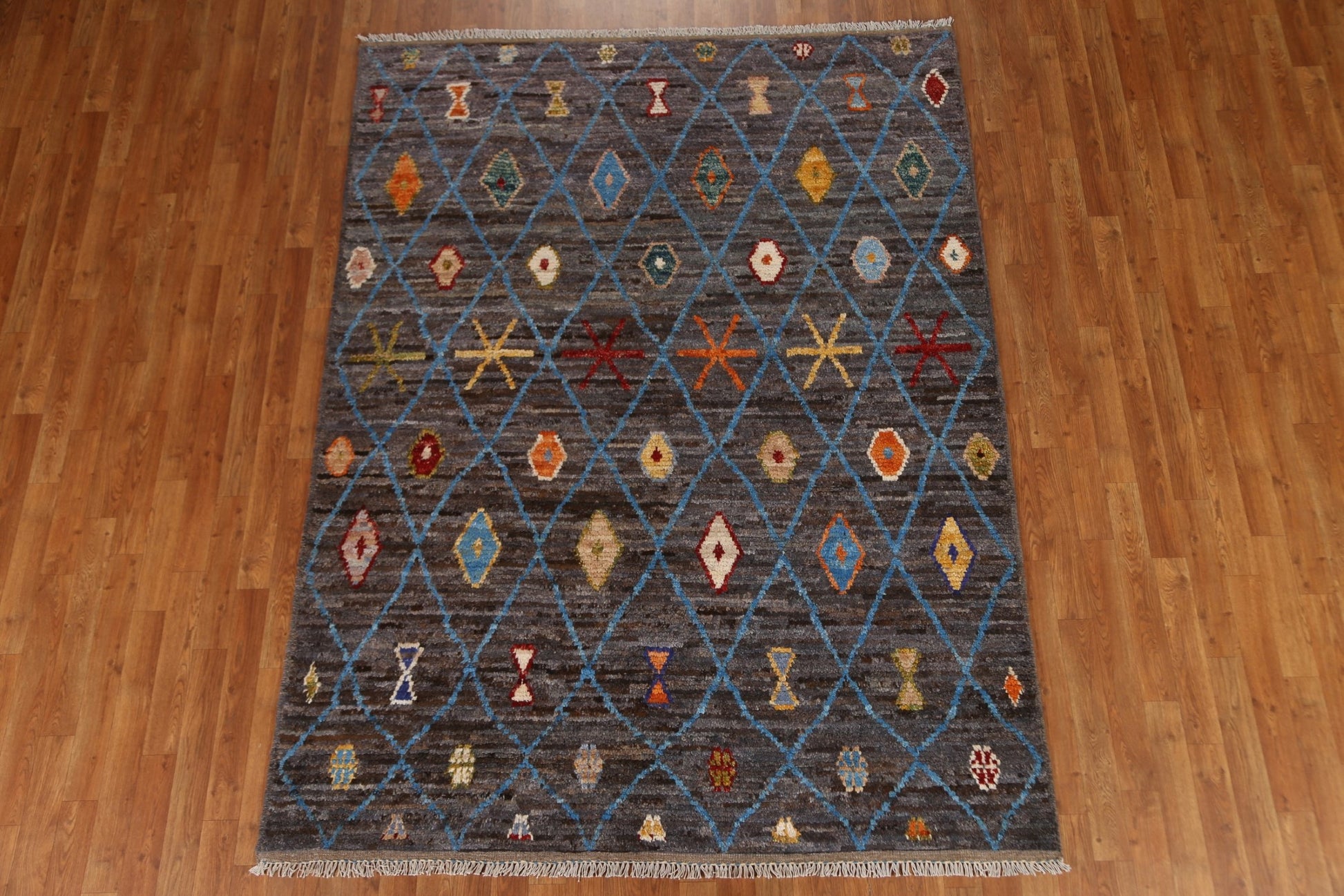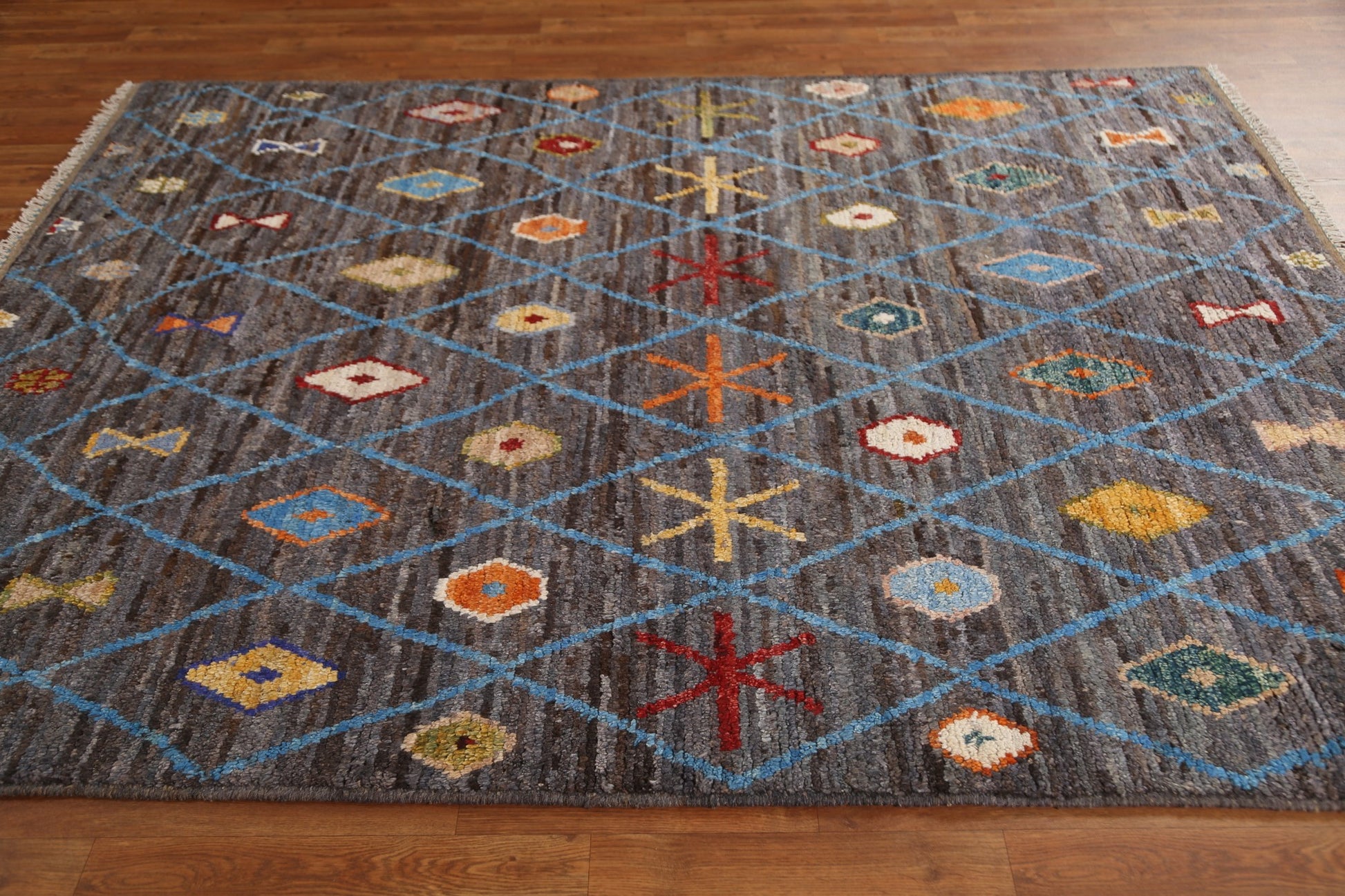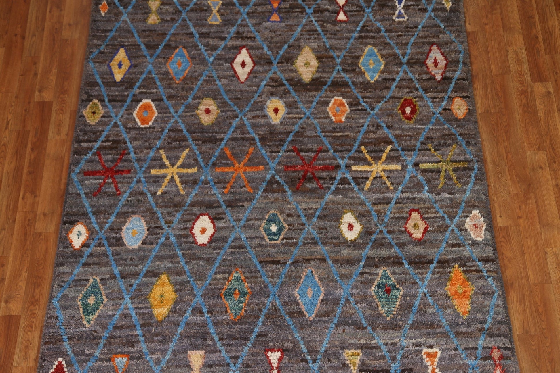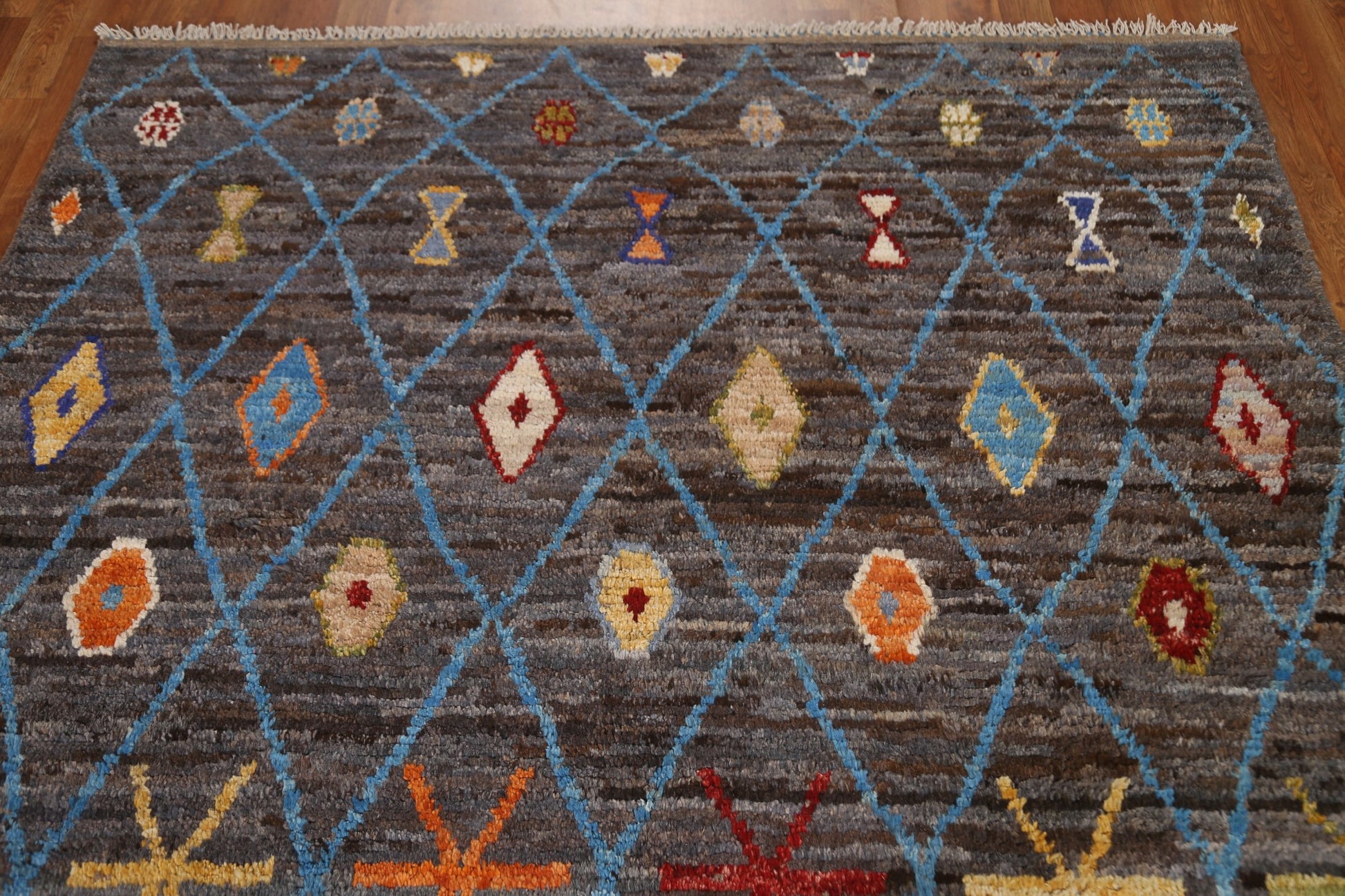 A Beautiful Genuine Pakistan Moroccan rug is Hand Knotted by skillful weavers in Pakistan with 100% Wool Material. This rug is in condition. dimensions are 7' 10'' X 5' 10'' in foot and 239 X 178 in centimeter. the primary color is Greys & Charcoal.