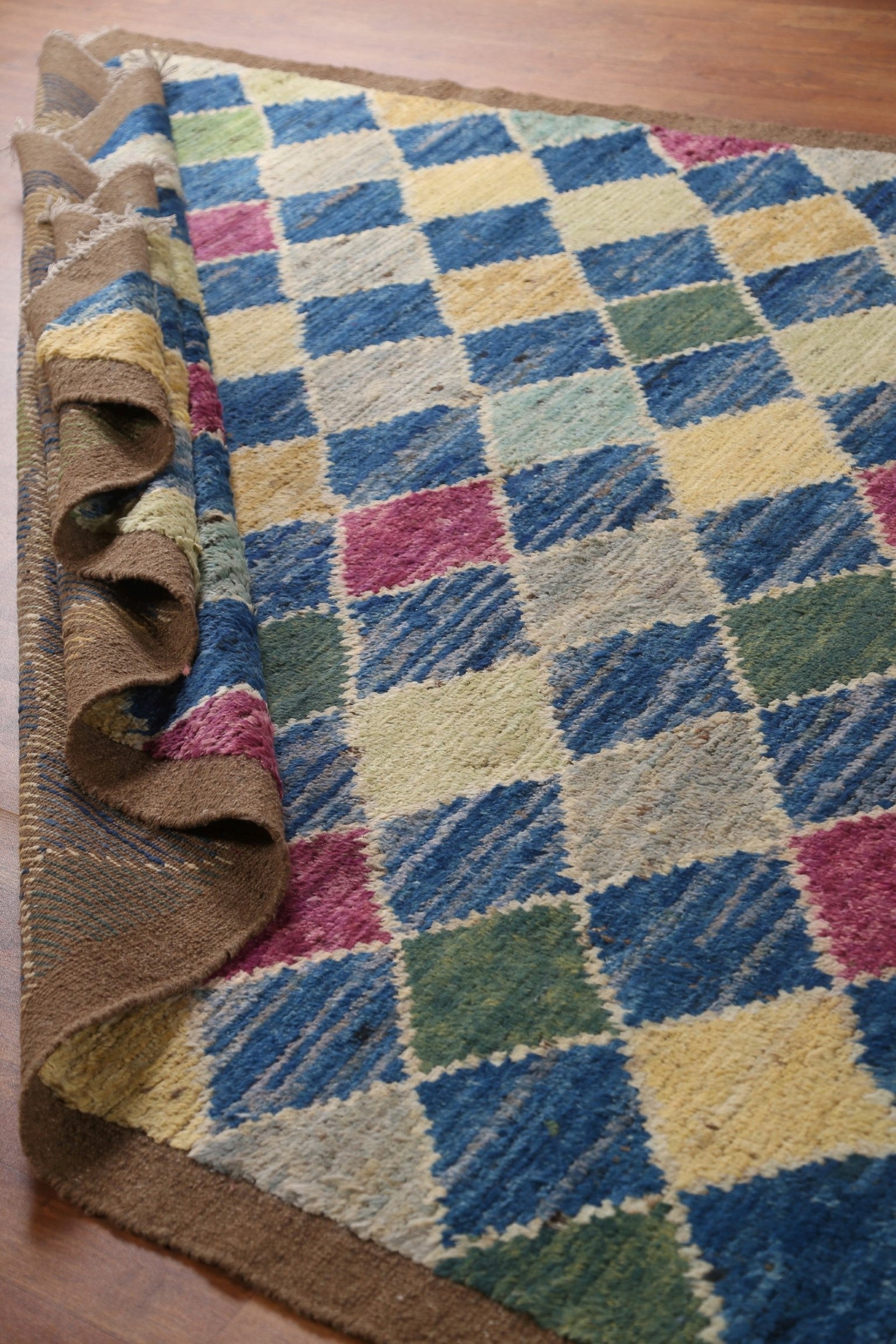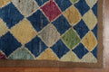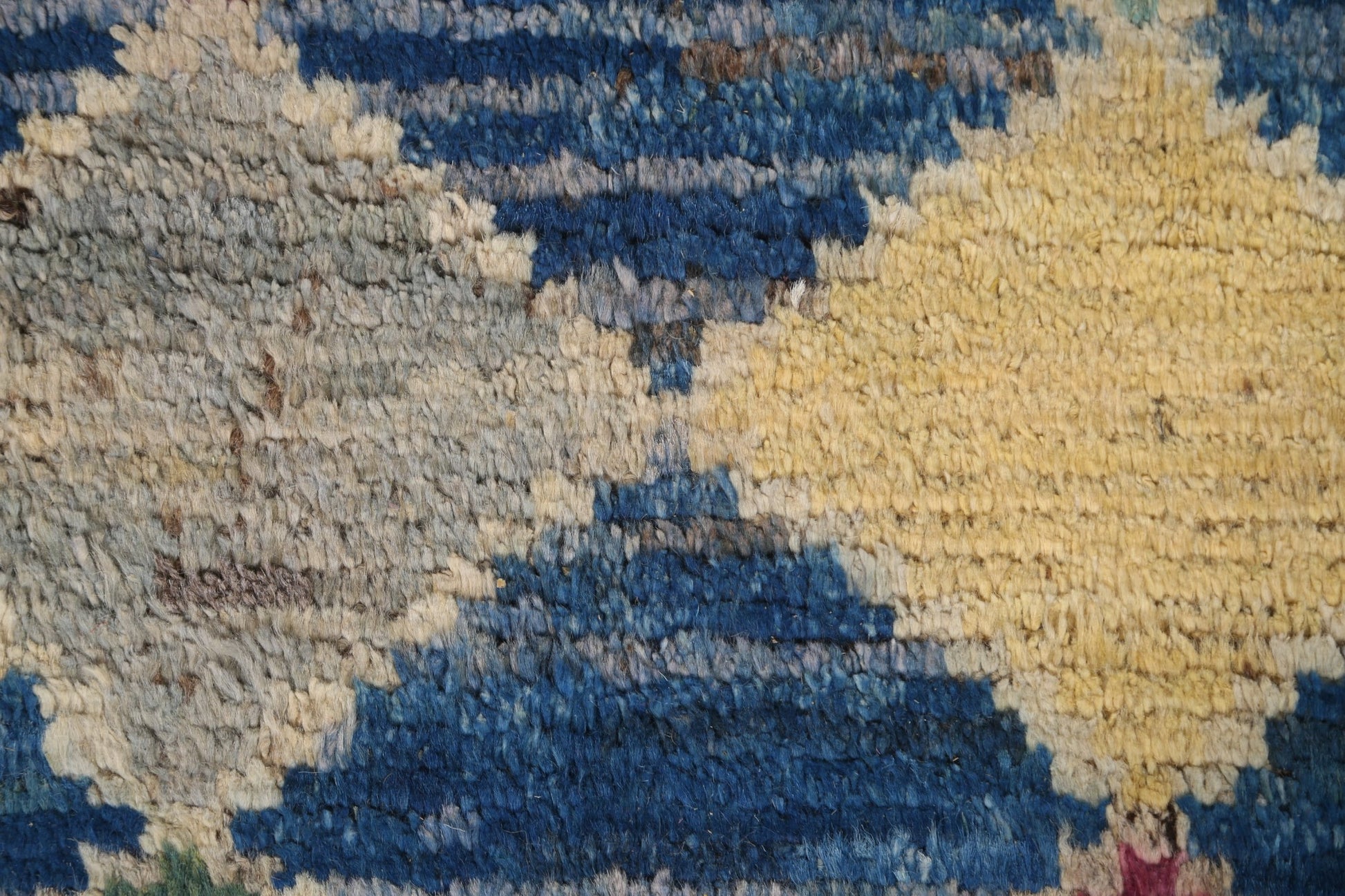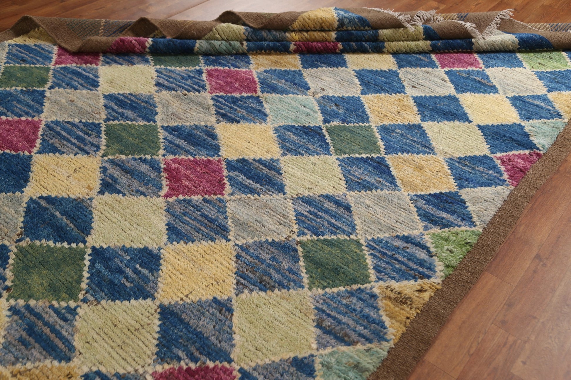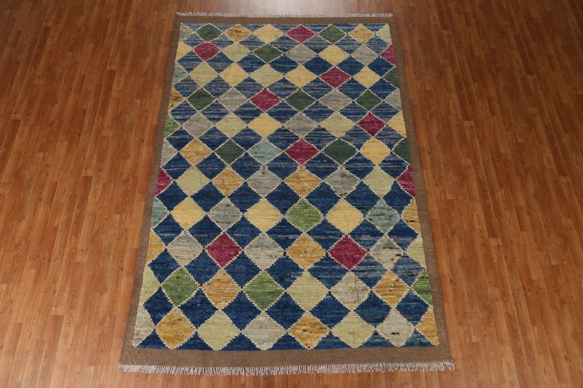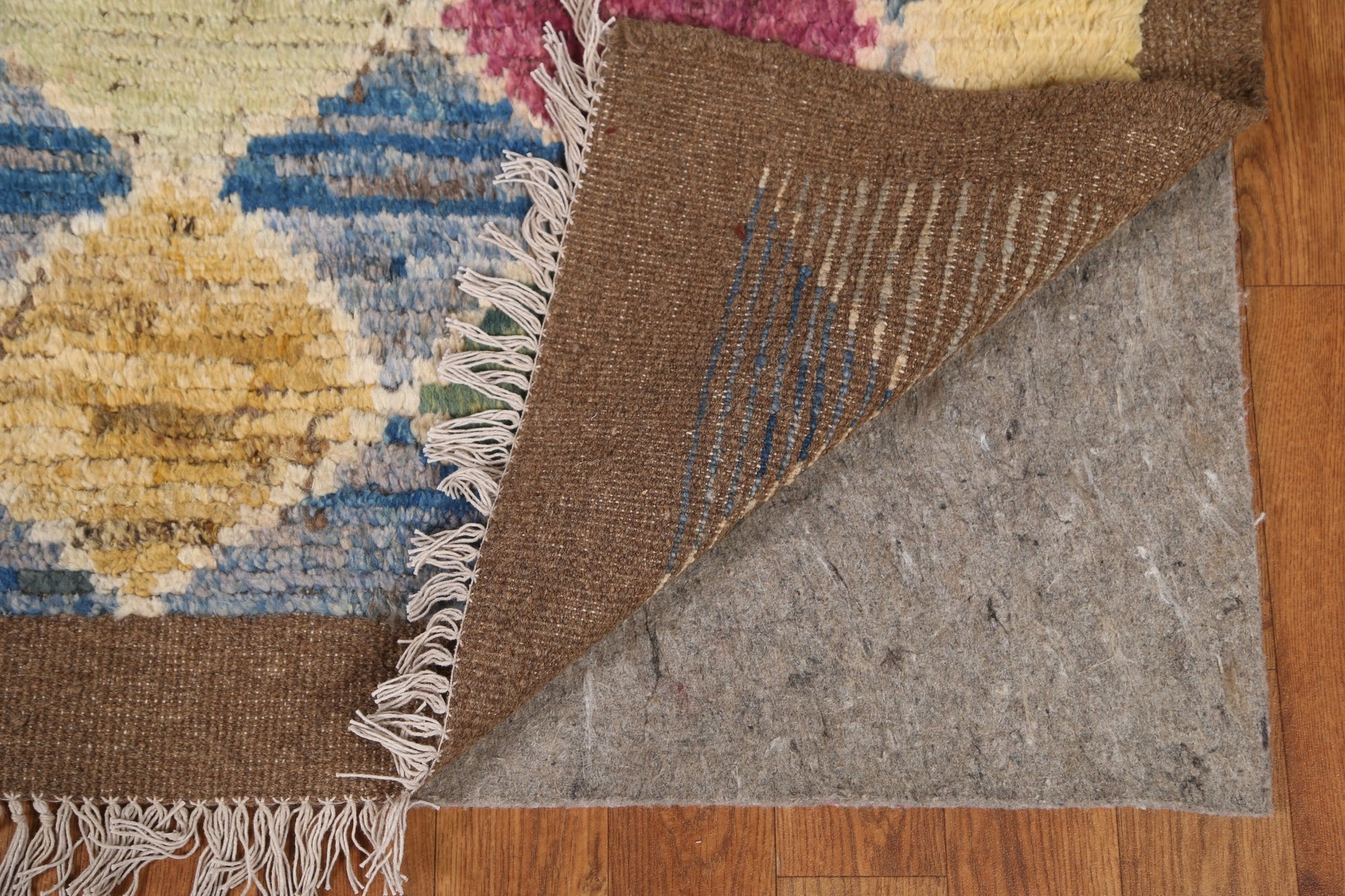 A Beautiful Genuine Pakistan Moroccan rug is Hand Knotted by skillful weavers in Pakistan with 100% Wool Material. This rug is in condition. dimensions are 9' 7'' X 7' 5'' in foot and 292 X 226 in centimeter. the primary color is Navy Blue & Blues.