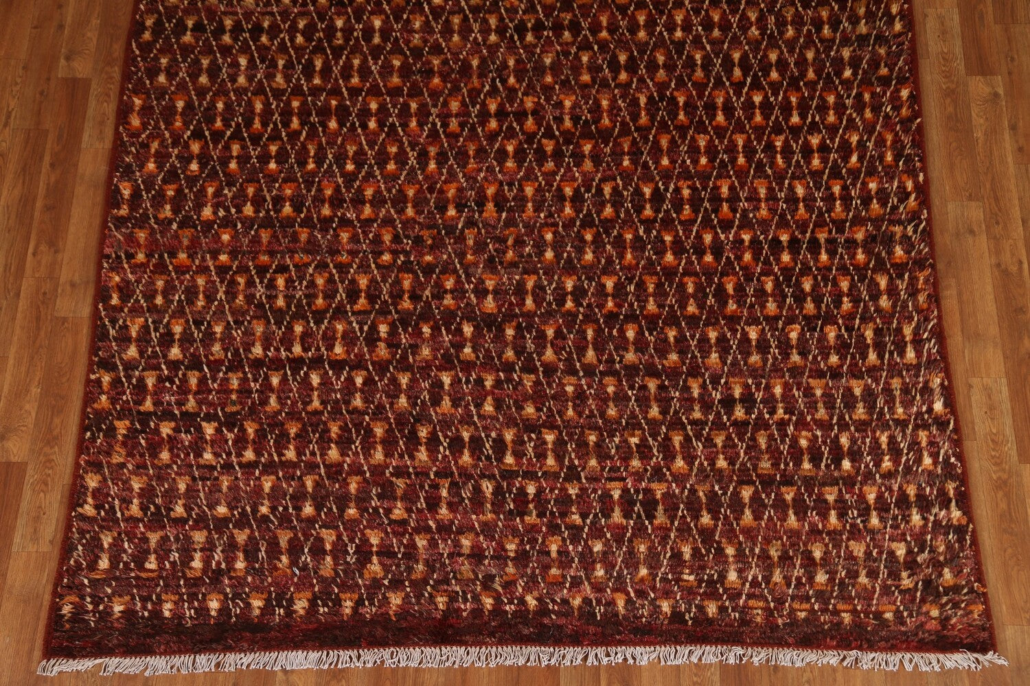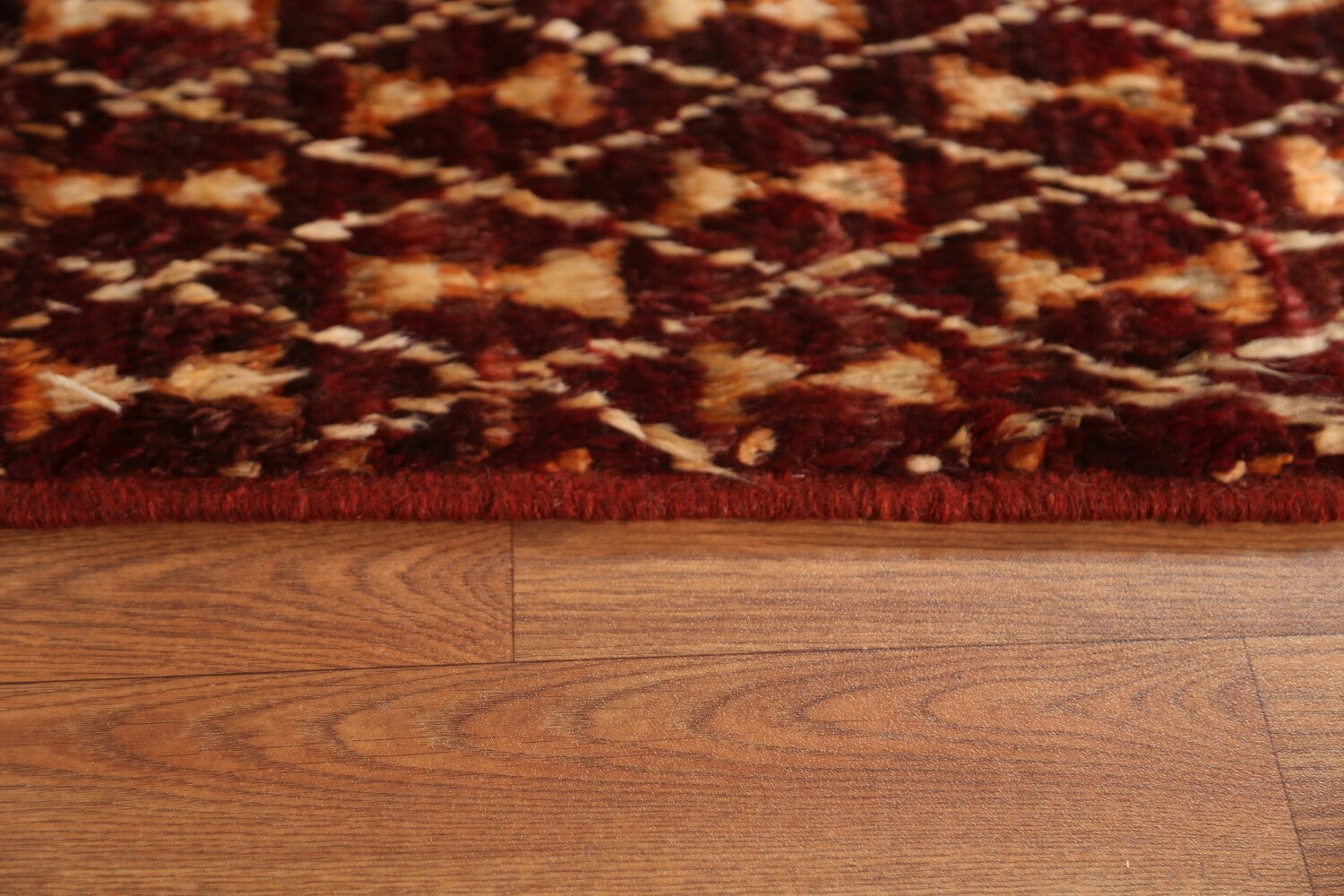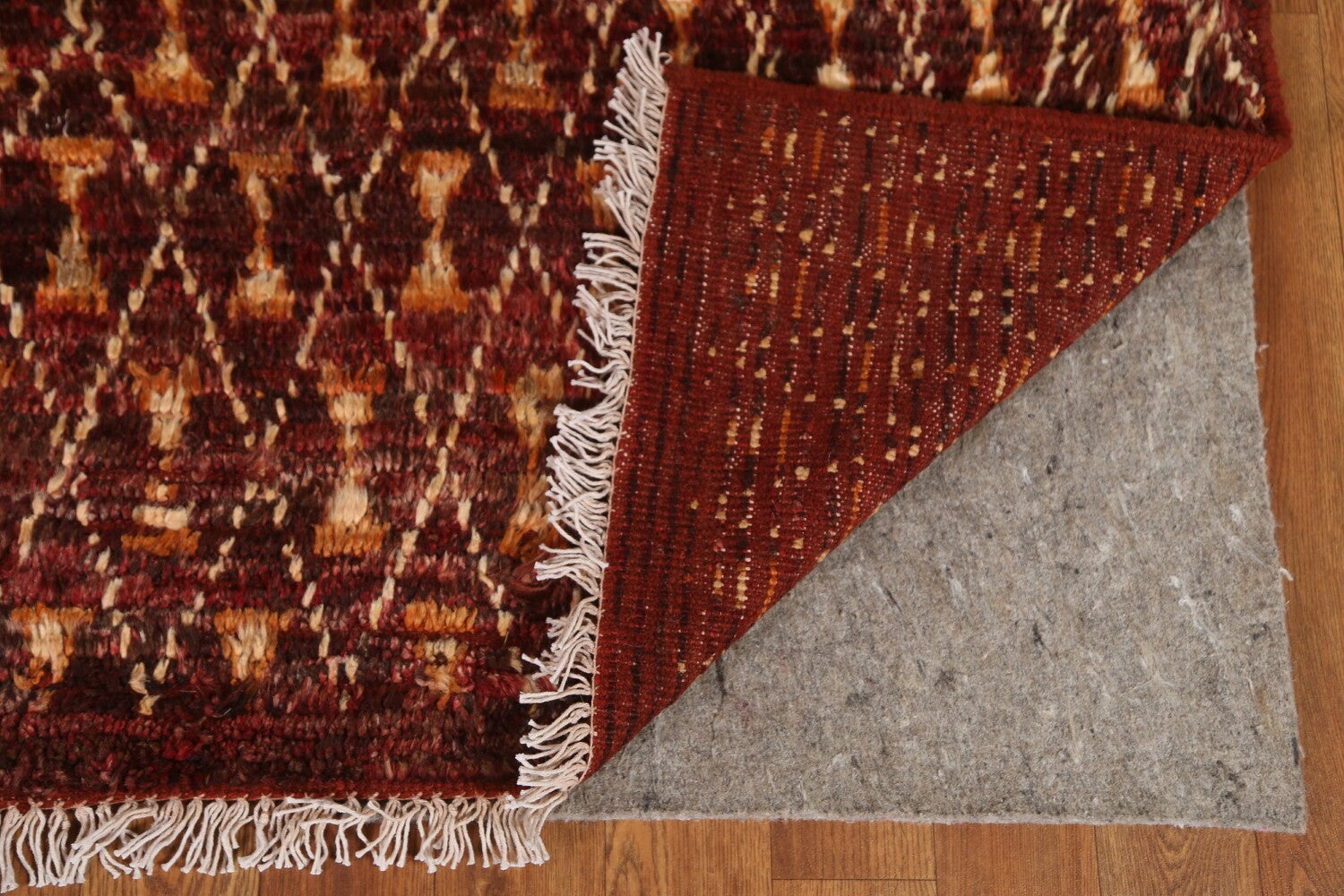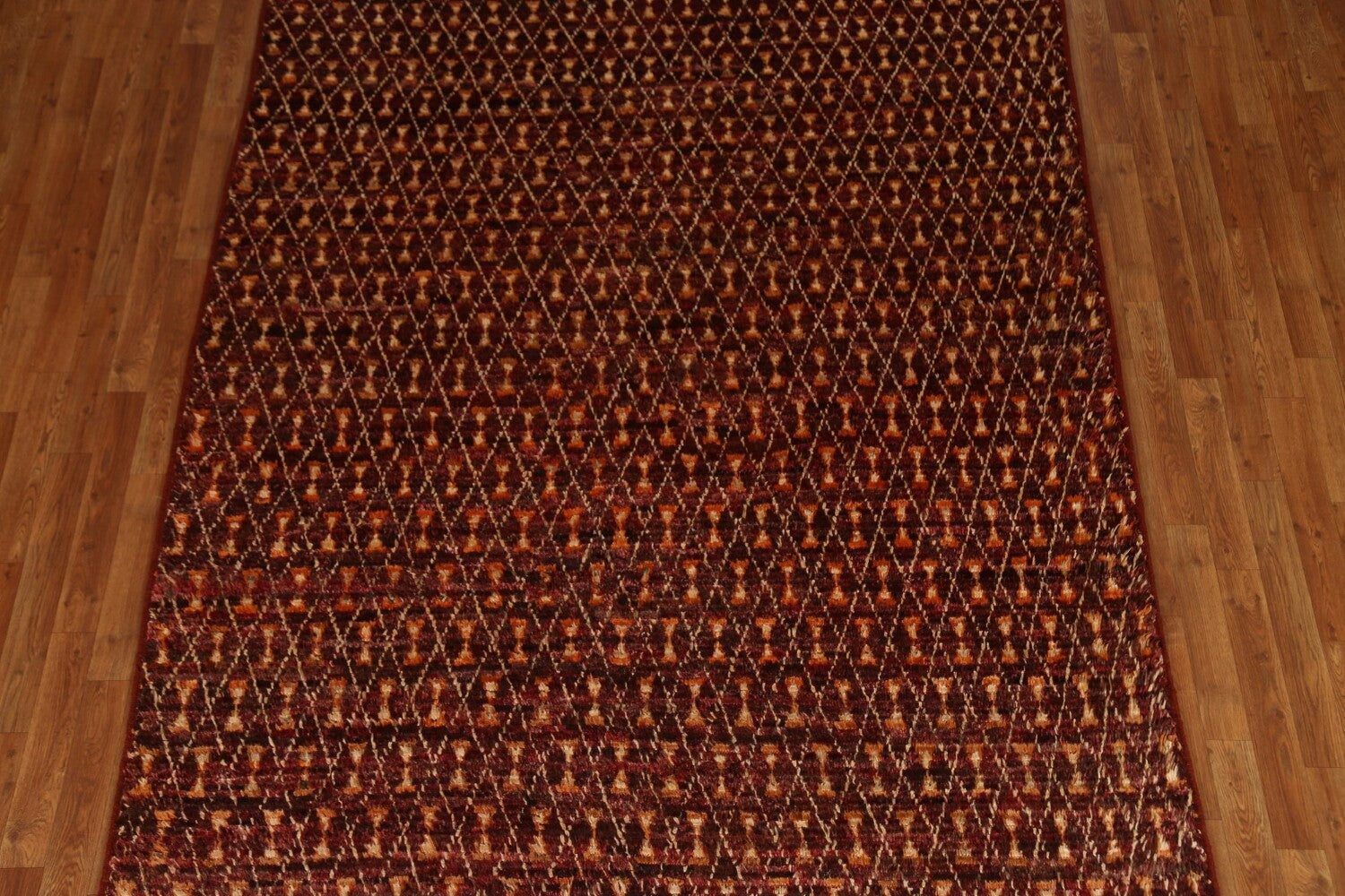 A Beautiful Genuine Pakistan Moroccan rug is Hand Knotted by skillful weavers in Pakistan with 100% Wool Material. This rug is in condition. dimensions are 9' 8'' X 6' 6'' in foot and 295 X 198 in centimeter. the primary color is Red.