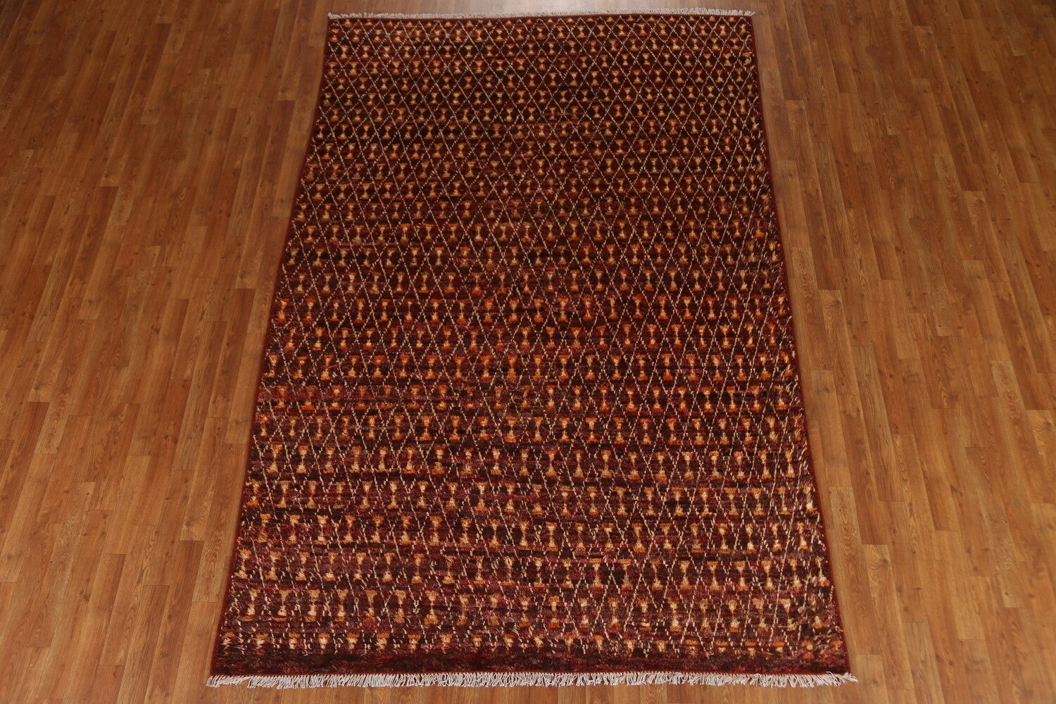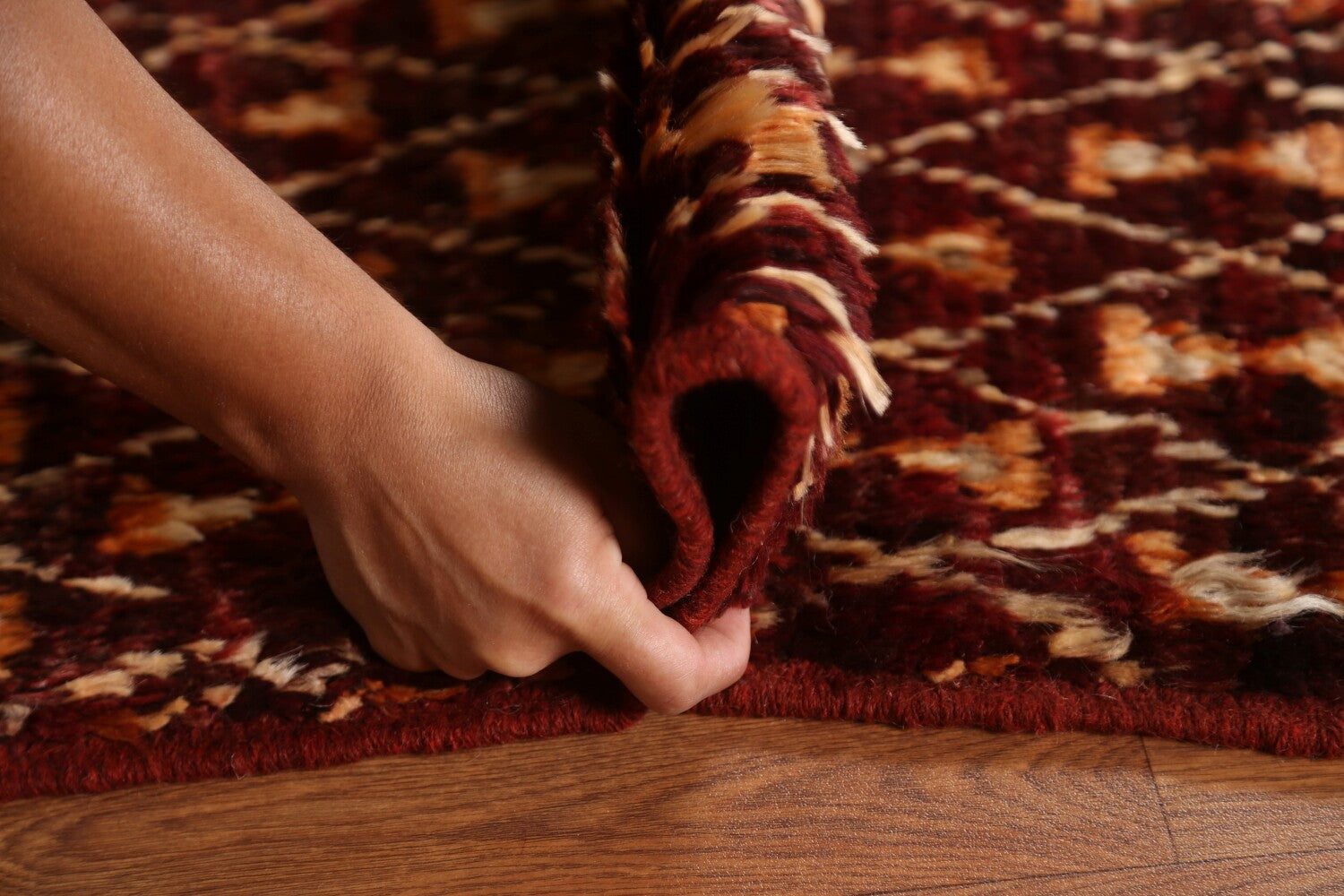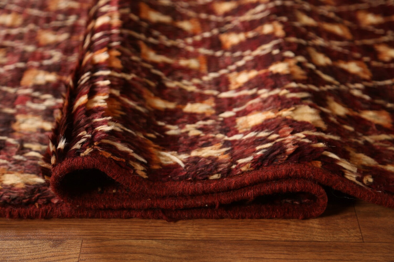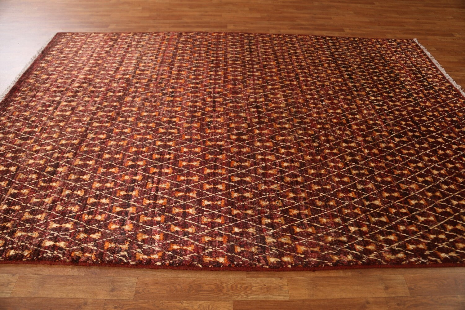 A Beautiful Genuine Pakistan Moroccan rug is Hand Knotted by skillful weavers in Pakistan with 100% Wool Material. This rug is in condition. dimensions are 9' 8'' X 6' 6'' in foot and 295 X 198 in centimeter. the primary color is Red.