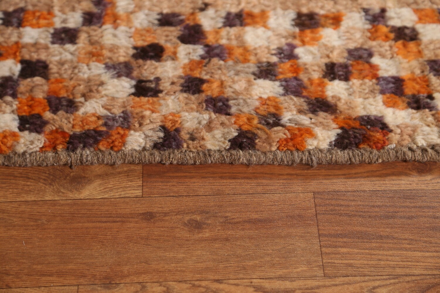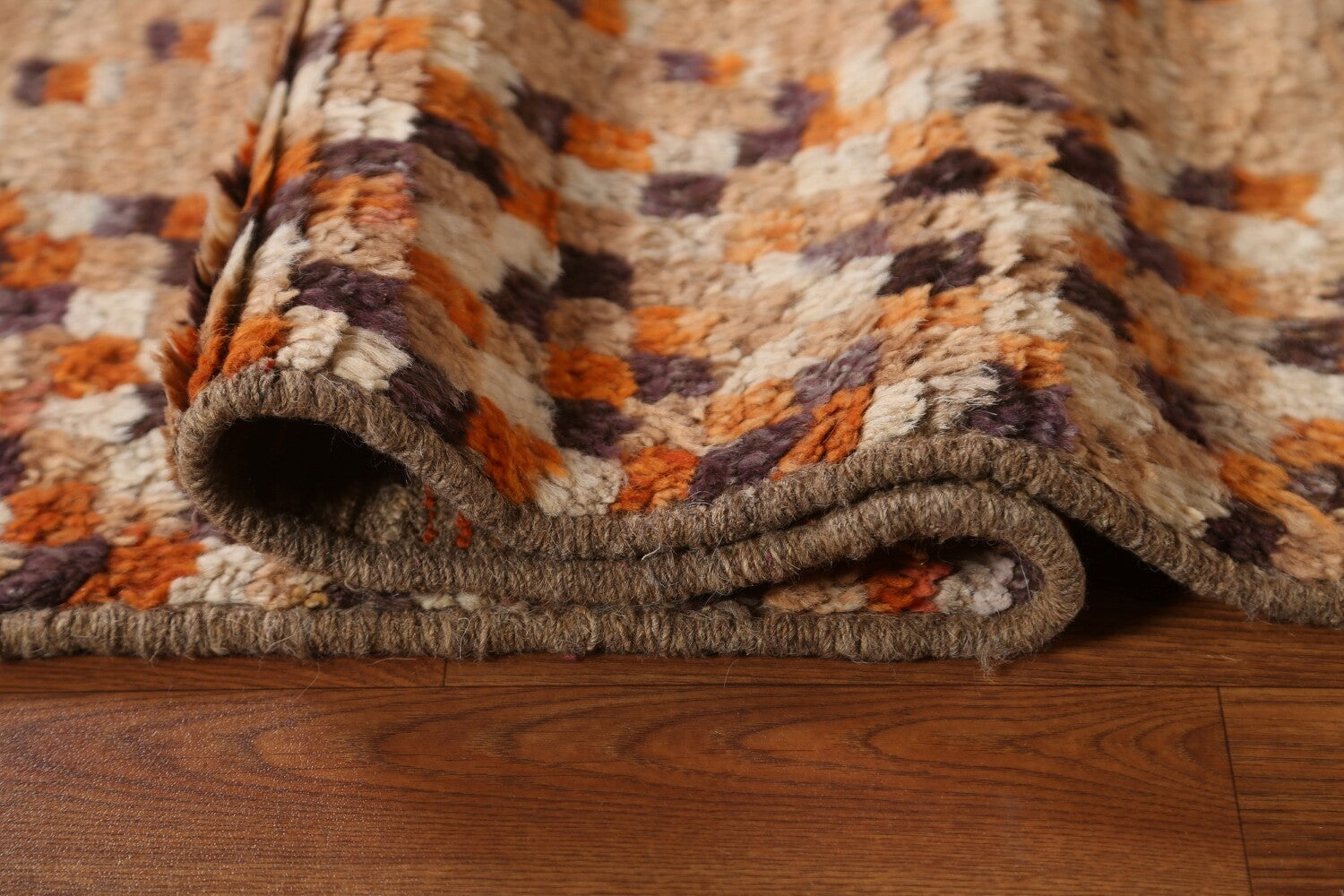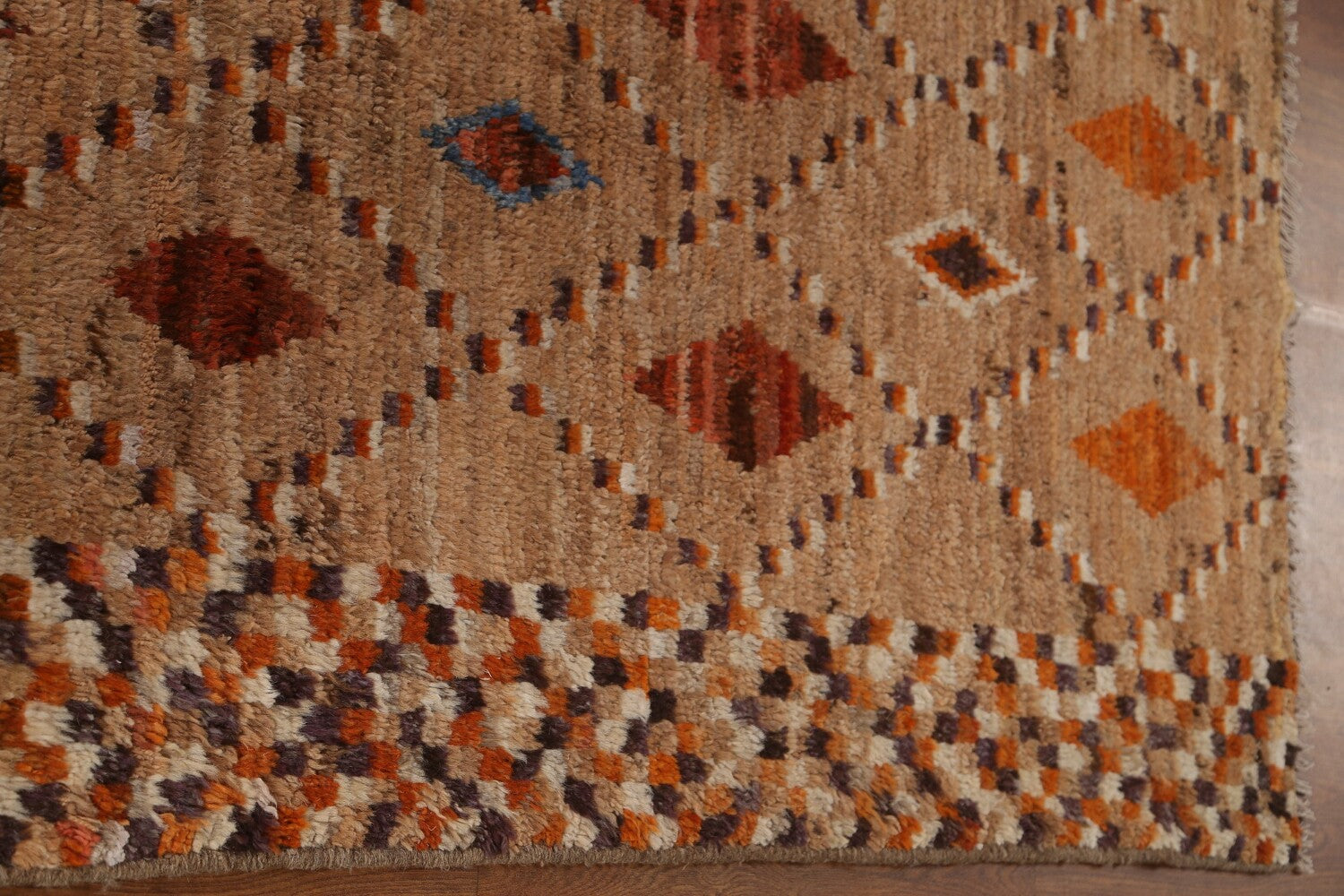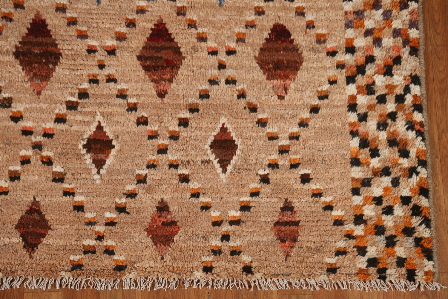 A Beautiful Genuine Pakistan Moroccan rug is Hand Knotted by skillful weavers in Pakistan with 100% Wool Material. This rug is in condition. dimensions are 9' 5'' X 7' 0'' in foot and 287 X 213 in centimeter. the primary color is Brown.