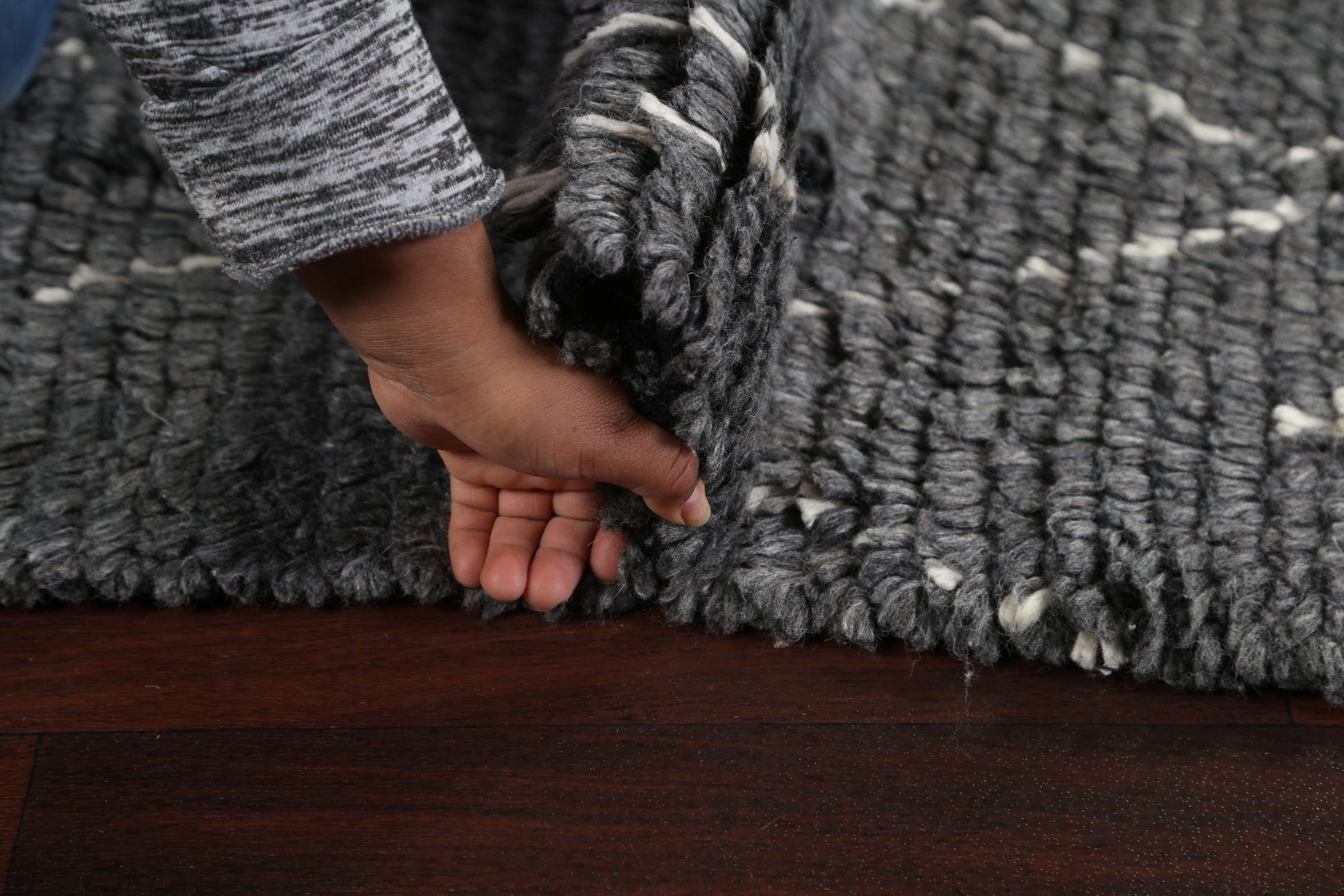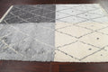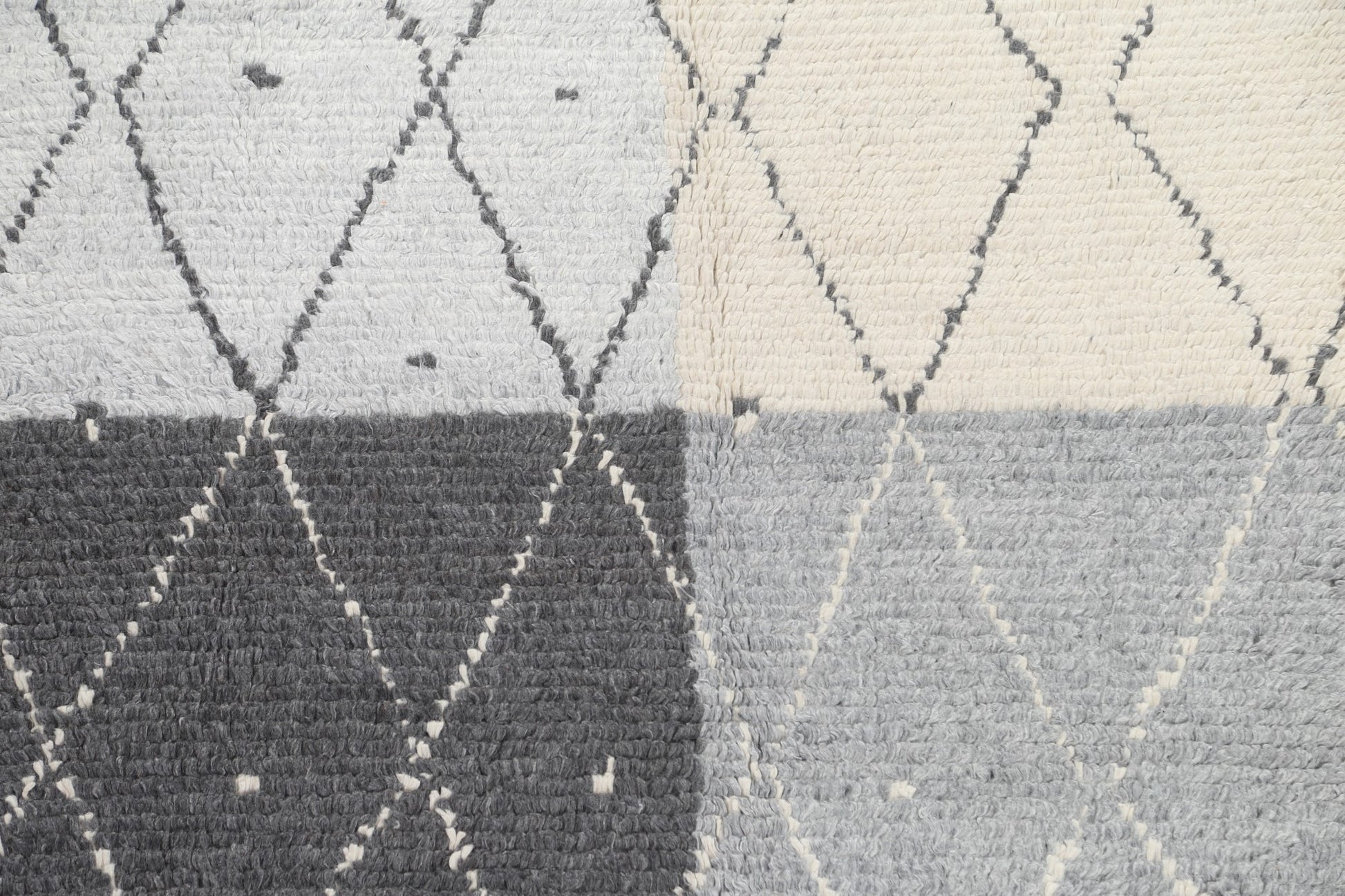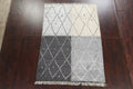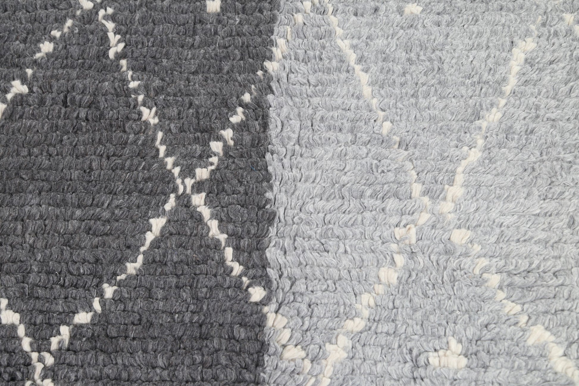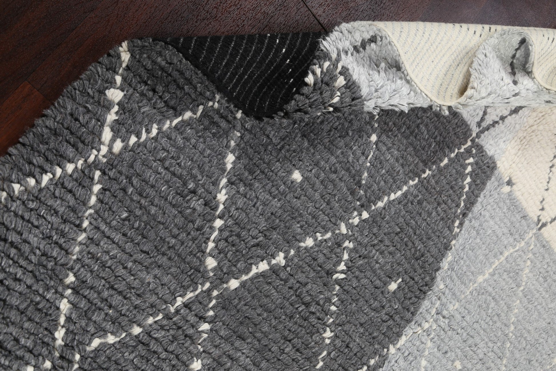 A Beautiful Genuine India Moroccan rug is Hand Knotted by skillful weavers in India with 100% Wool Material. This rug is in New, First Quality condition. dimensions are 8' 7'' X 5' 11'' in foot and 262 X 180 in centimeter. the primary color is Greys & Charcoal.