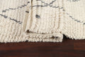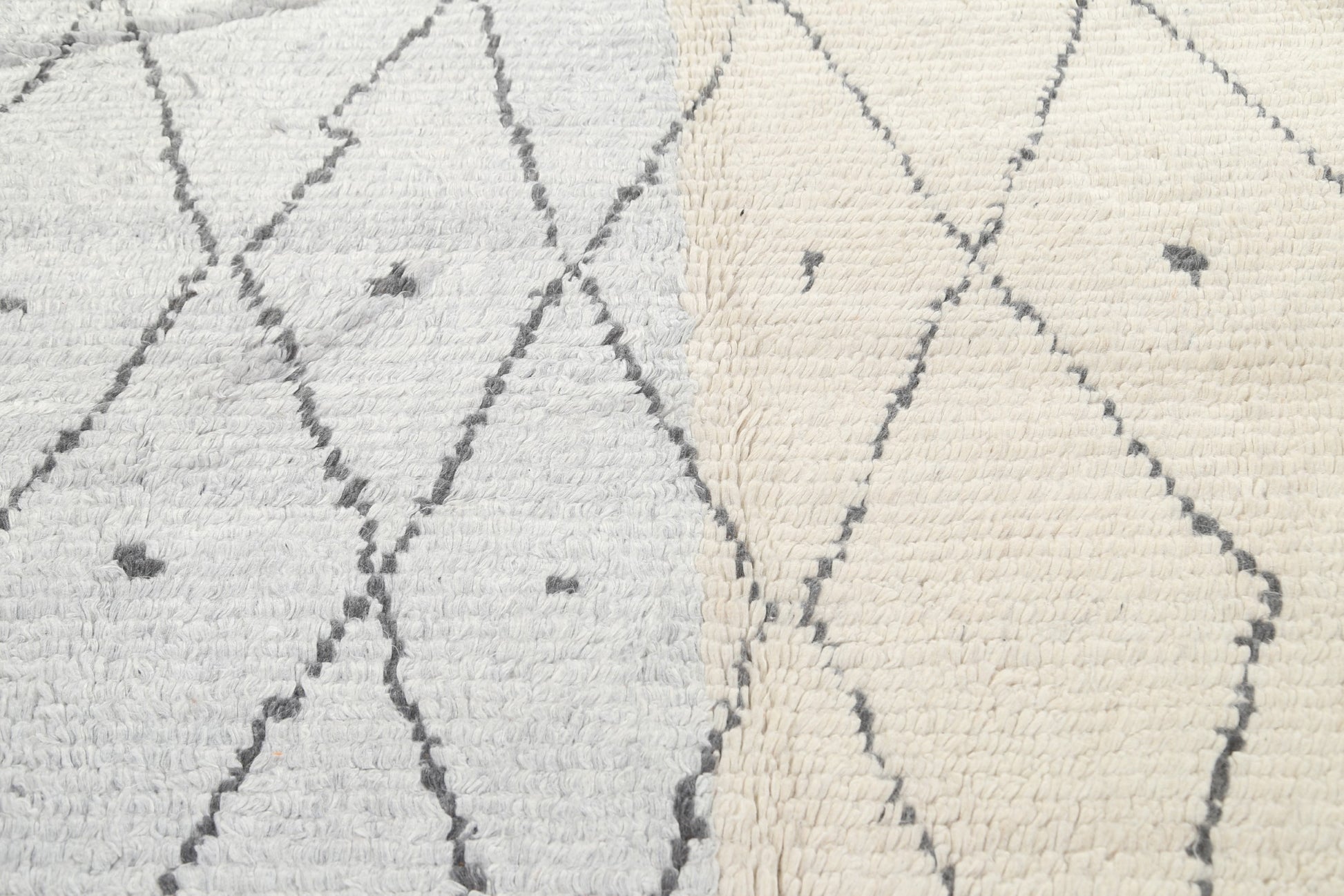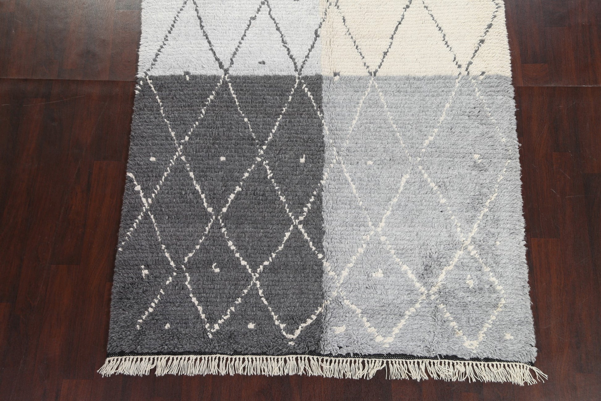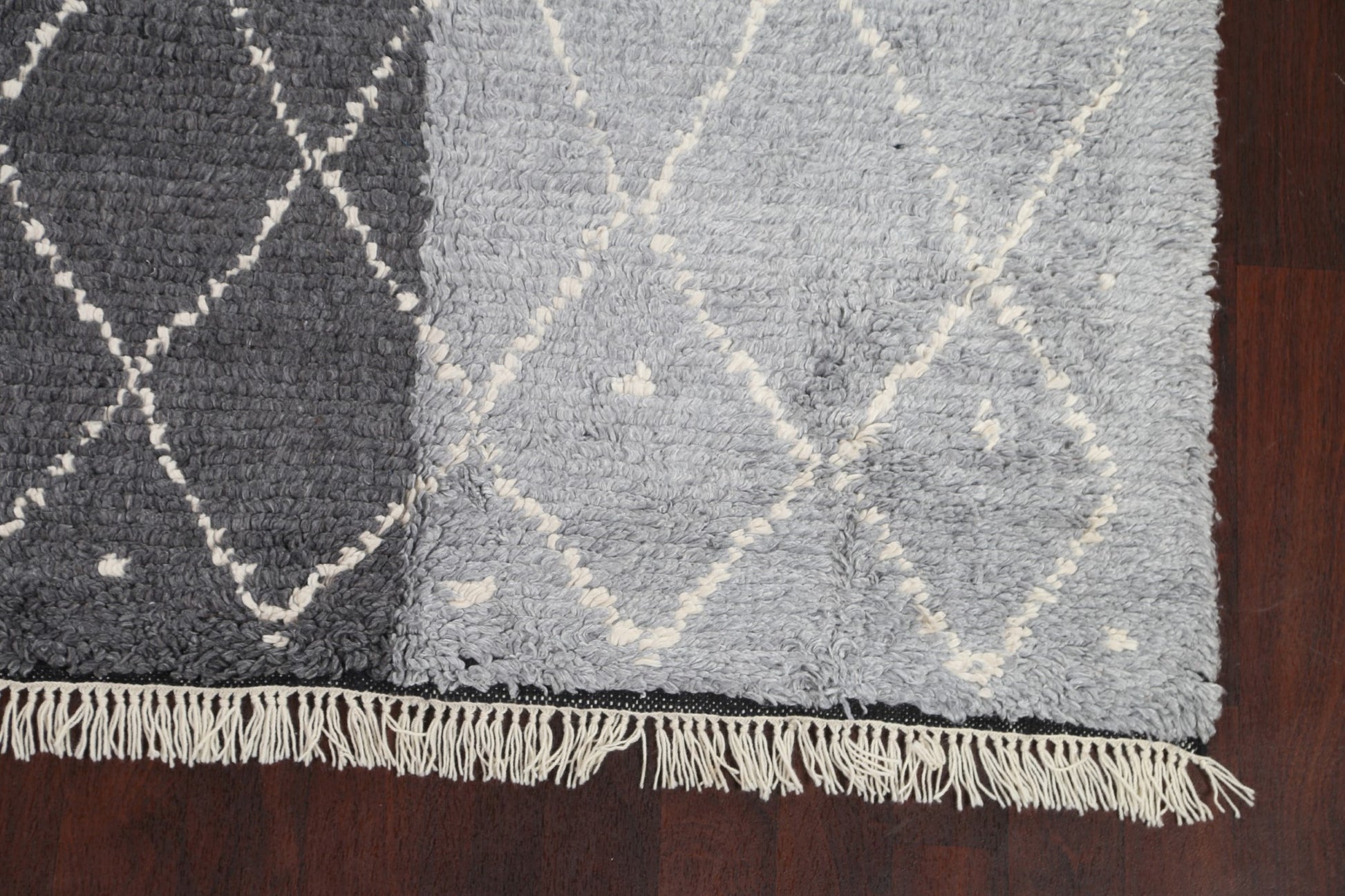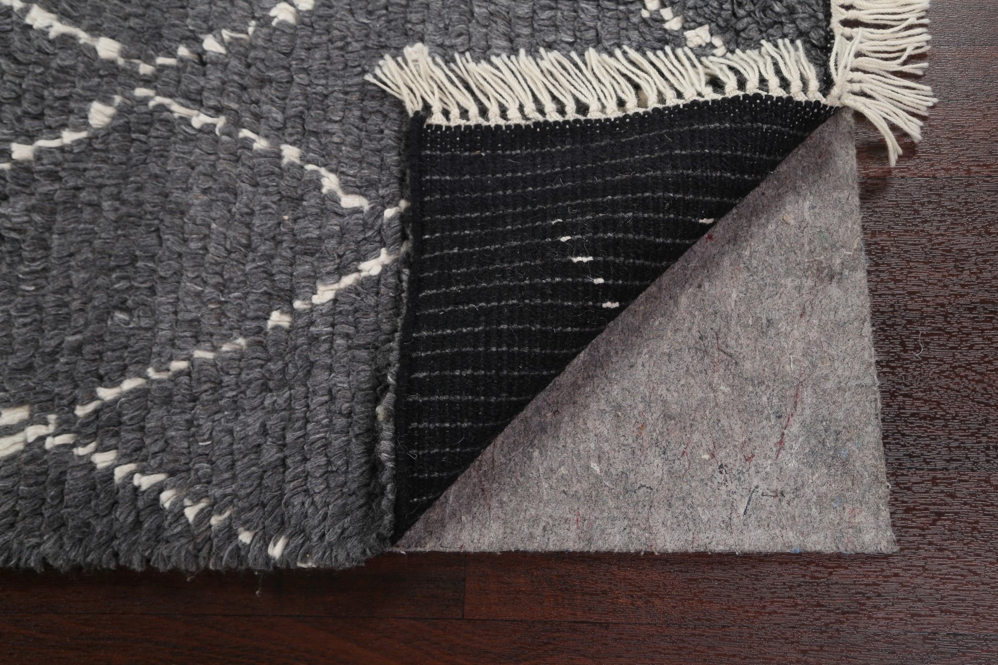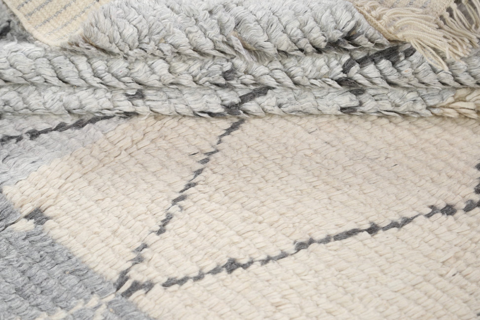 A Beautiful Genuine India Moroccan rug is Hand Knotted by skillful weavers in India with 100% Wool Material. This rug is in New, First Quality condition. dimensions are 8' 7'' X 5' 11'' in foot and 262 X 180 in centimeter. the primary color is Greys & Charcoal.