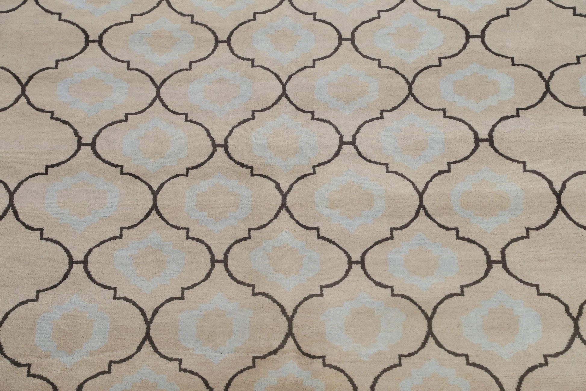 A Beautiful Genuine India Moroccan rug is Hand Knotted by skillful weavers in India with 100% Wool Material. This rug is in New, First Quality condition. dimensions are 10' 4'' X 8' 0'' in foot and 315 X 244 in centimeter. the primary color is Beige & Ivories.