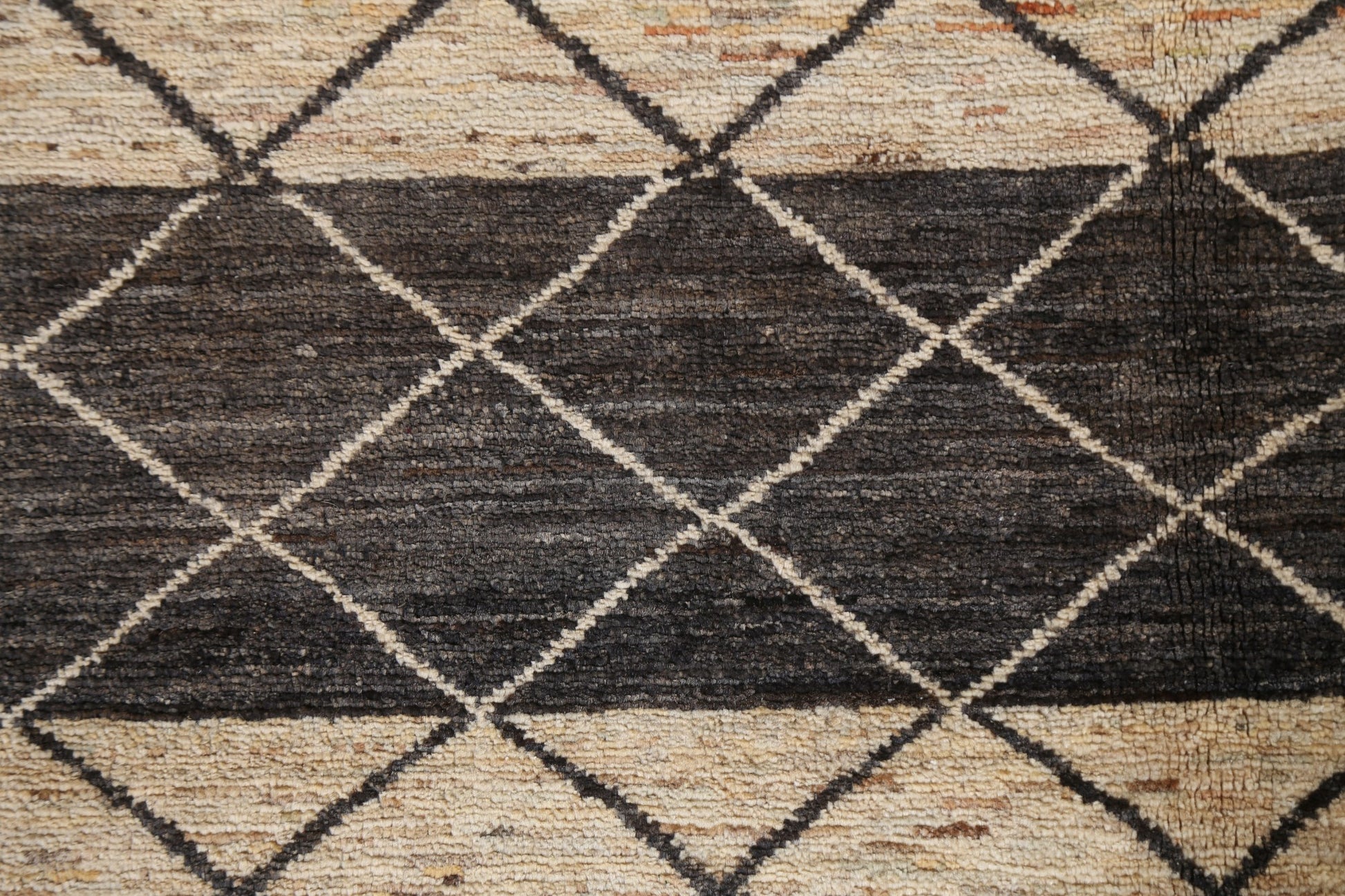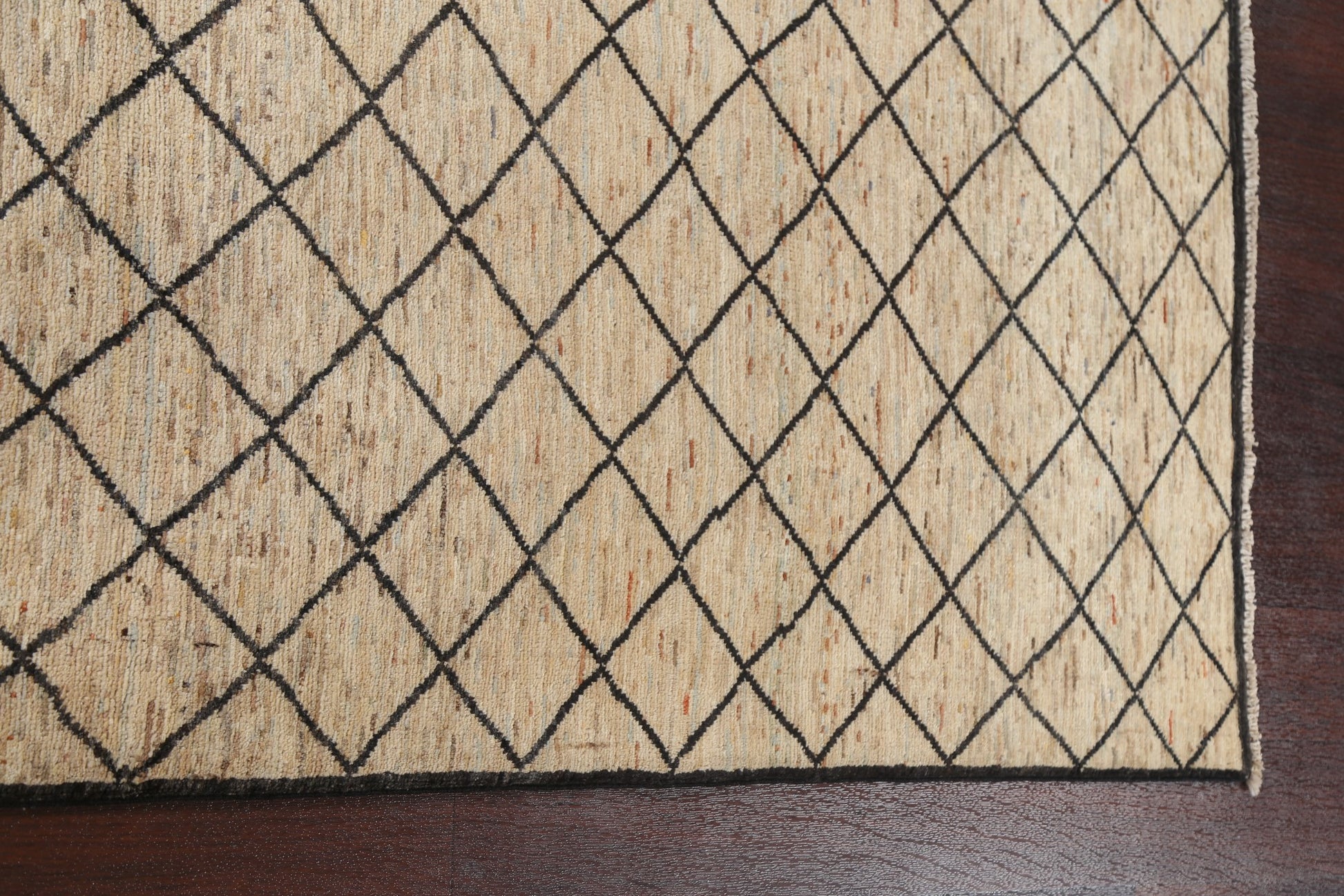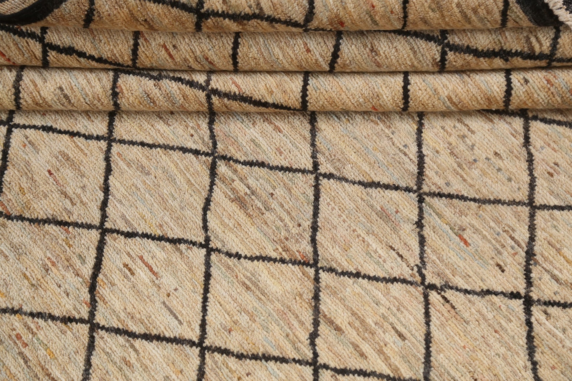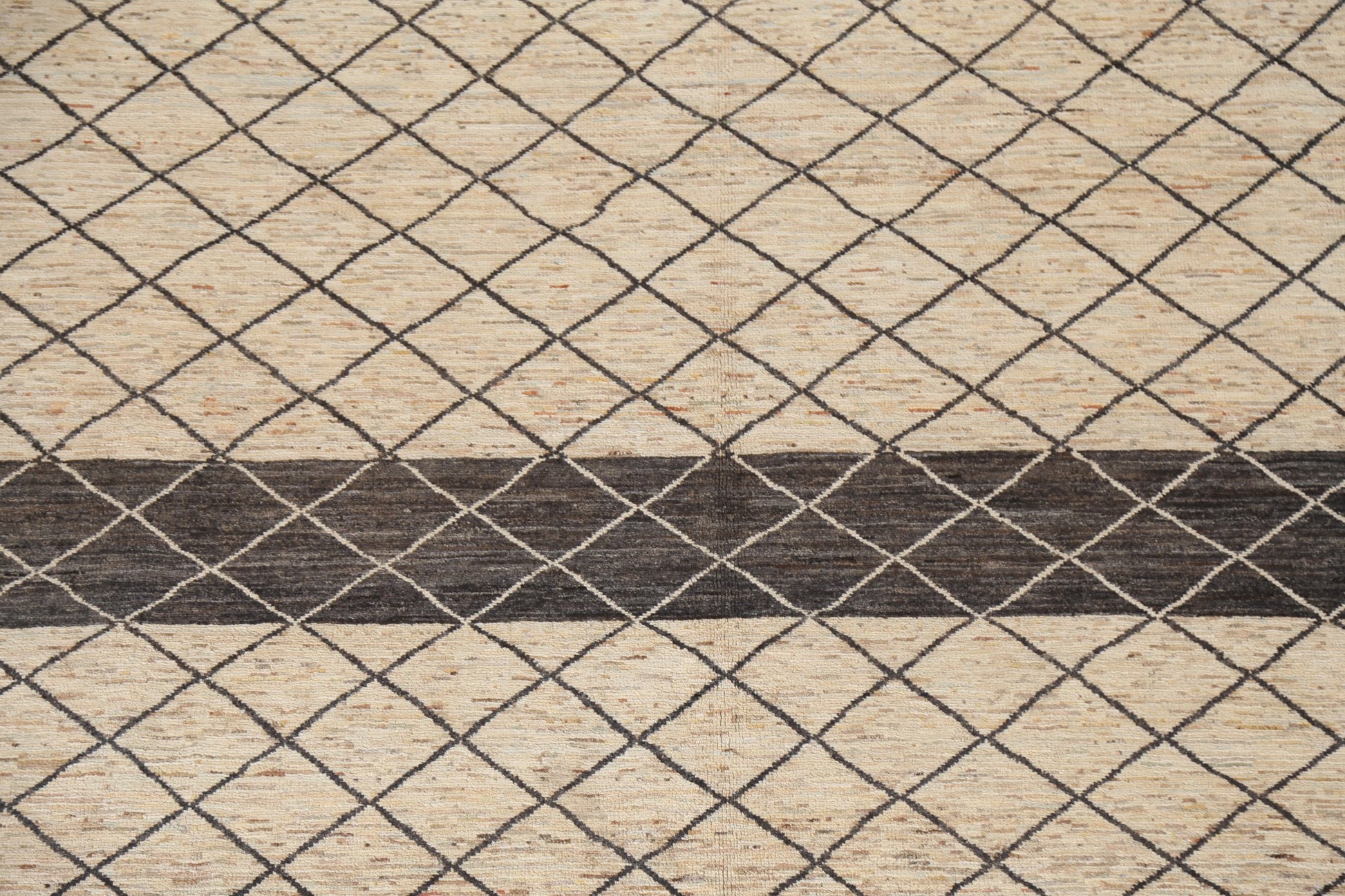 A Beautiful Genuine Pakistan Moroccan rug is Hand Knotted by skillful weavers in Pakistan with 100% Wool Material. This rug is in New, First Quality condition. dimensions are 10' 5'' X 7' 11'' in foot and 318 X 241 in centimeter. the primary color is Beige & Ivories.