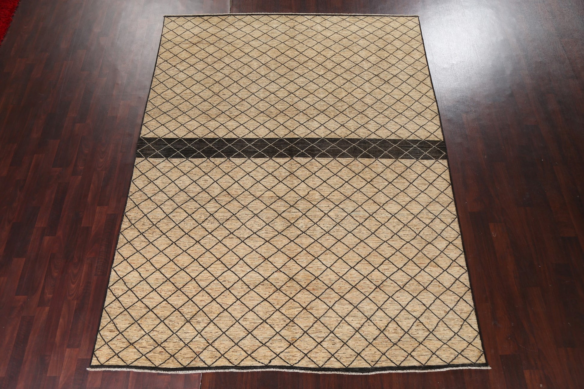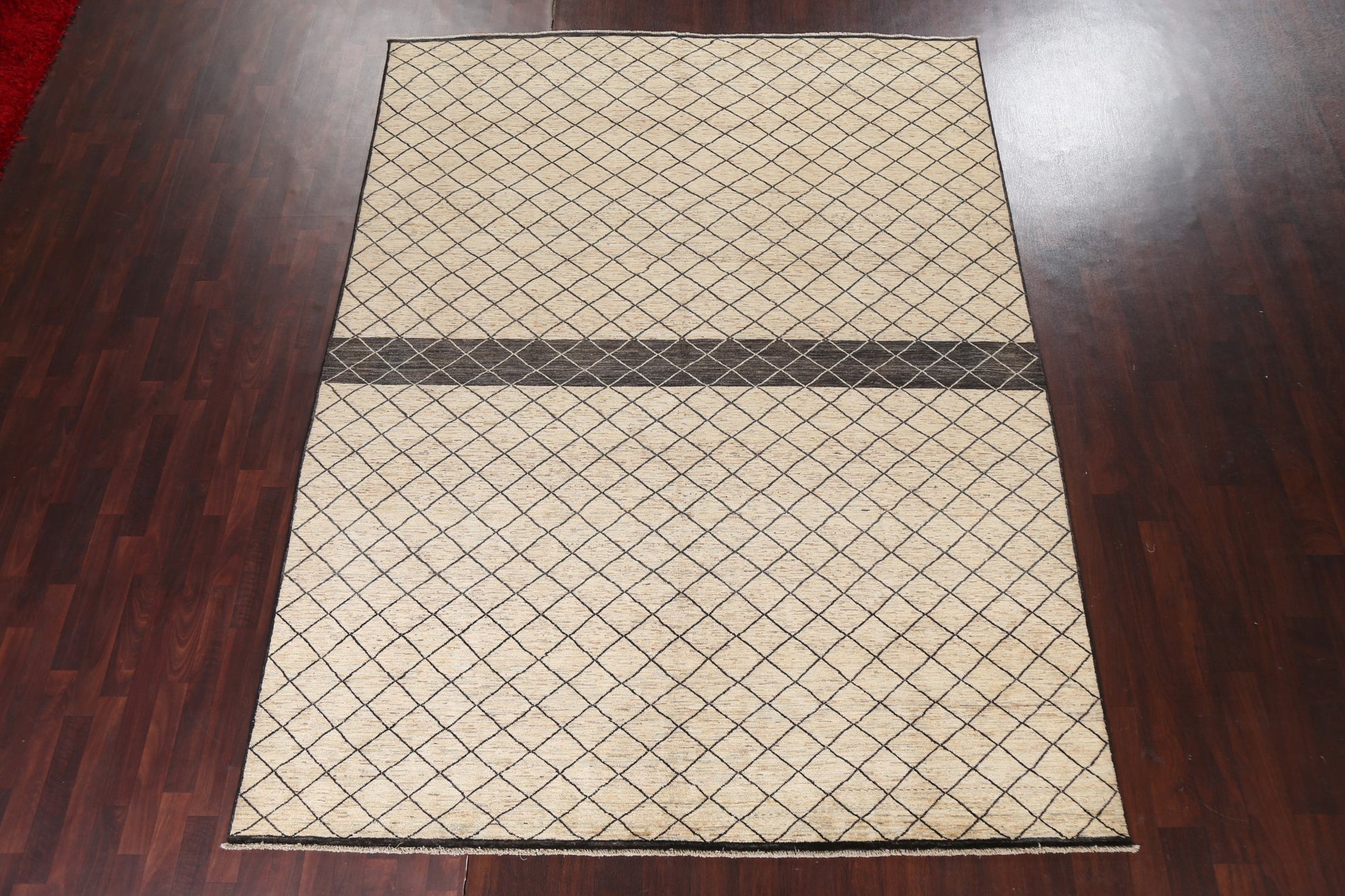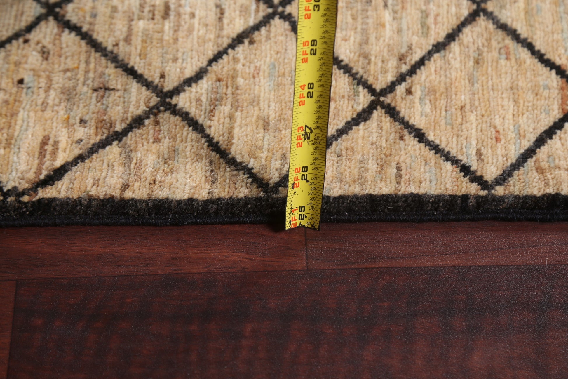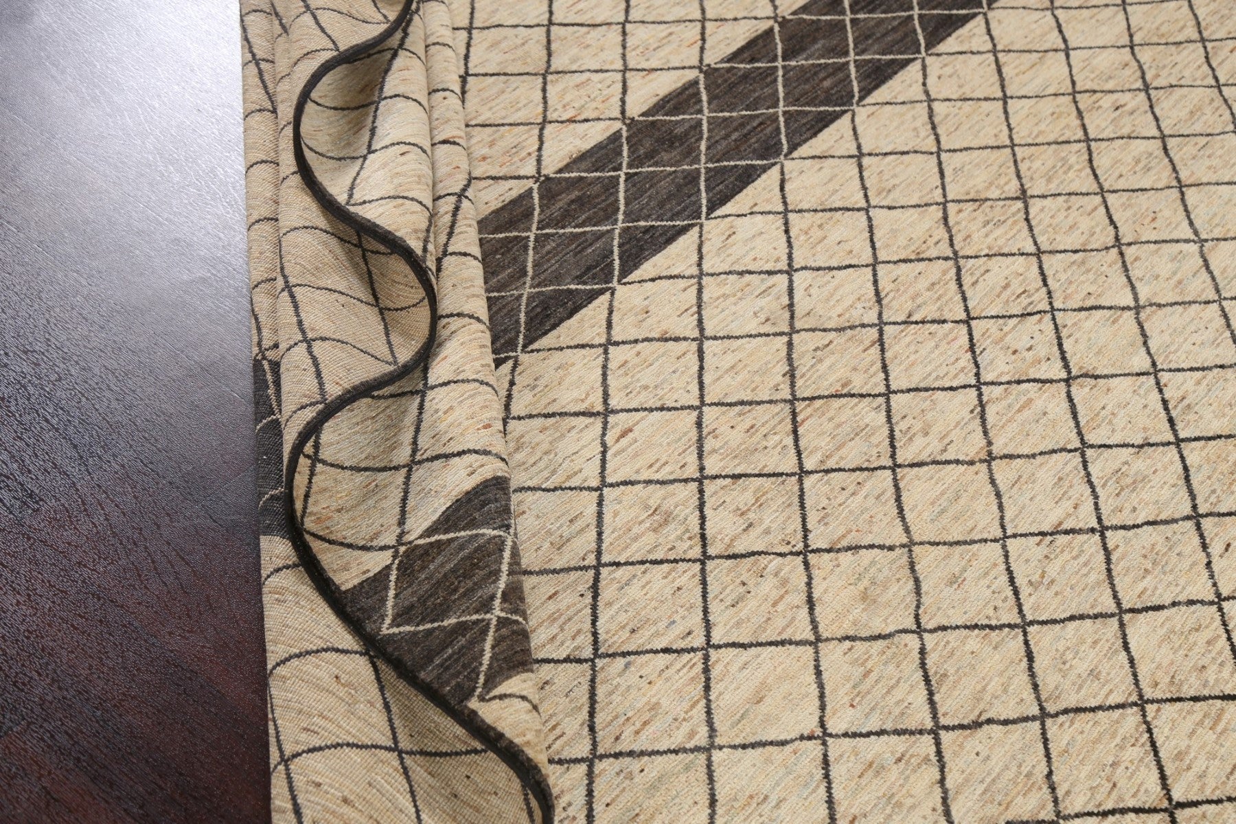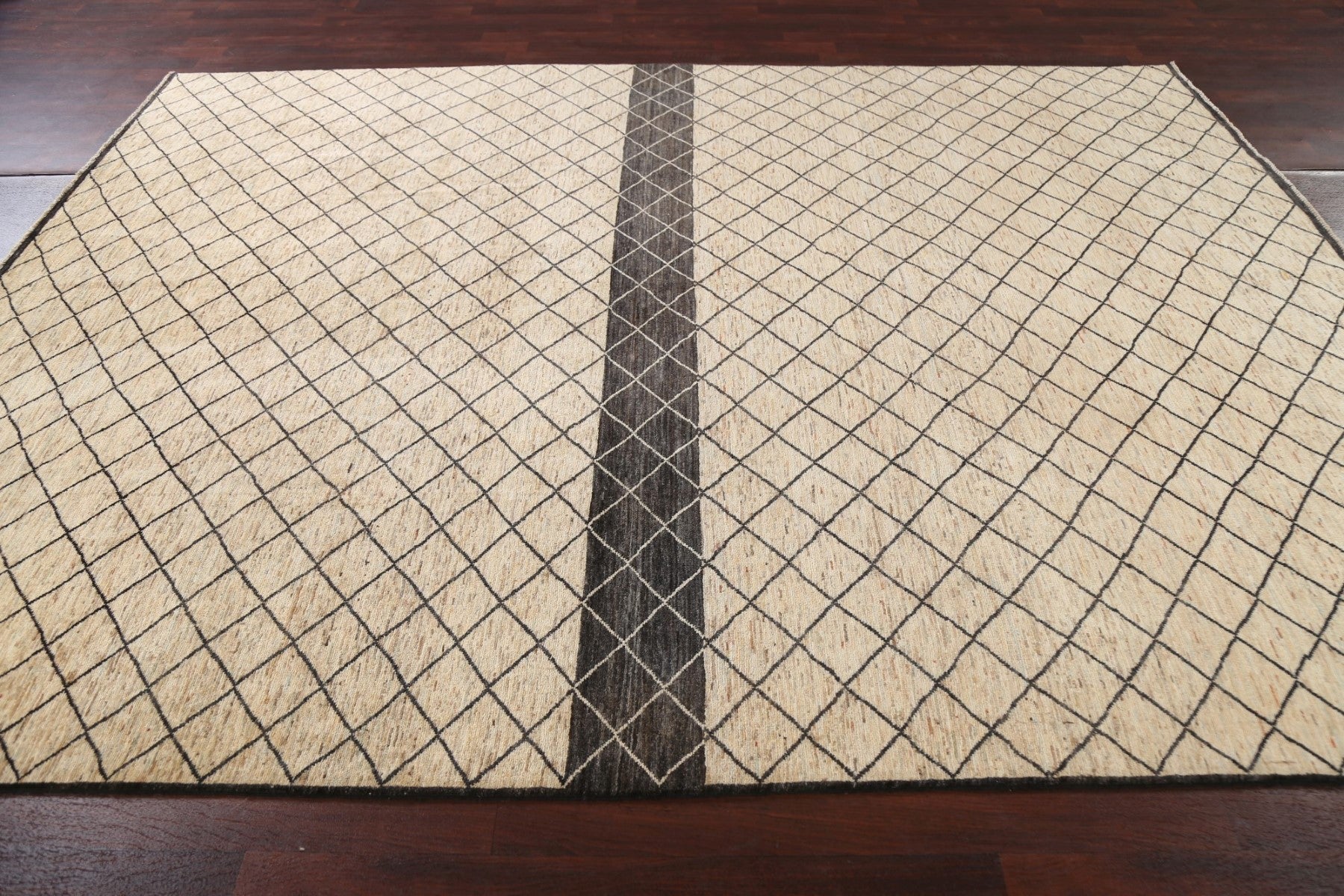 A Beautiful Genuine Pakistan Moroccan rug is Hand Knotted by skillful weavers in Pakistan with 100% Wool Material. This rug is in New, First Quality condition. dimensions are 10' 5'' X 7' 11'' in foot and 318 X 241 in centimeter. the primary color is Beige & Ivories.