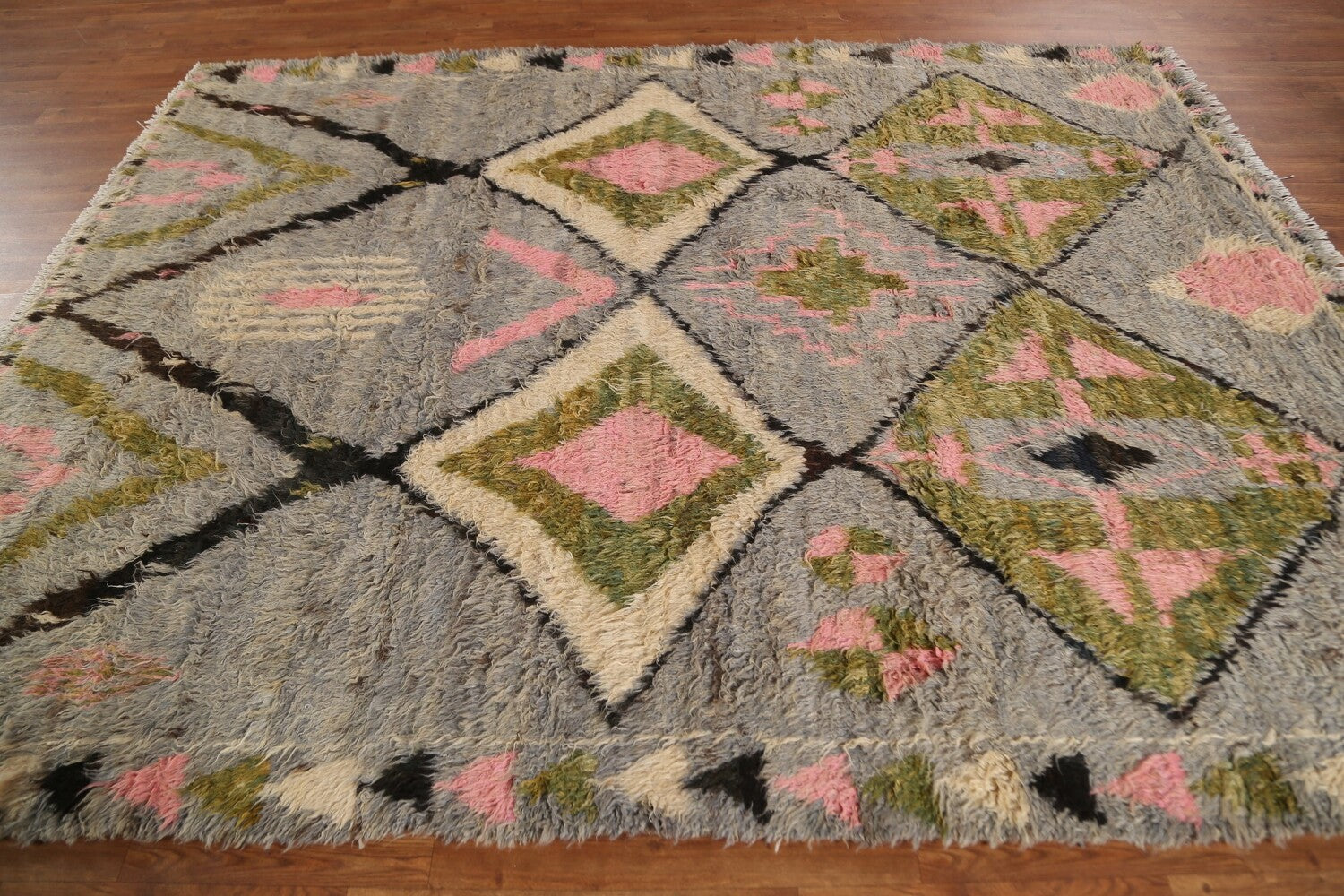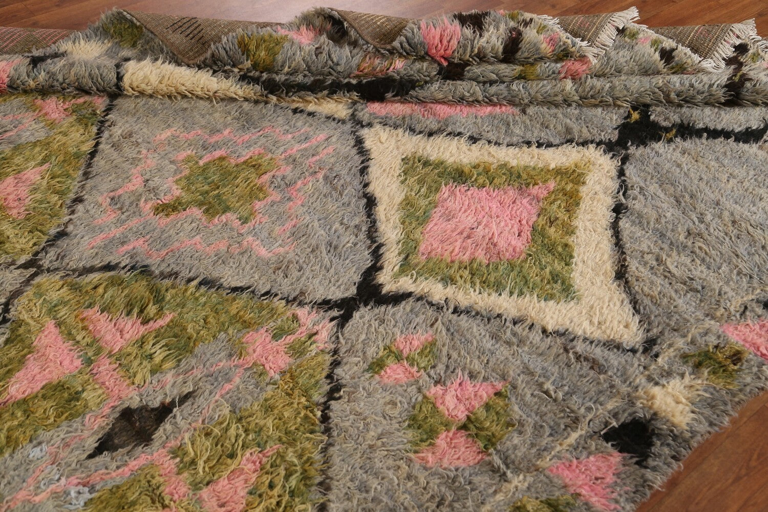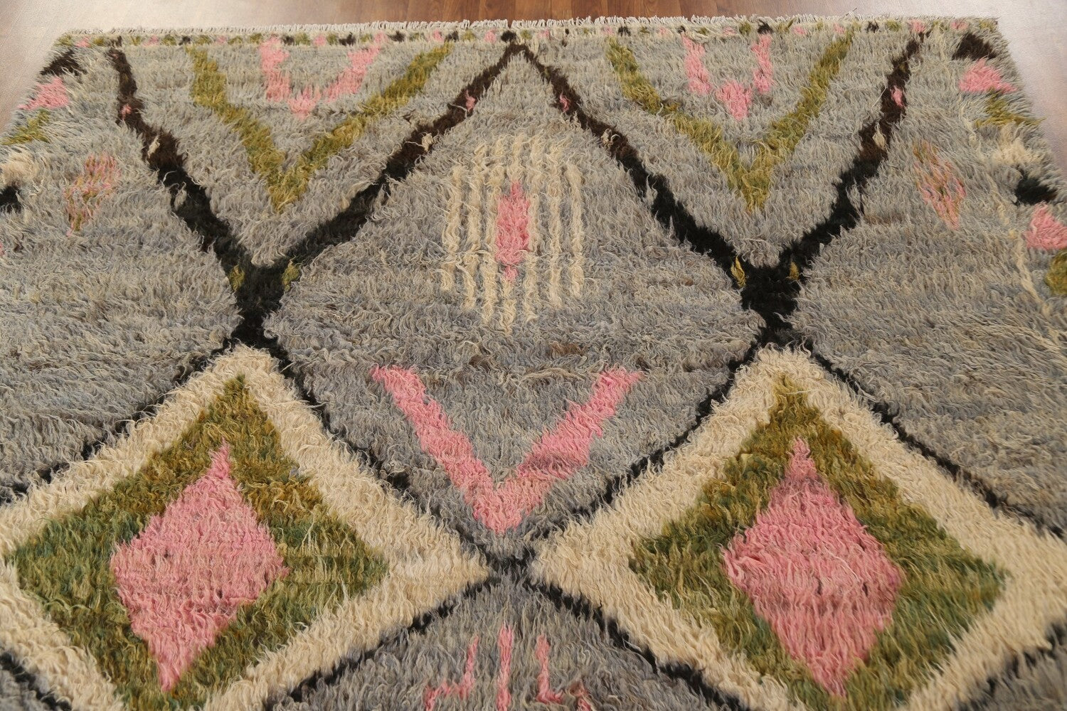 A Beautiful Genuine Pakistan Moroccan rug is Hand Knotted by skillful weavers in Pakistan with 100% Wool Material. This rug is in condition. dimensions are 8' 10'' X 6' 10'' in foot and 269 X 208 in centimeter. the primary color is Greys & Charcoal.