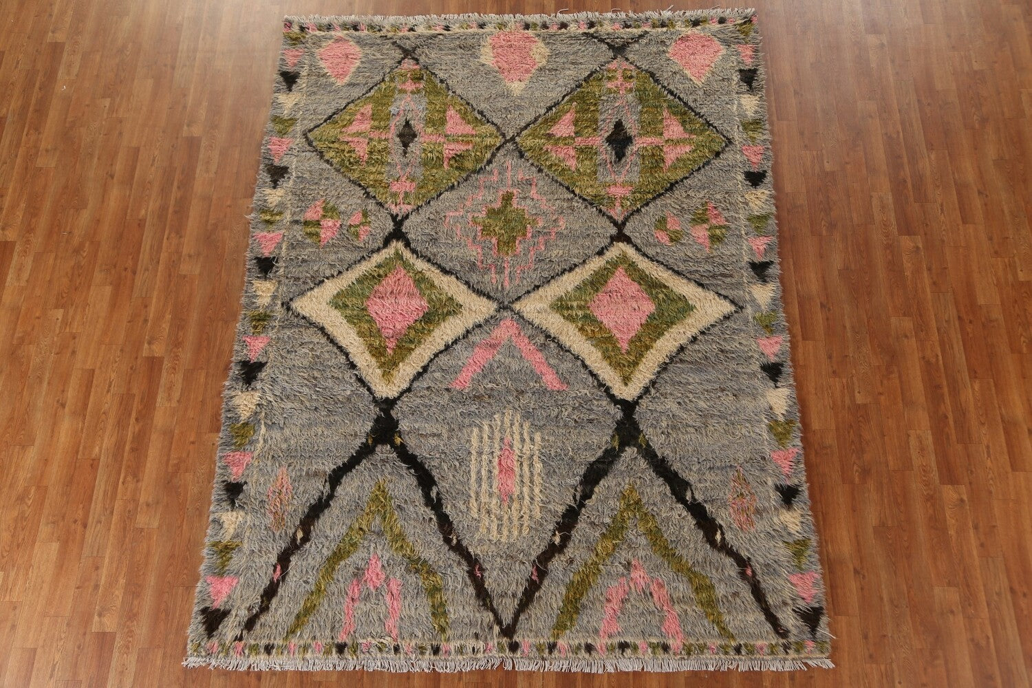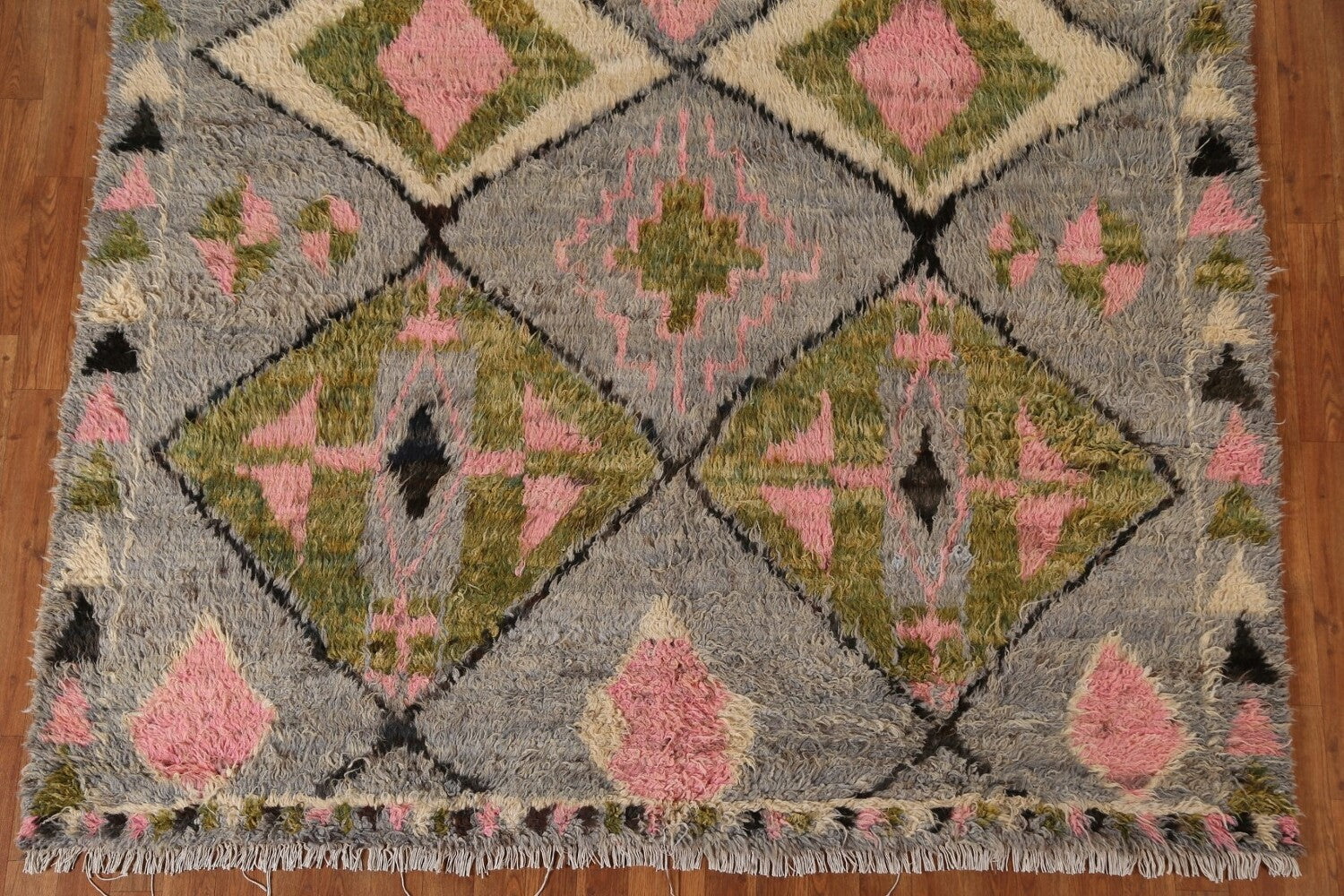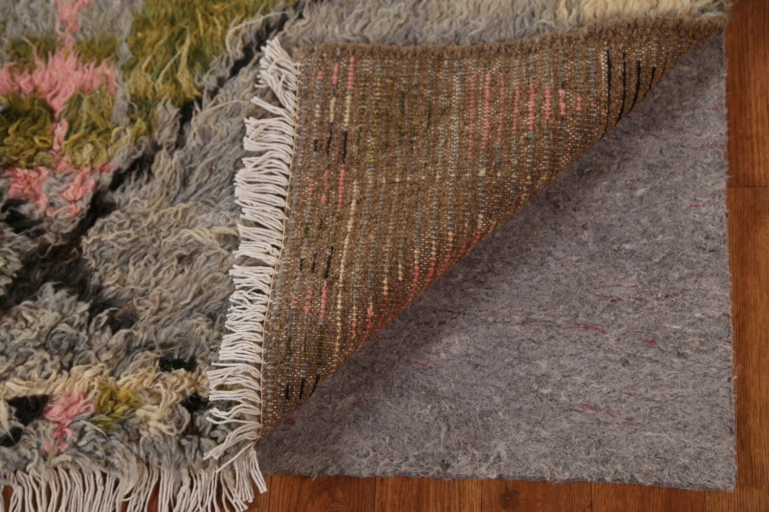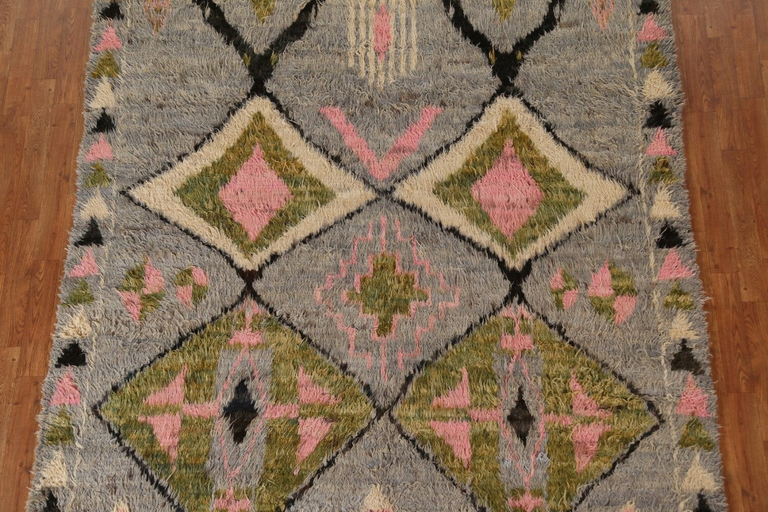 A Beautiful Genuine Pakistan Moroccan rug is Hand Knotted by skillful weavers in Pakistan with 100% Wool Material. This rug is in condition. dimensions are 8' 10'' X 6' 10'' in foot and 269 X 208 in centimeter. the primary color is Greys & Charcoal.