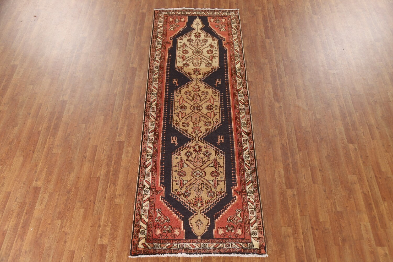Tribal Blue Ardebil Persian Runner Rug 4x10