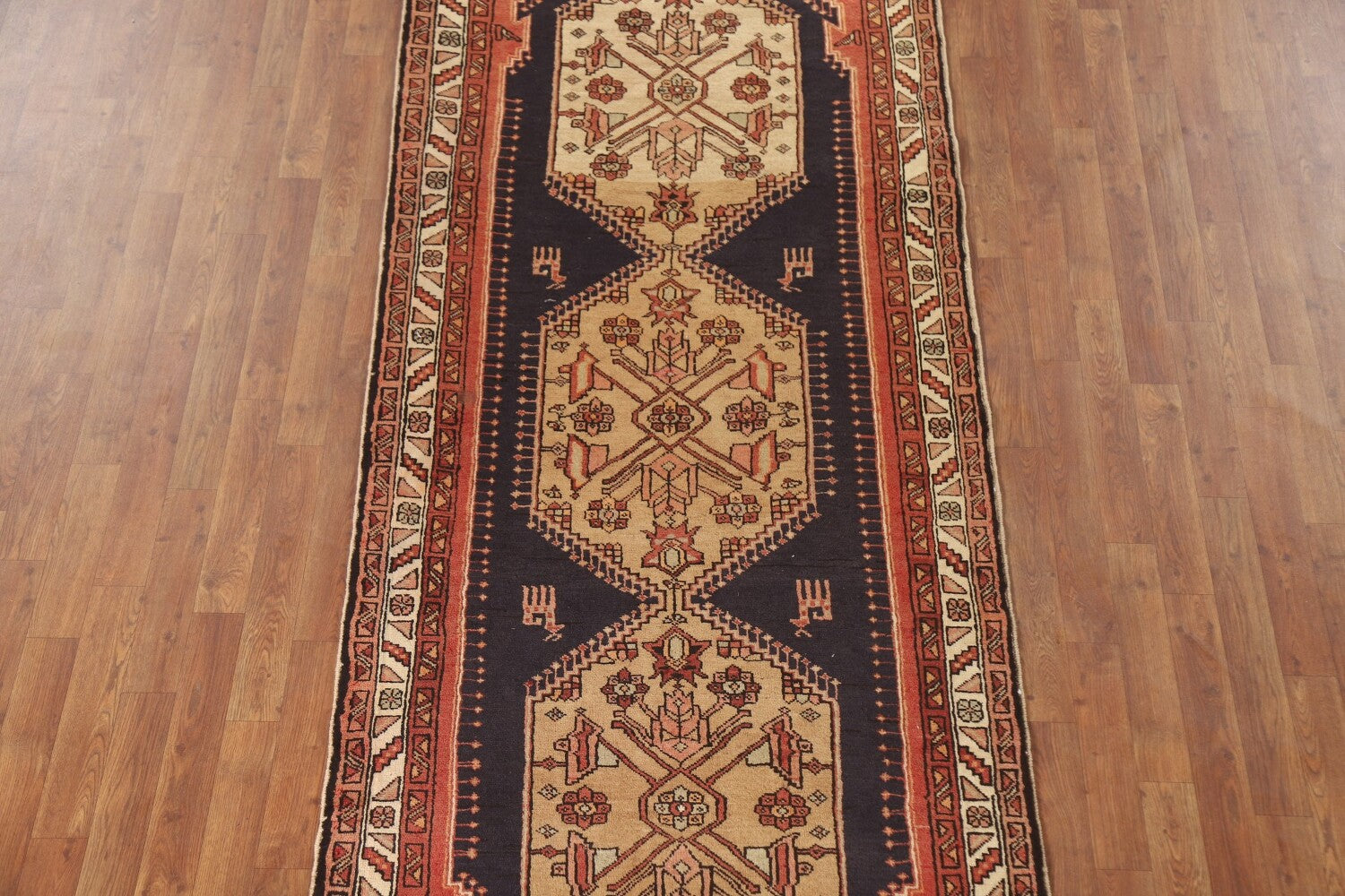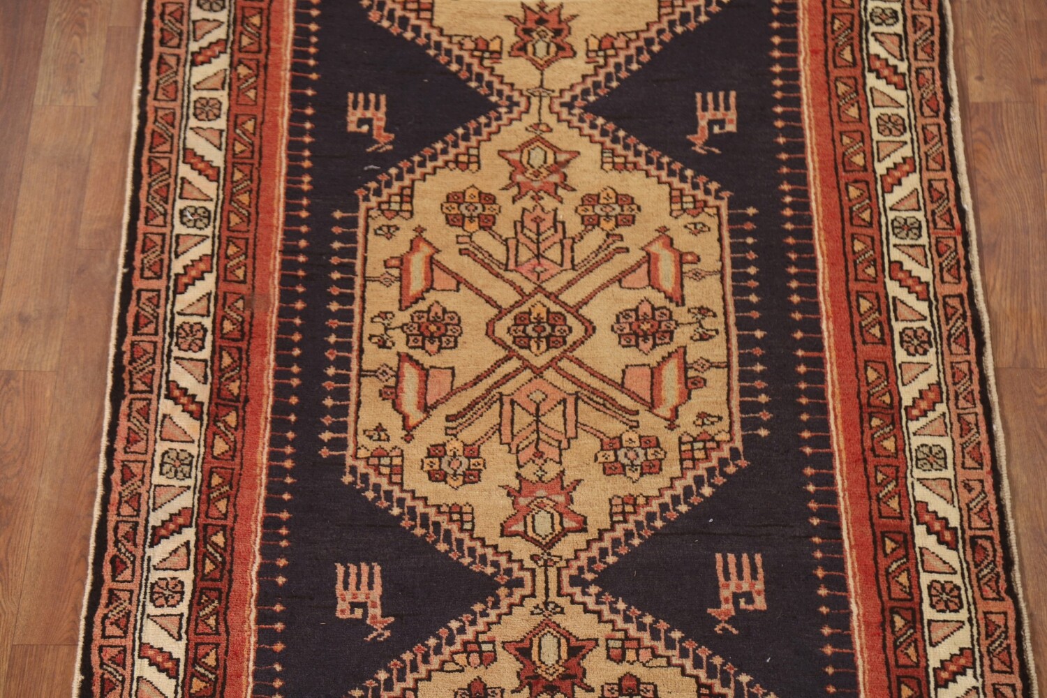 A Beautiful Genuine Persia ( Persia ) Ardebil rug is Hand Knotted by skillful weavers in Persia ( Persia ) with 100% Wool Material. This rug is in Very Good (Abrash) condition. dimensions are 10' 3'' X 3' 7'' in foot and 312 X 109 in centimeter. the primary color is Navy Blue & Blues.
