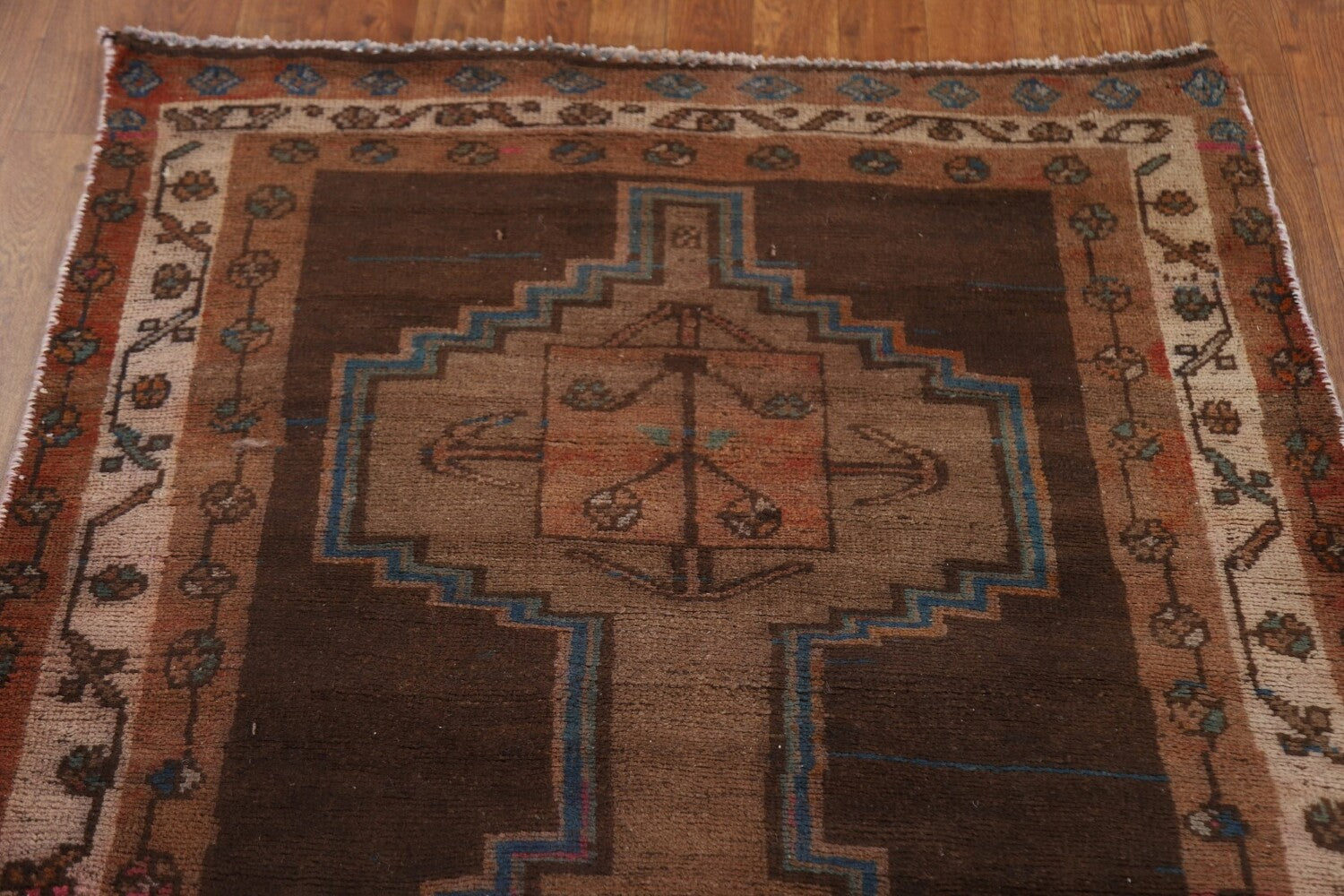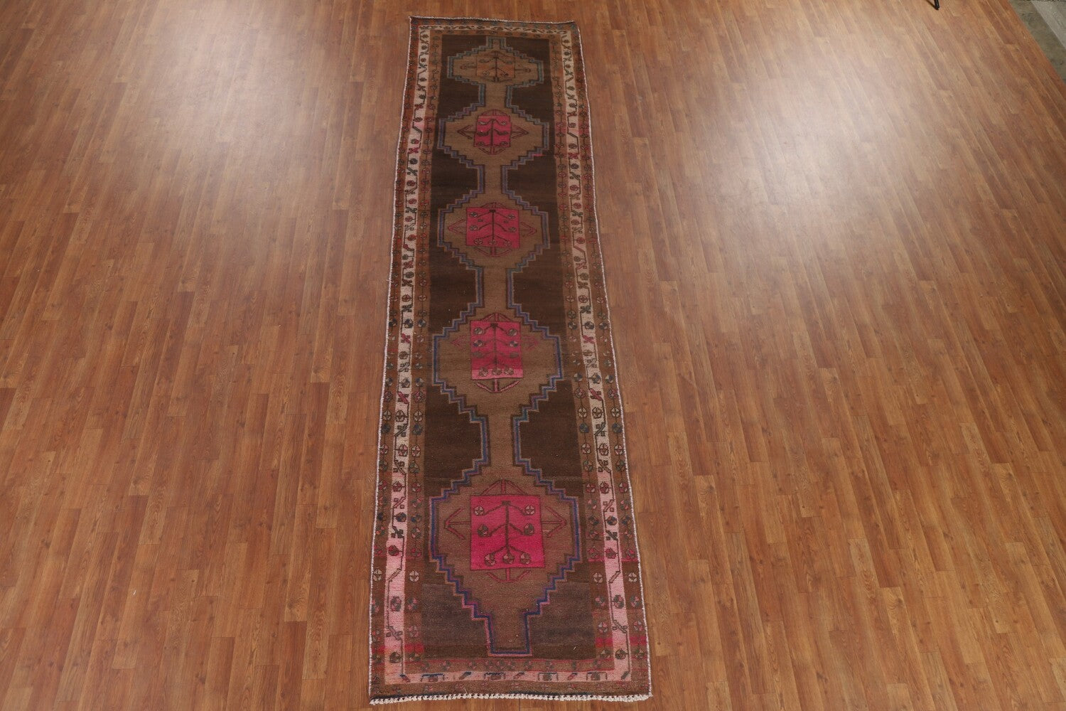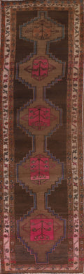 Tribal Brown Ardebil Persian Runner Rug 3x13