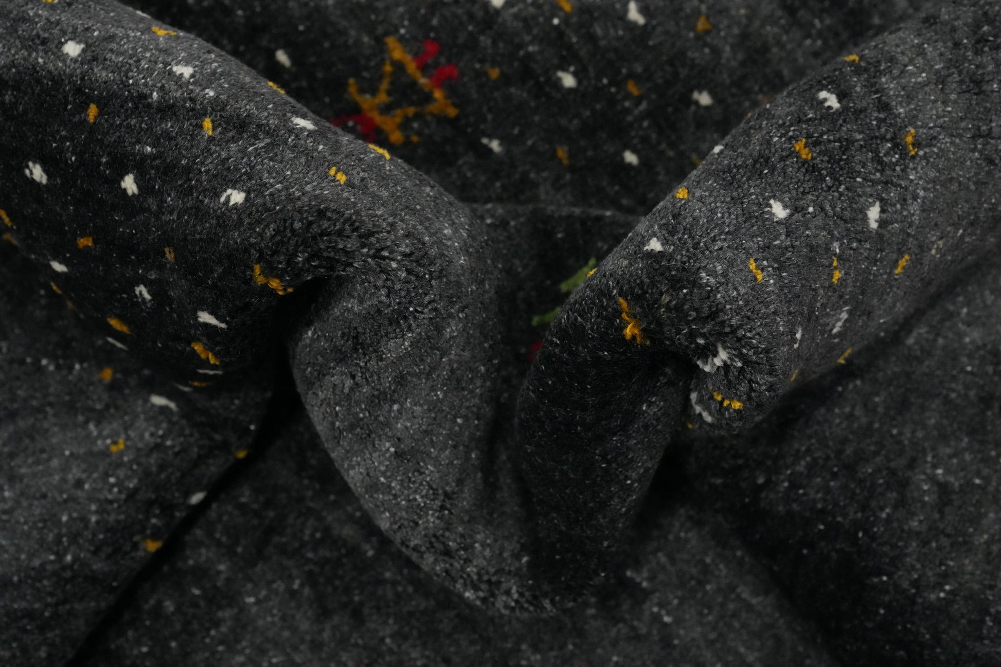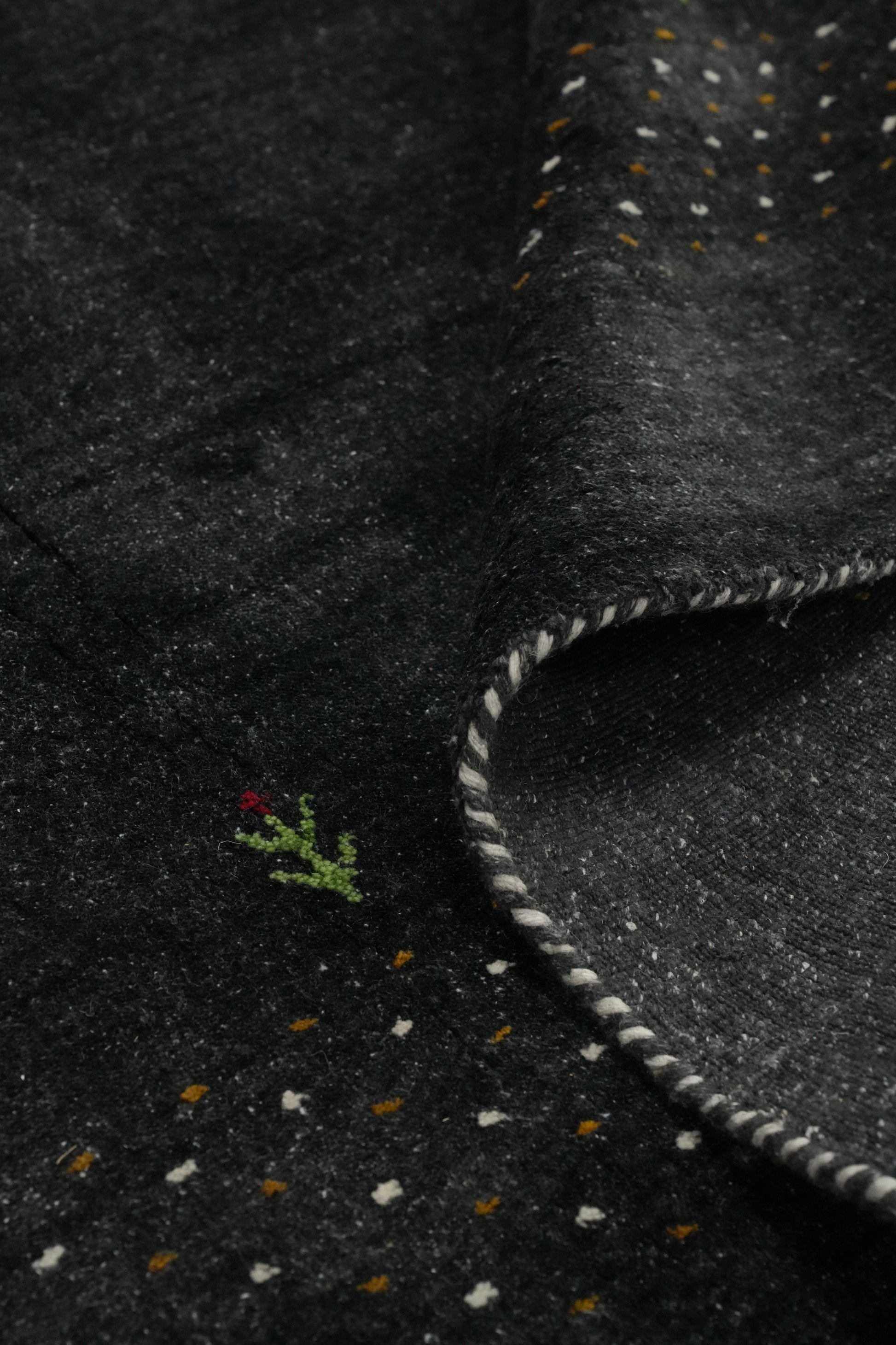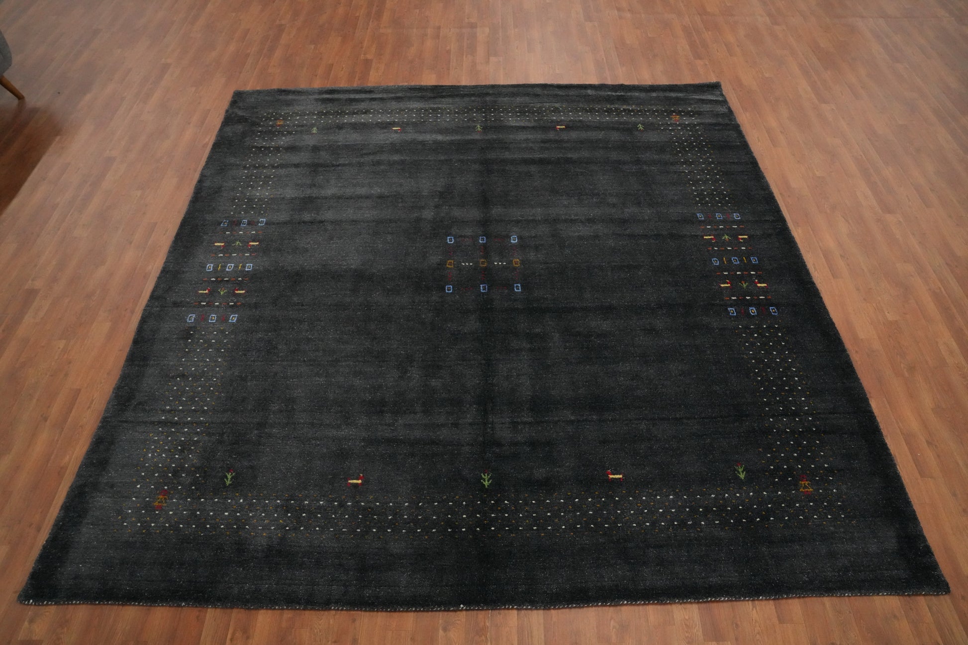 A Beautiful Genuine India Gabbeh rug is Hand Knotted by skillful weavers in India with 100% Wool Material. This rug is in New, First Quality condition. dimensions are 10' 0'' X 9' 10'' in foot and 305 X 300 in centimeter. the primary color is Black.