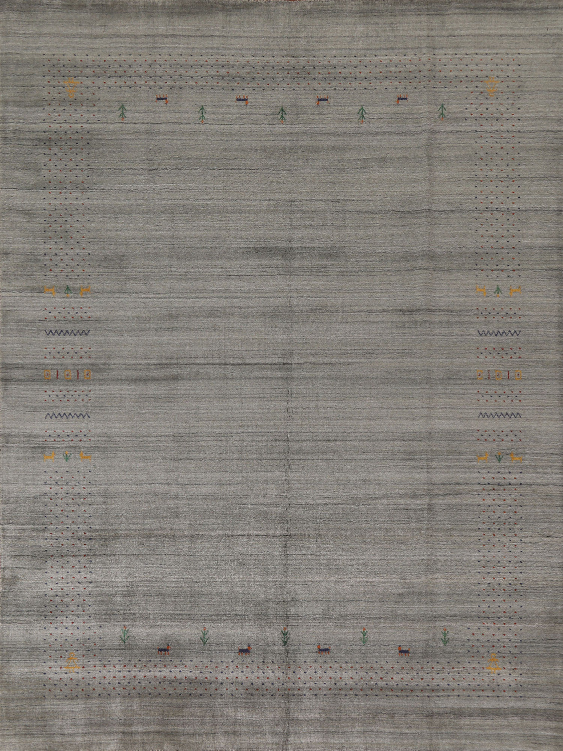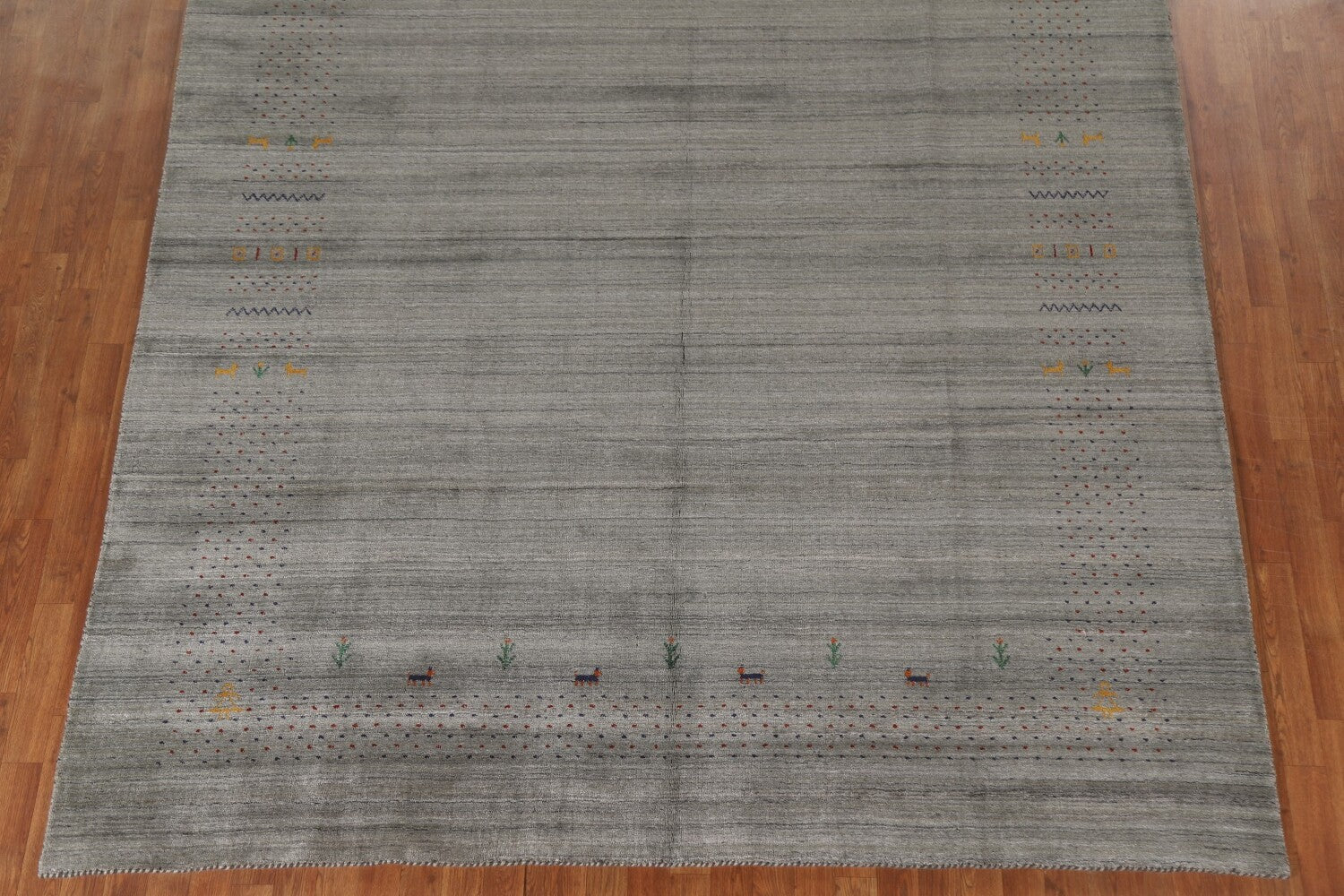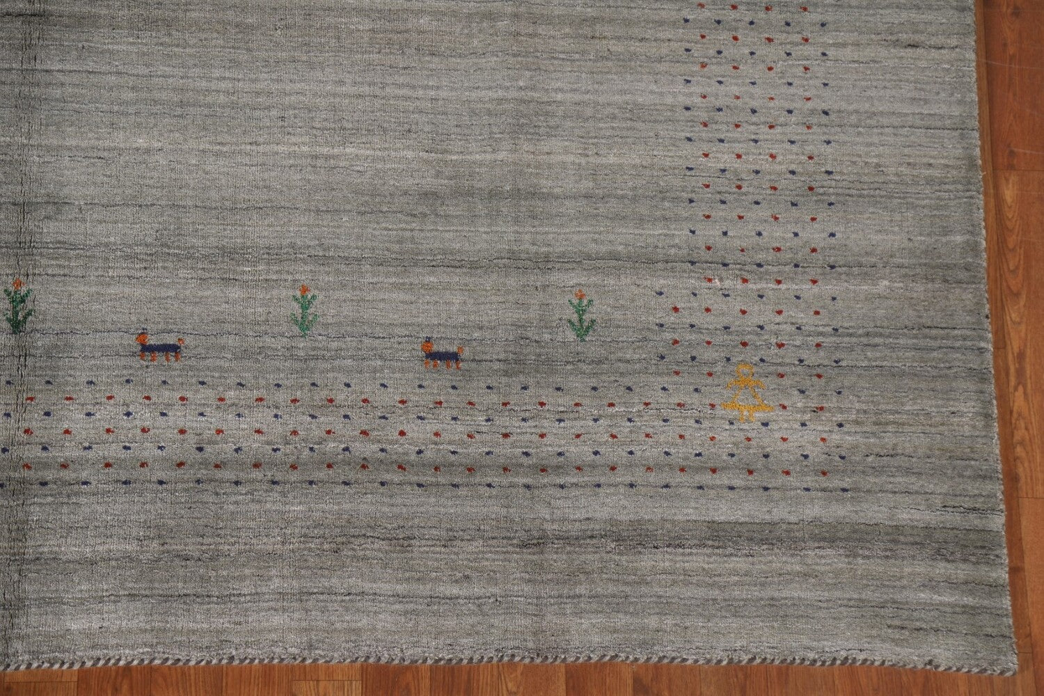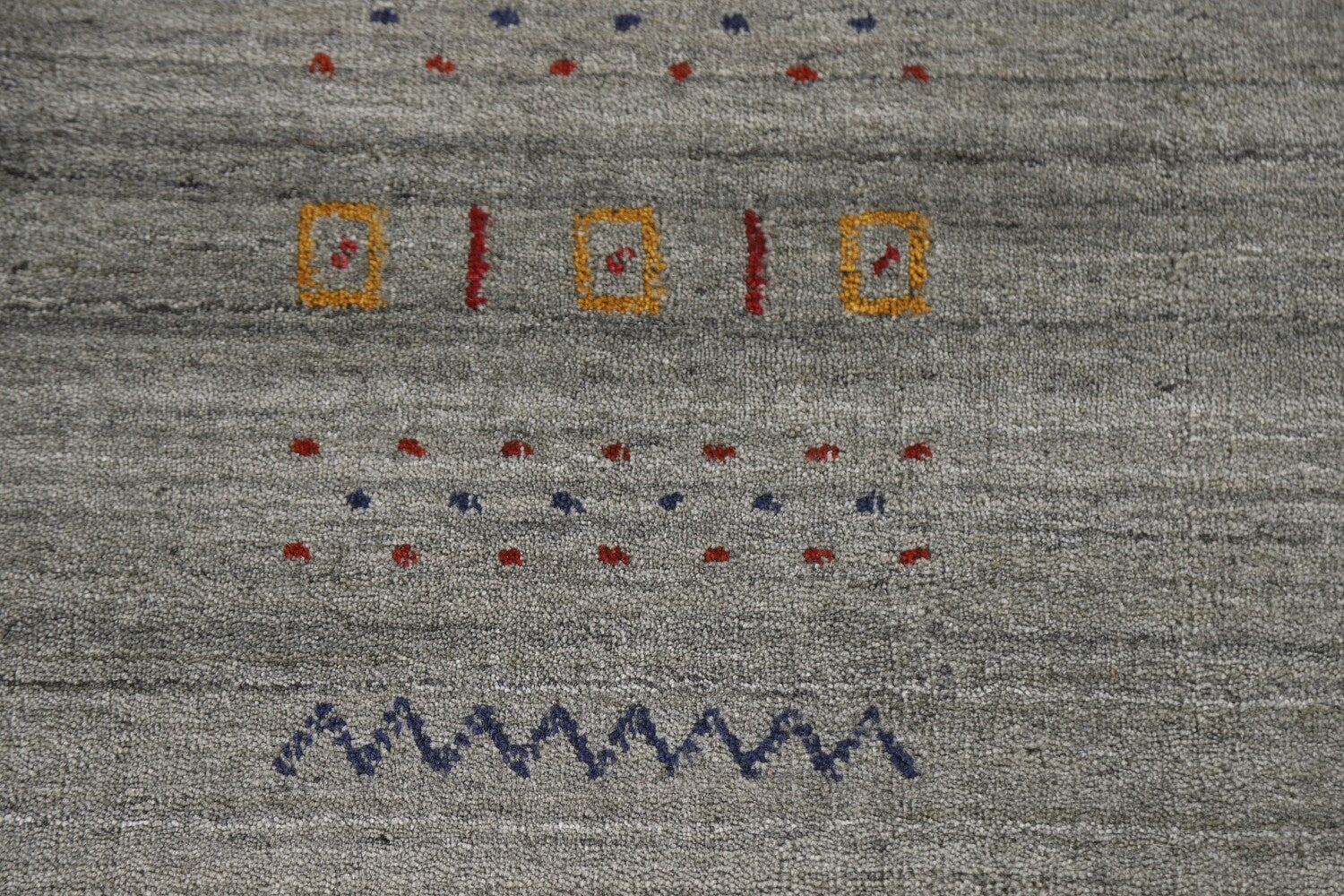 A Beautiful Genuine India Gabbeh rug is Hand Knotted by skillful weavers in India with 100% Wool Material. This rug is in condition. dimensions are 9' 9'' X 8' 3'' in foot and 297 X 251 in centimeter. the primary color is Greys & Charcoal.