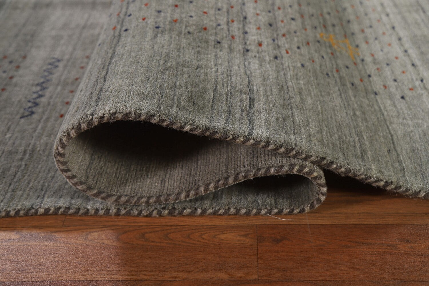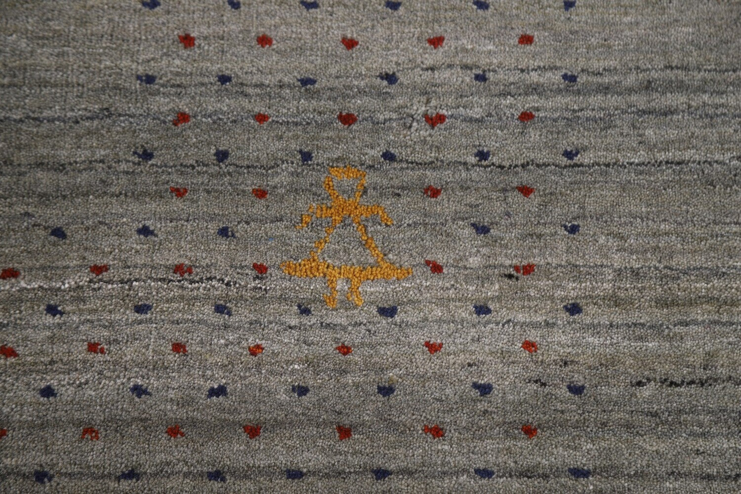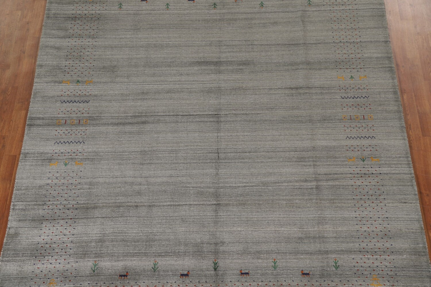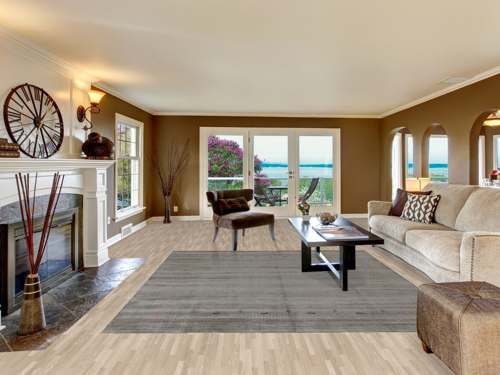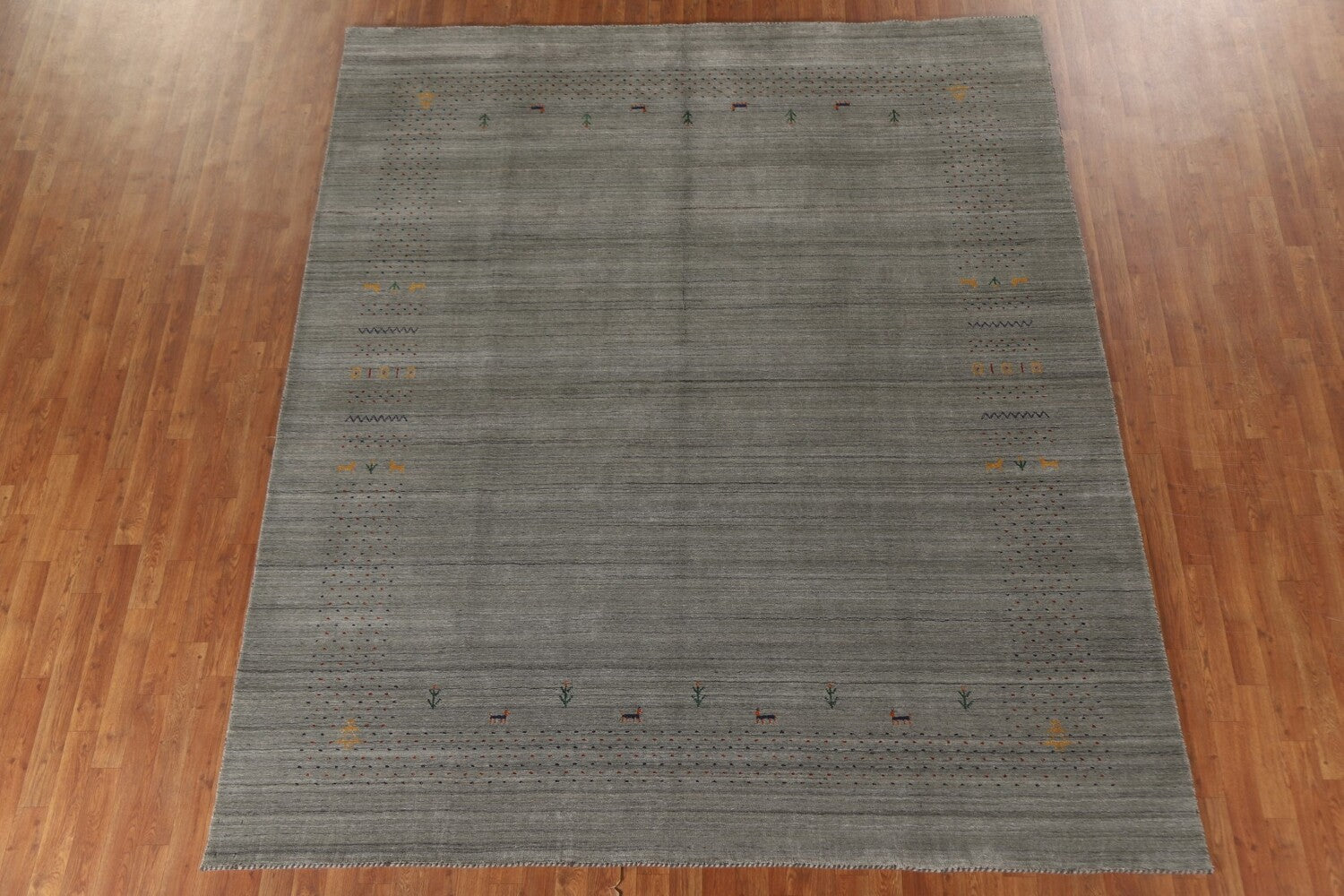A Beautiful Genuine India Gabbeh rug is Hand Knotted by skillful weavers in India with 100% Wool Material. This rug is in condition. dimensions are 9' 9'' X 8' 3'' in foot and 297 X 251 in centimeter. the primary color is Greys & Charcoal.