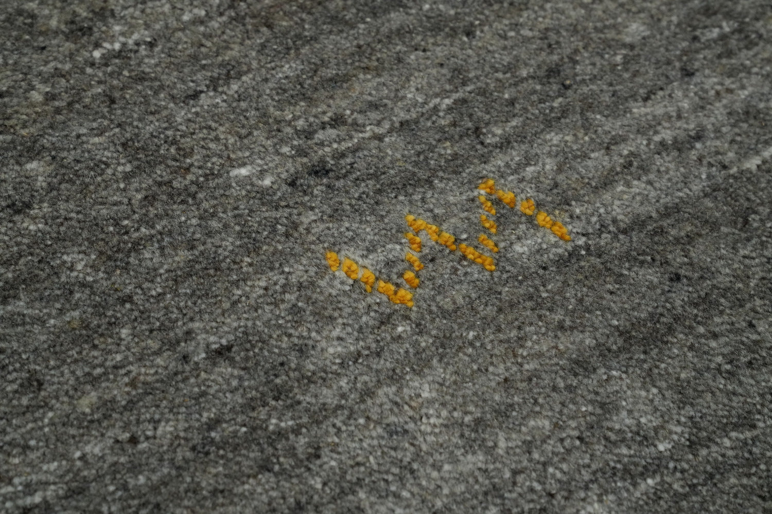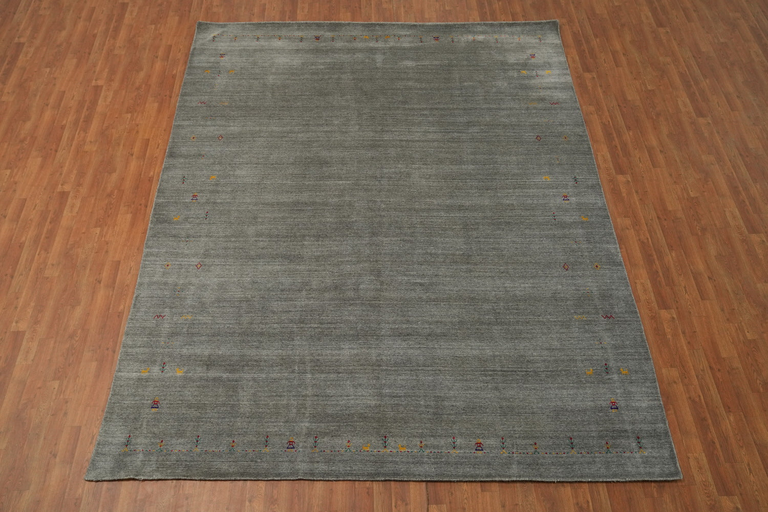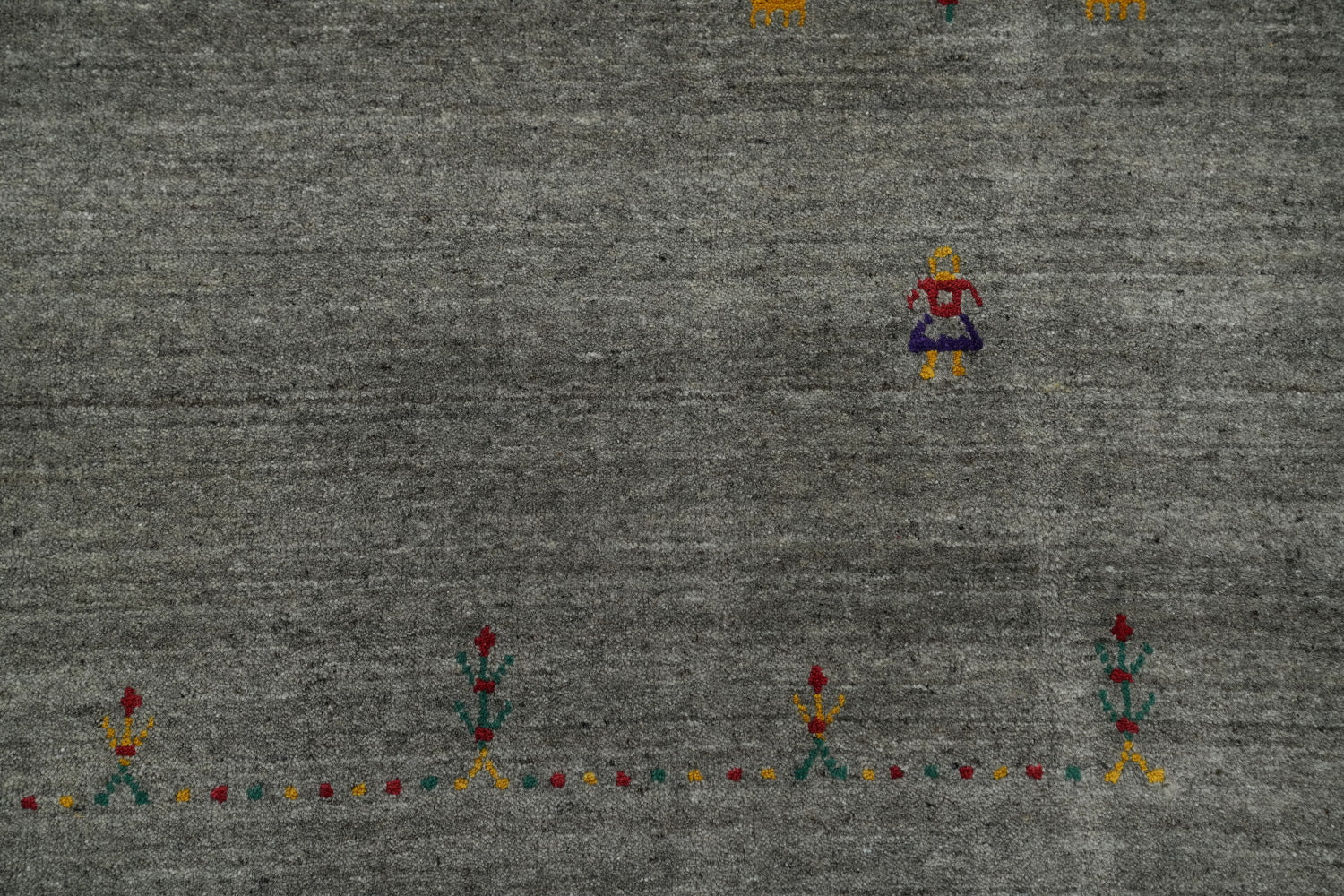 A Beautiful Genuine India Gabbeh rug is Hand Knotted by skillful weavers in India with 100% Wool Material. This rug is in New, First Quality condition. dimensions are 11' 6'' X 9' 1'' in foot and 351 X 277 in centimeter. the primary color is Greys & Charcoal.