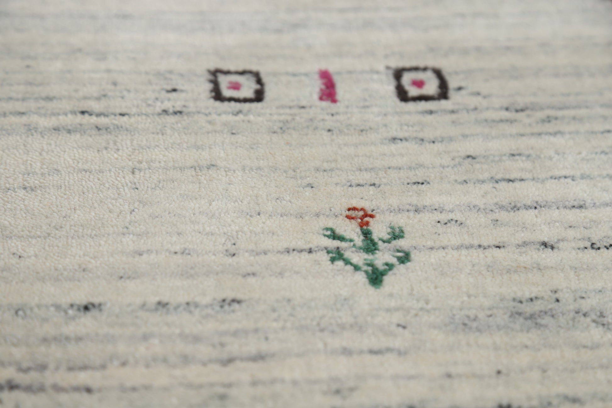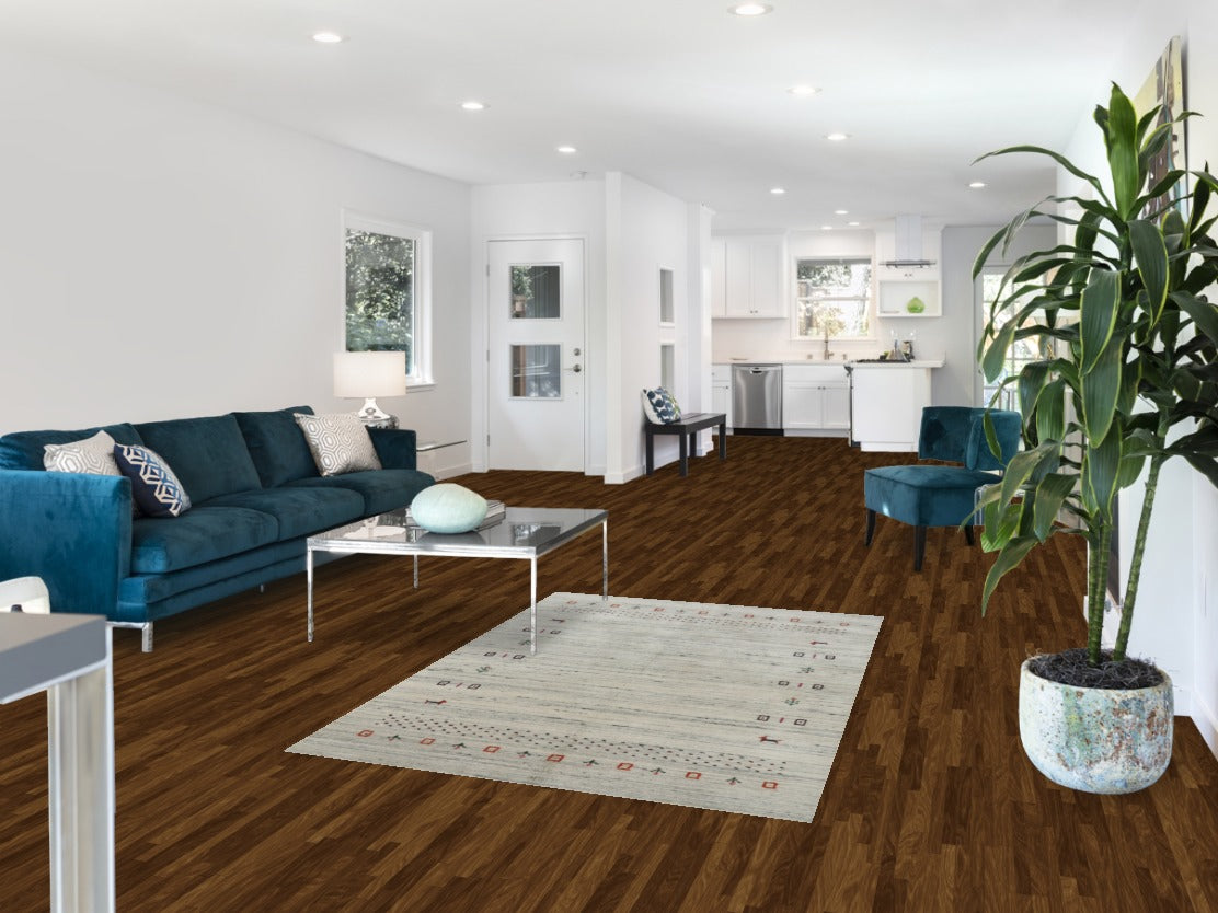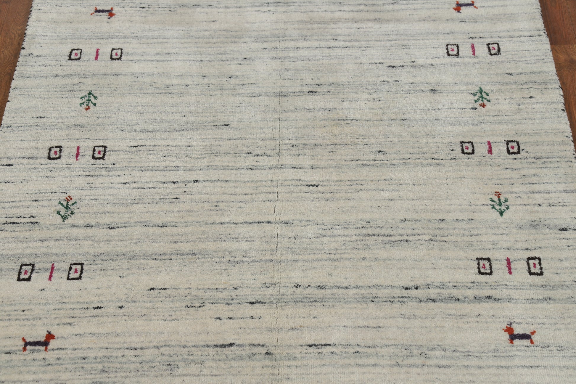 A Beautiful Genuine India Gabbeh rug is Hand Knotted by skillful weavers in India with 100% Wool Material. This rug is in New, First Quality condition. dimensions are 5' 9'' X 4' 0'' in foot and 175 X 122 in centimeter. the primary color is Beige & Ivories.