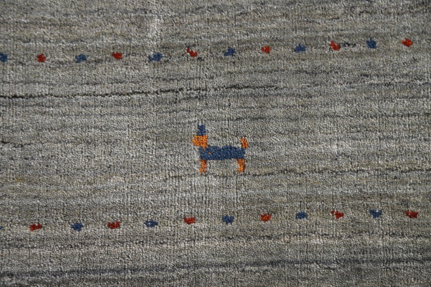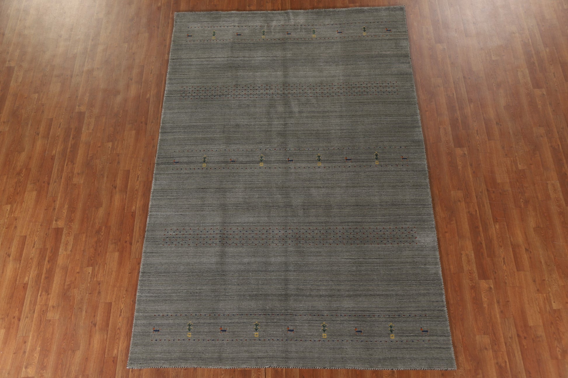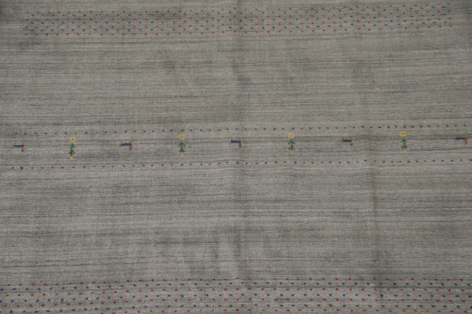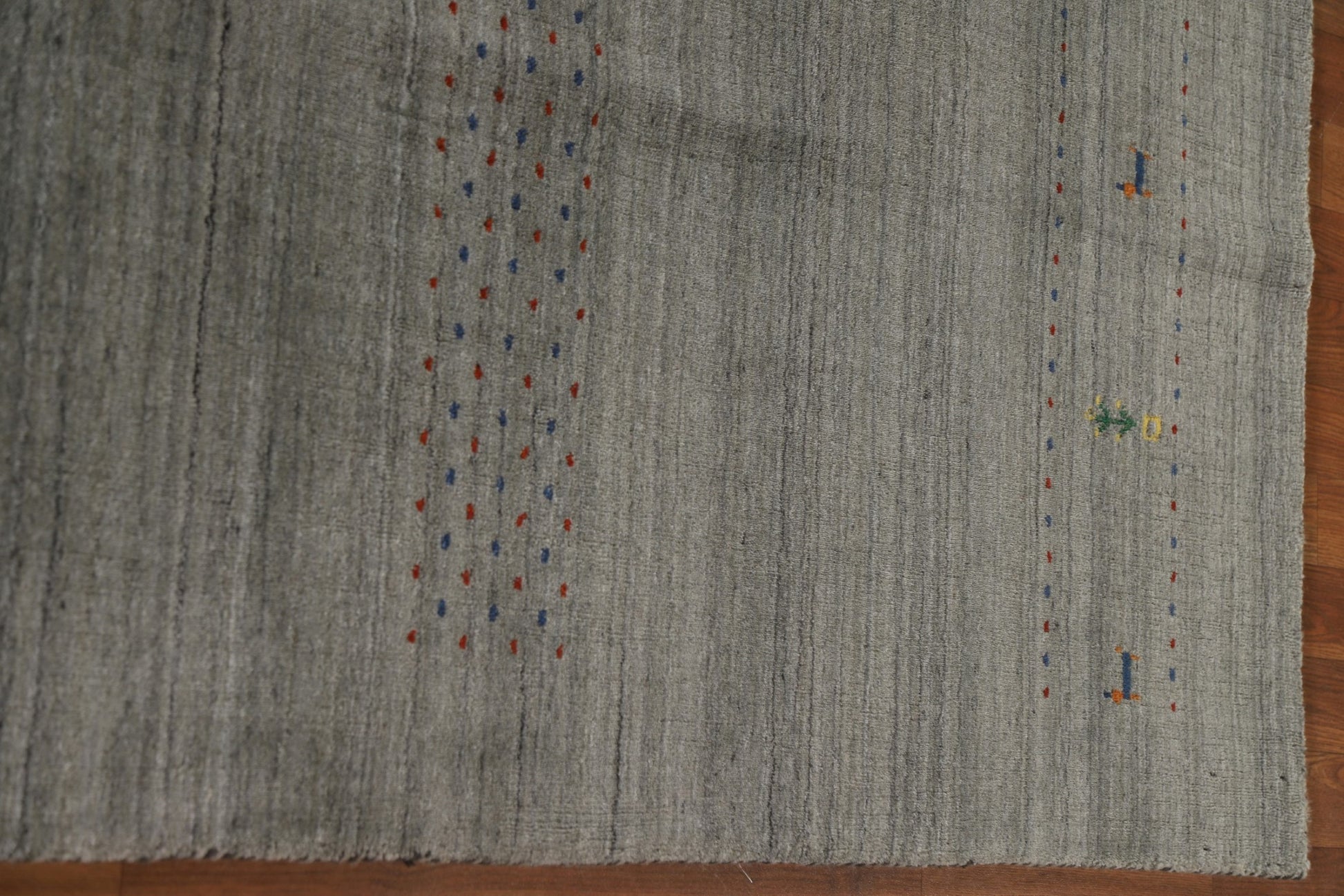 A Beautiful Genuine India Gabbeh rug is Hand Knotted by skillful weavers in India with 100% Wool Material. This rug is in New, First Quality condition. dimensions are 9' 9'' X 6' 6'' in foot and 297 X 198 in centimeter. the primary color is Greys & Charcoal.
