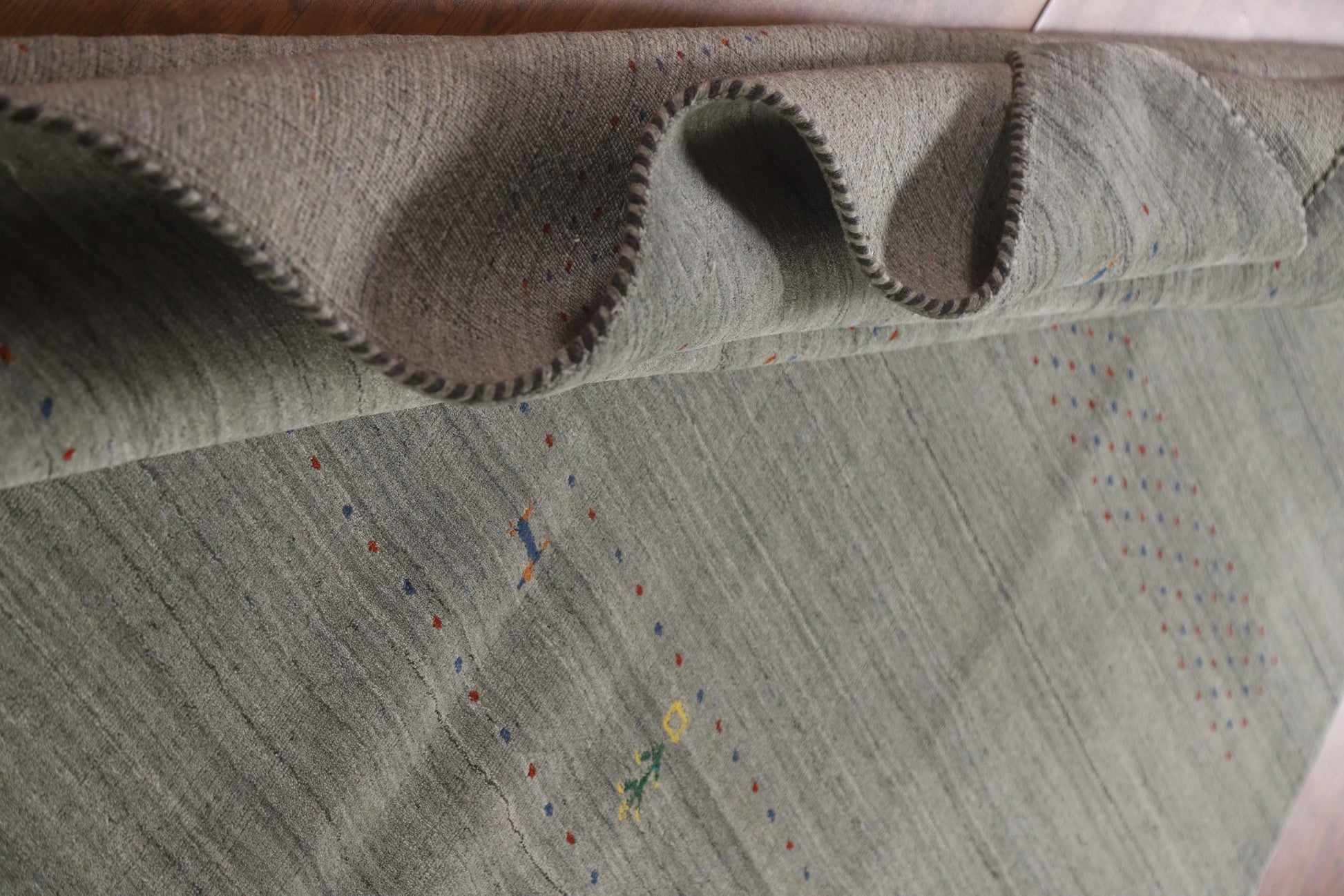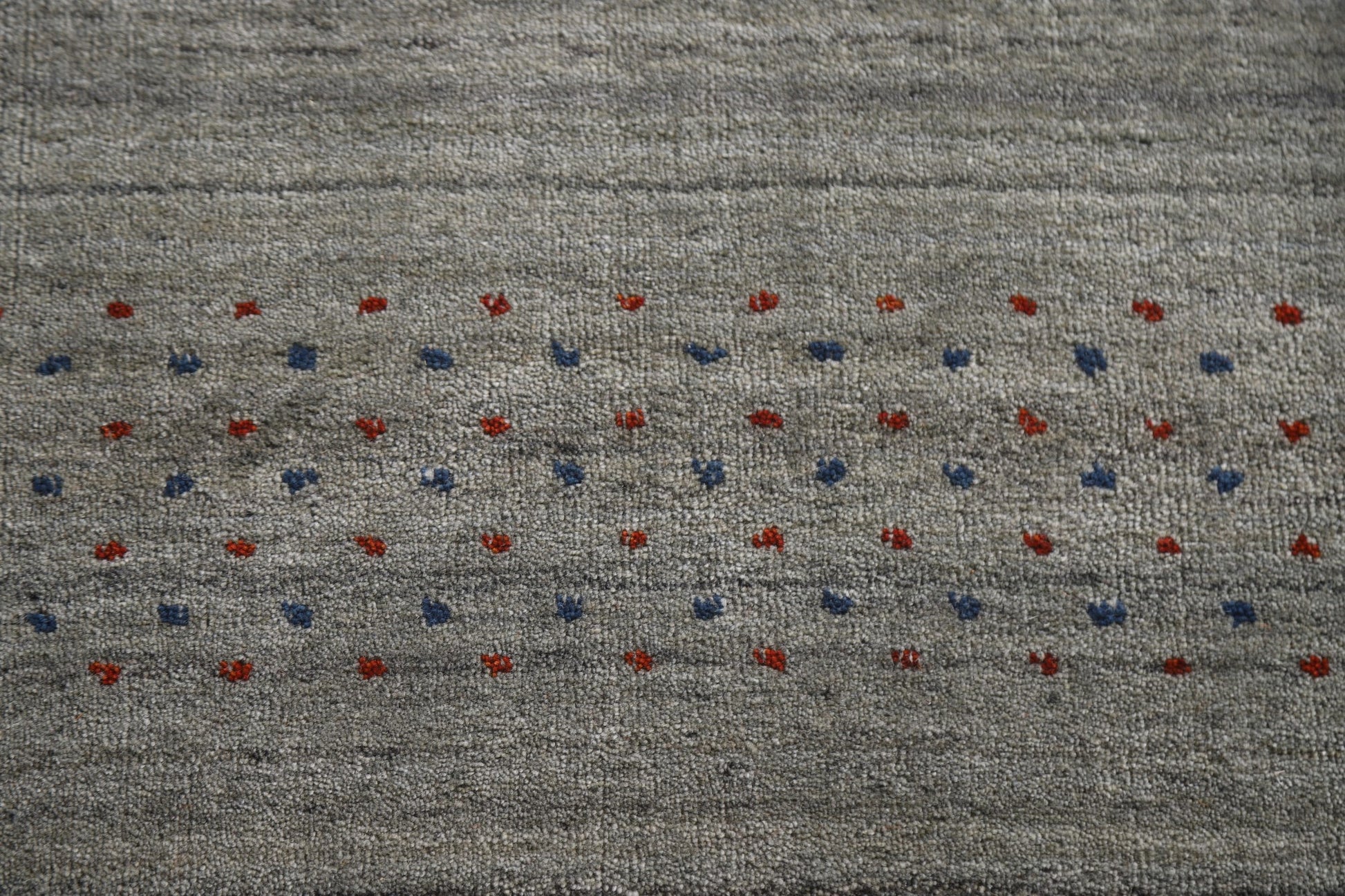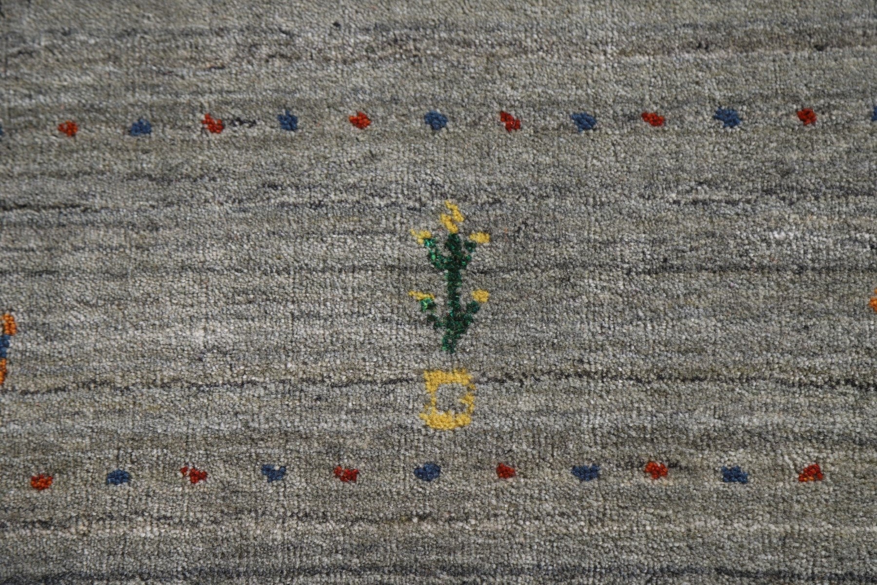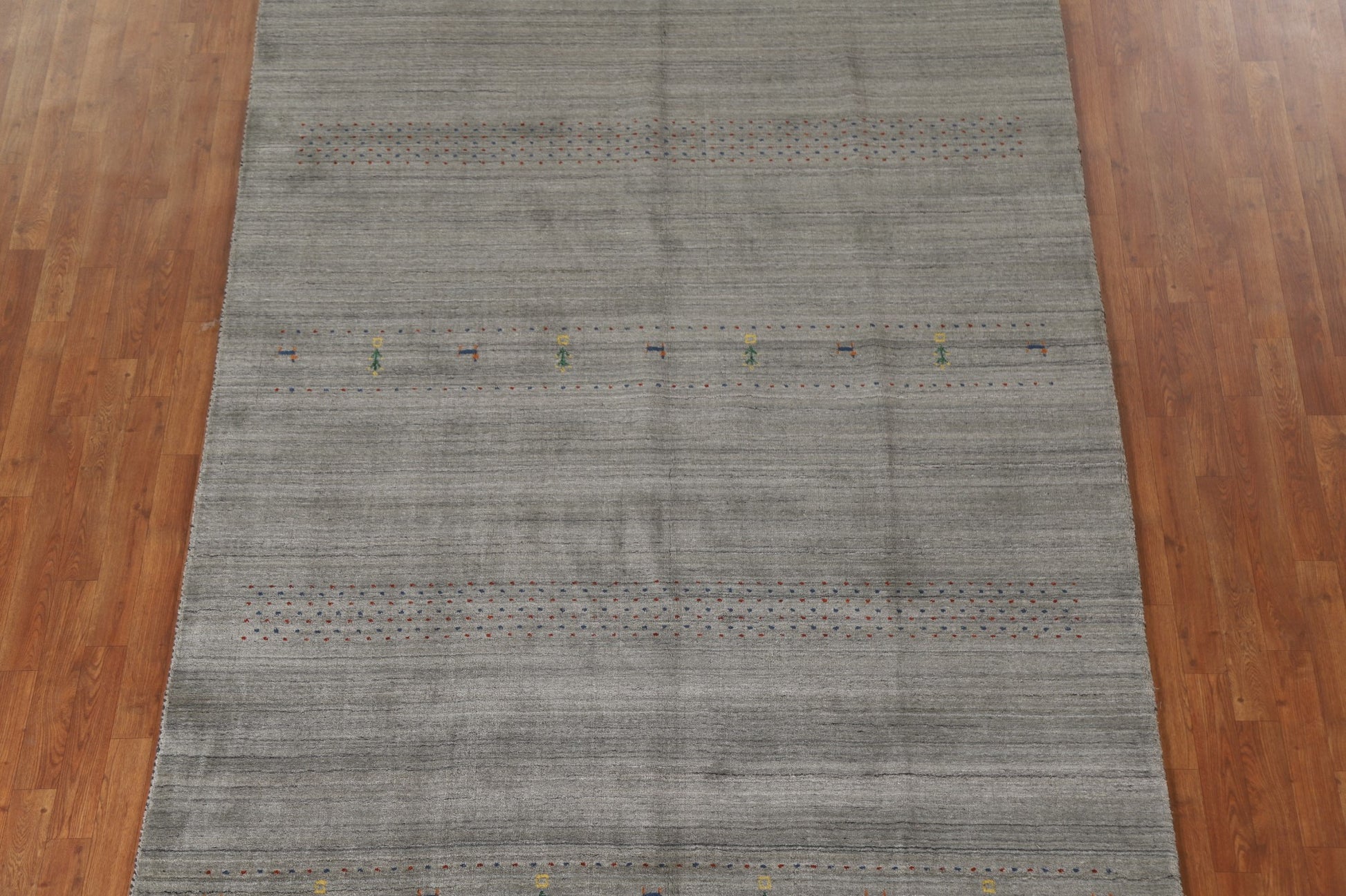 A Beautiful Genuine India Gabbeh rug is Hand Knotted by skillful weavers in India with 100% Wool Material. This rug is in New, First Quality condition. dimensions are 9' 9'' X 6' 6'' in foot and 297 X 198 in centimeter. the primary color is Greys & Charcoal.