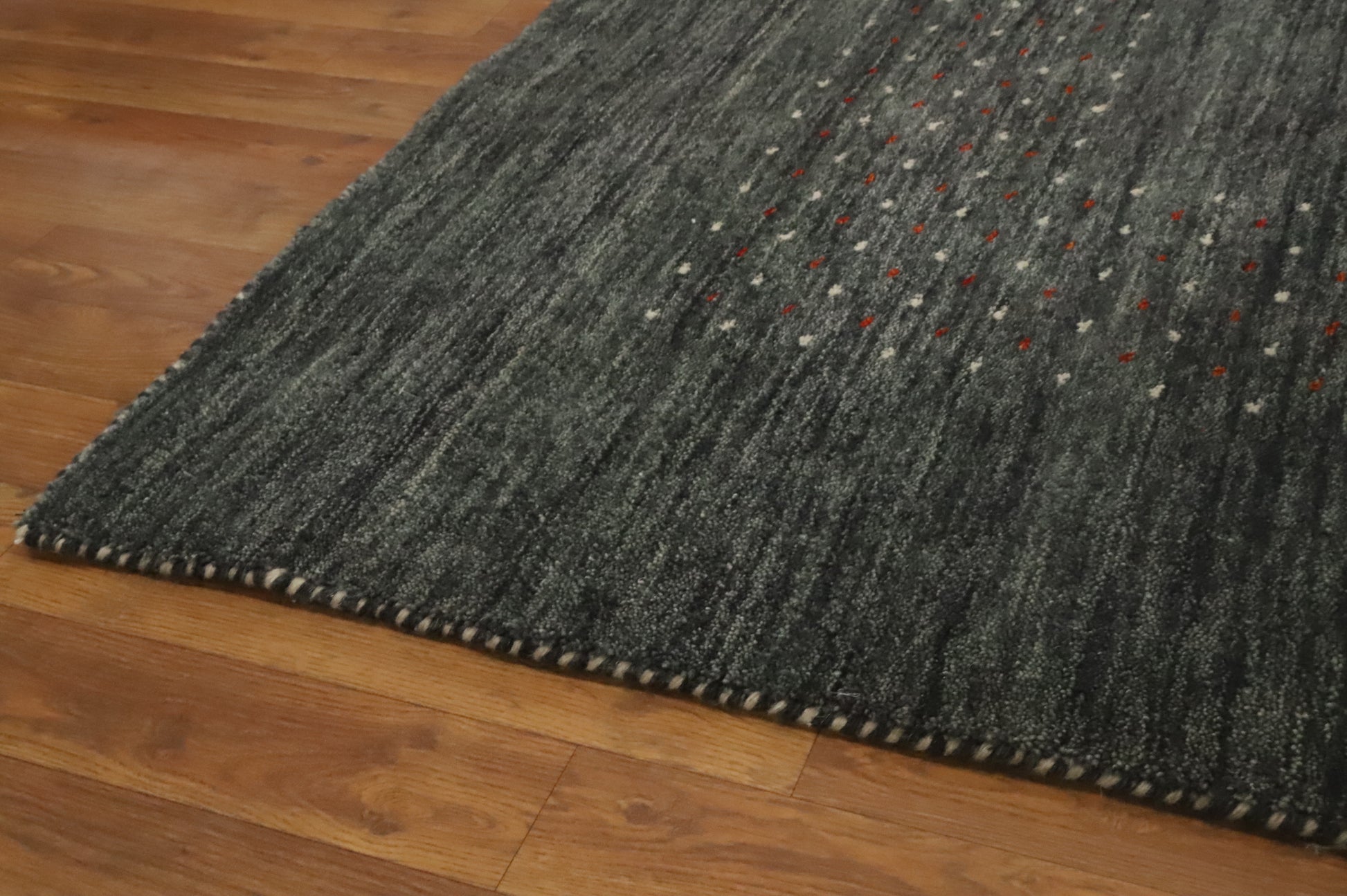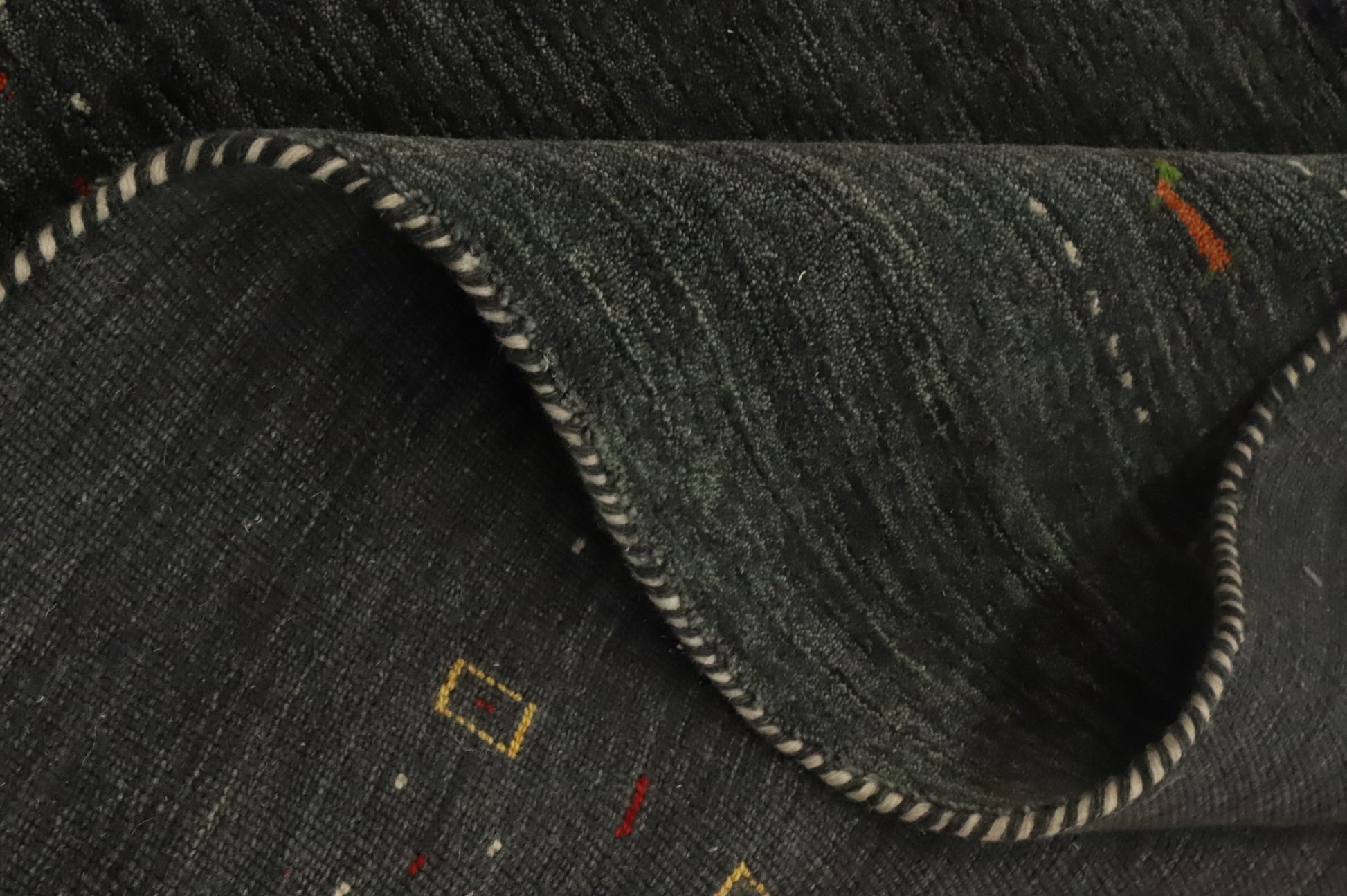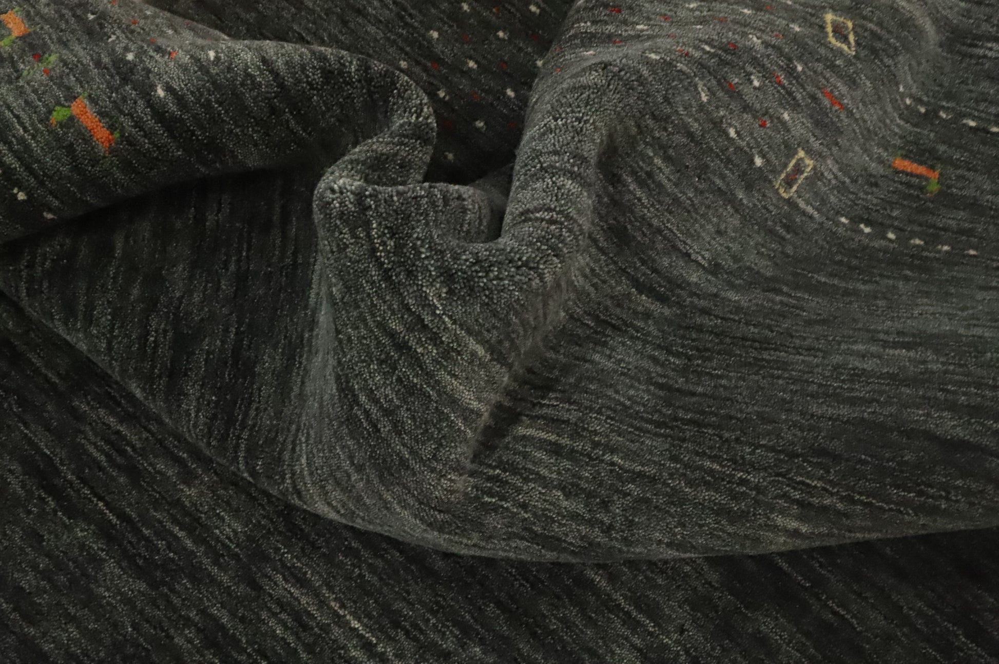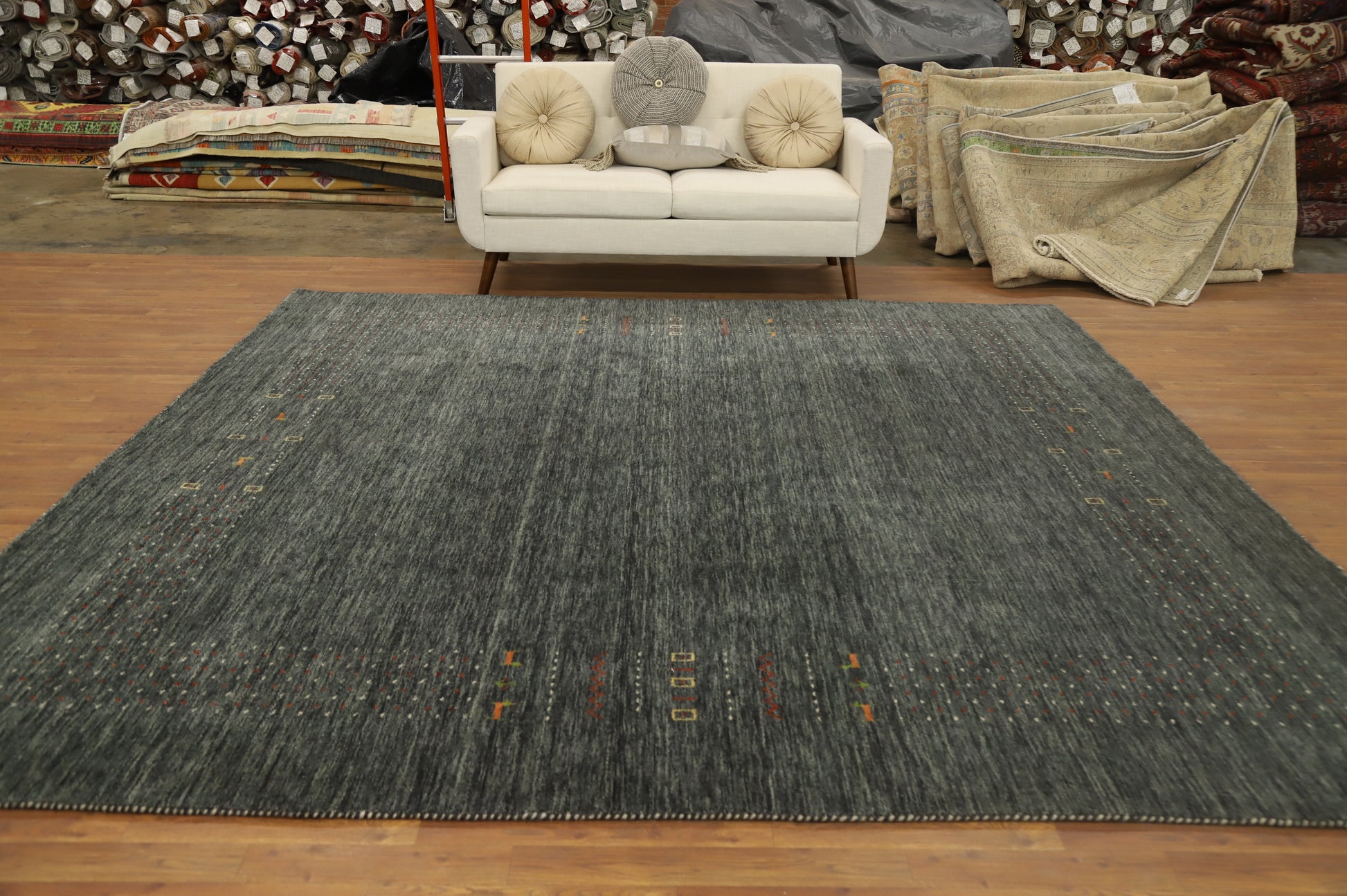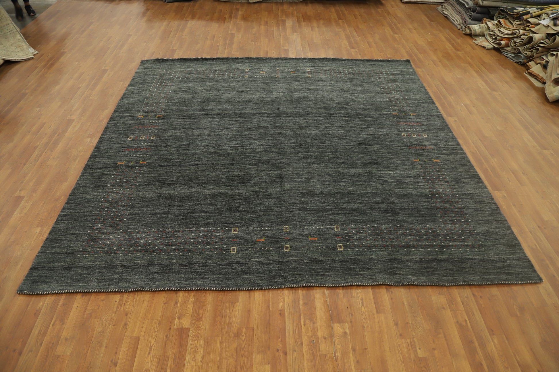 A Beautiful Genuine India Gabbeh rug is Hand Knotted by skillful weavers in India with 100% Wool Material. This rug is in New, First Quality condition. dimensions are 9' 9'' X 10' 0'' in foot and 297 X 305 in centimeter. the primary color is Greys & Charcoal.