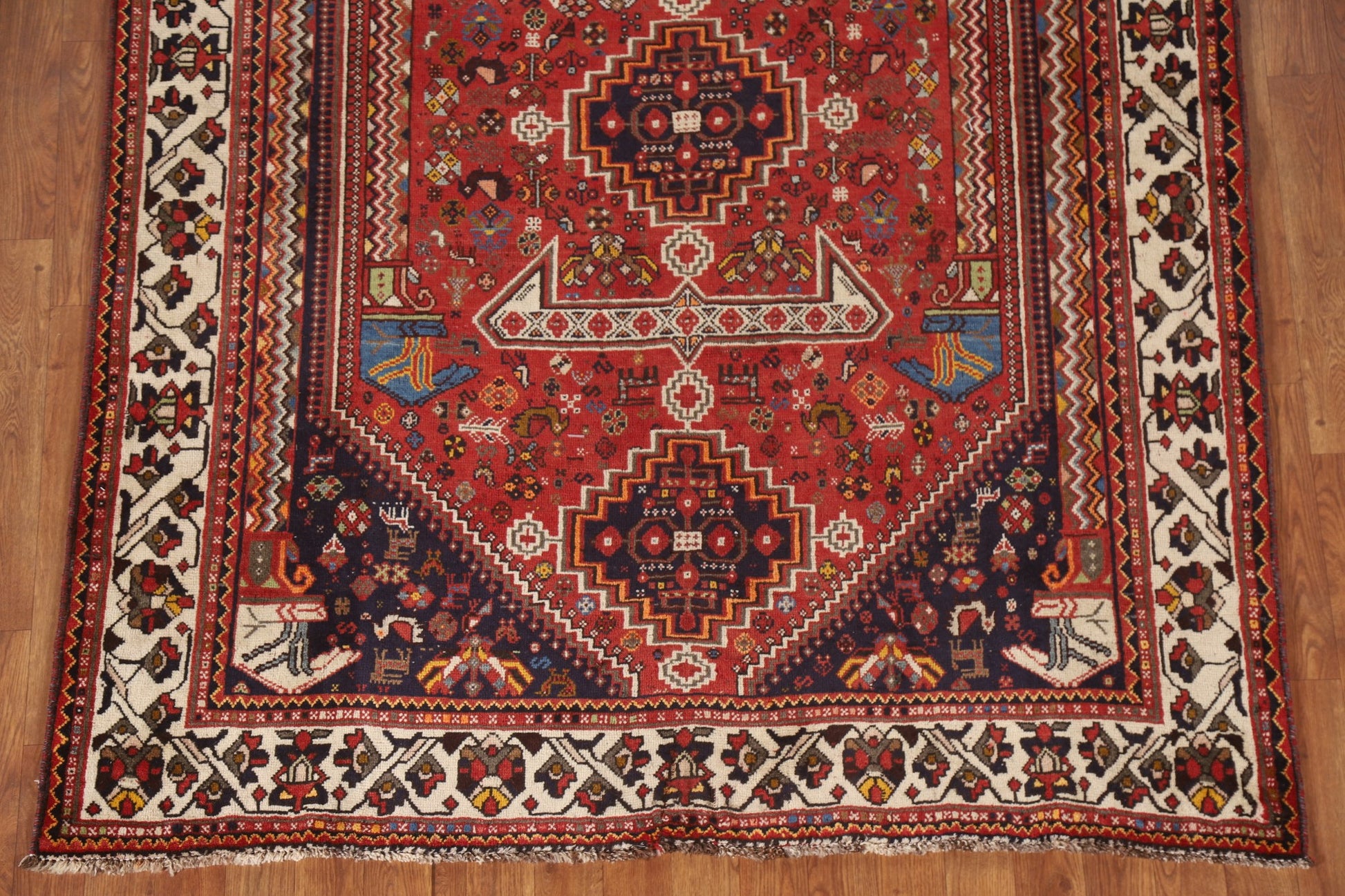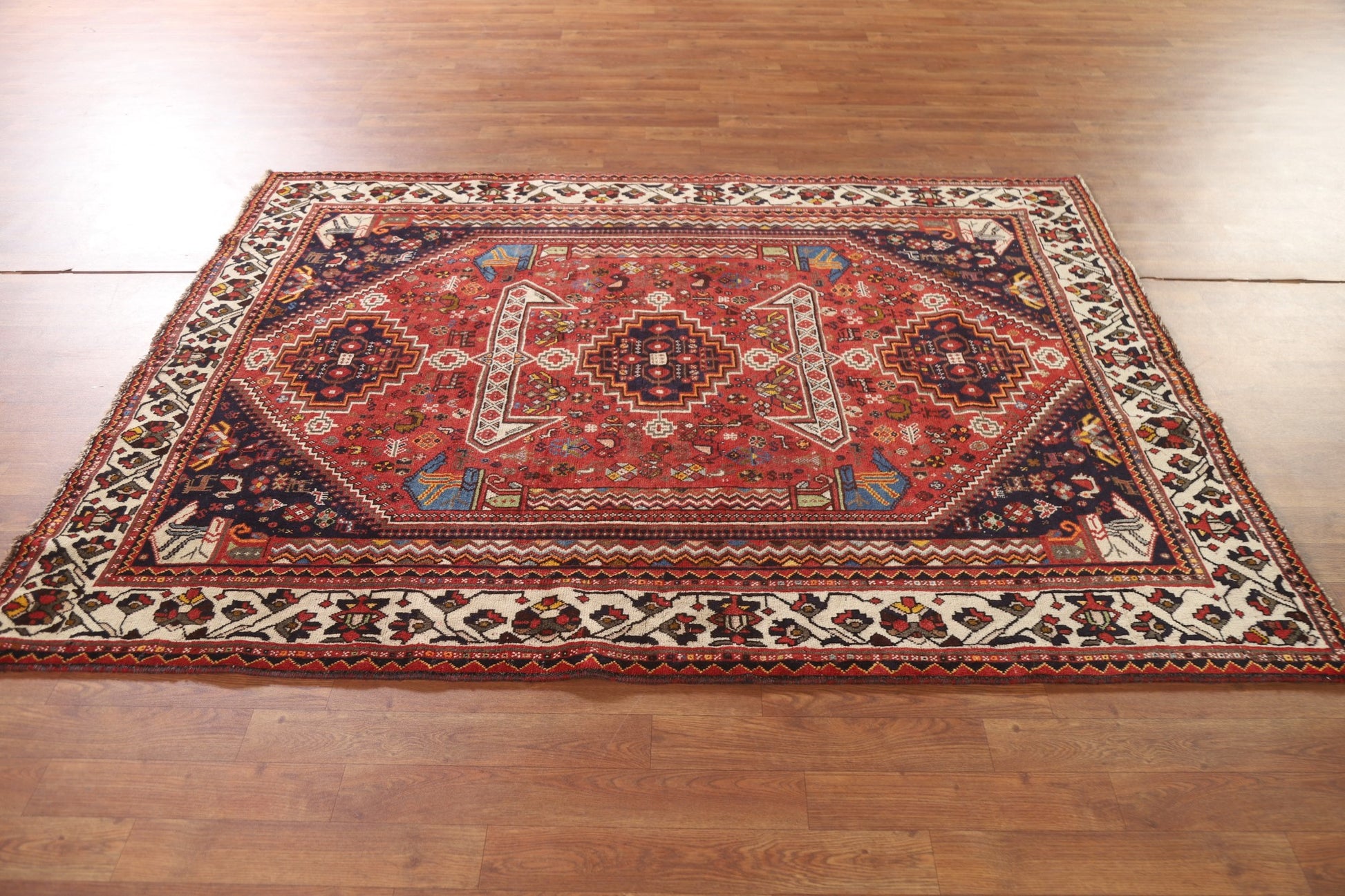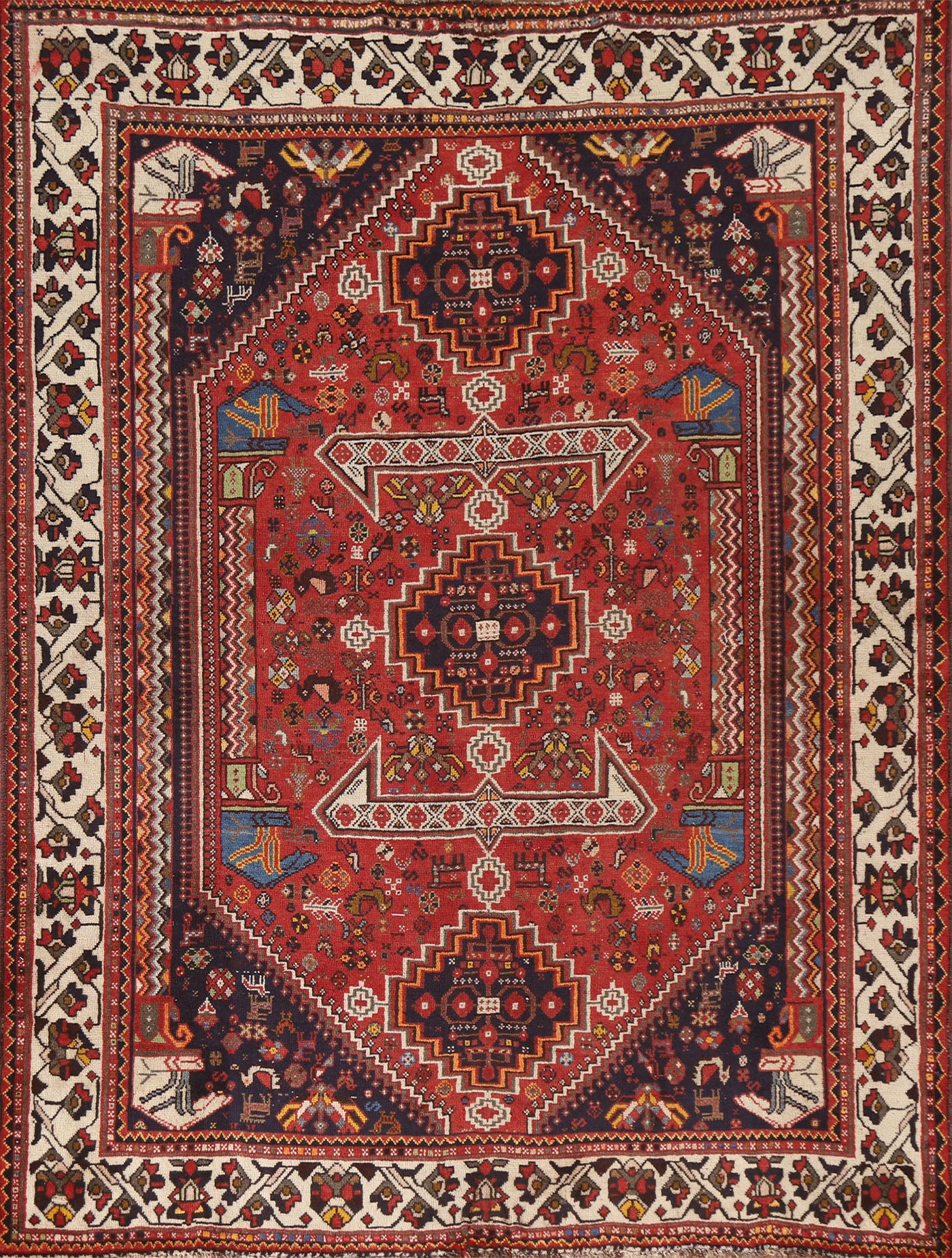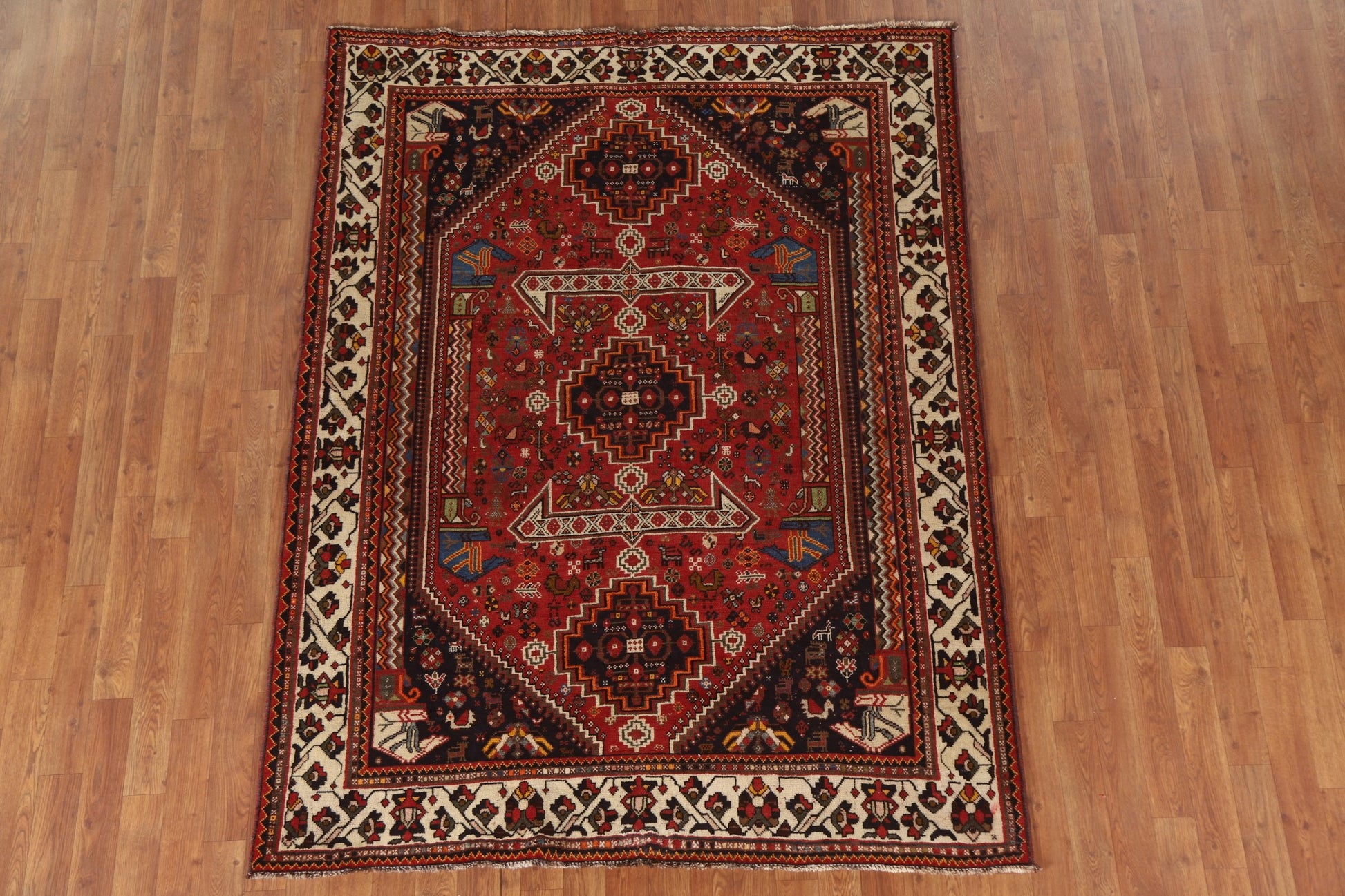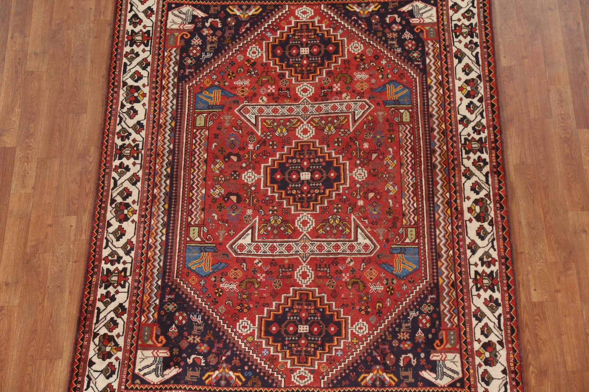 A Beautiful Genuine Persia ( Persia ) Abadeh rug is Hand Knotted by skillful weavers in Persia ( Persia ) with 100% Wool Material. This rug is in Very Good (Low Pile-Repair) condition. dimensions are 6' 8'' X 5' 1'' in foot and 203 X 155 in centimeter. the primary color is Red.