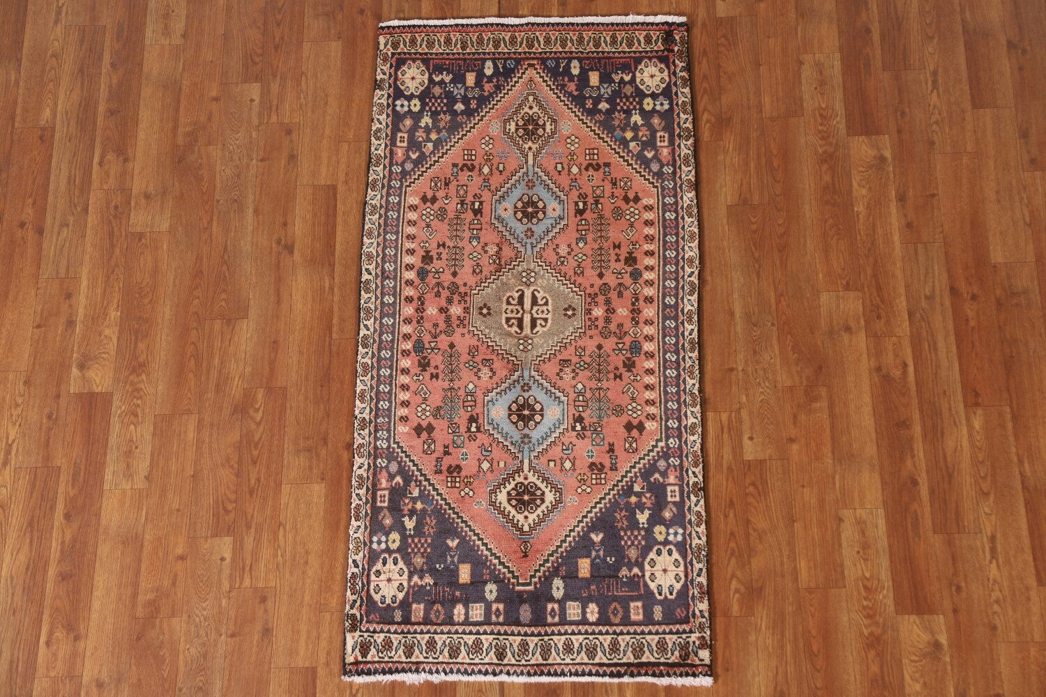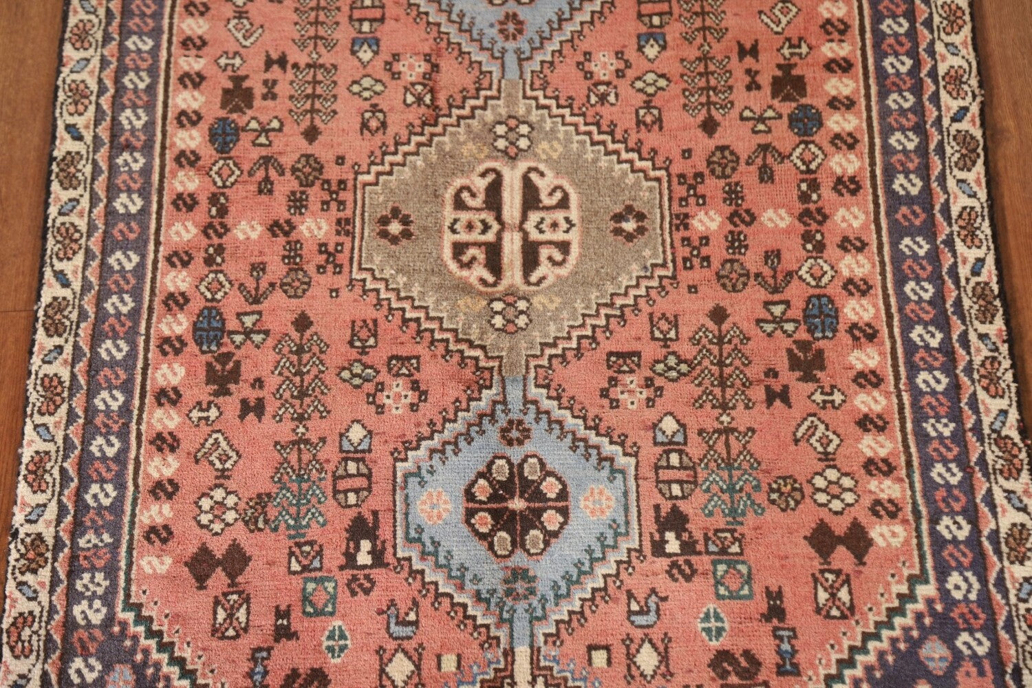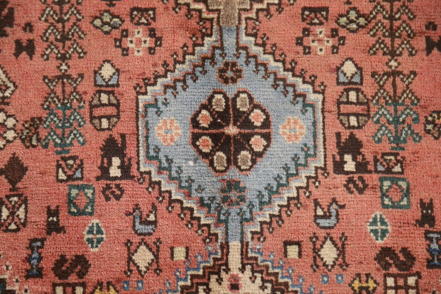 A Beautiful Genuine Persia ( Persia ) Abadeh rug is Hand Knotted by skillful weavers in Persia ( Persia ) with 100% Wool Material. This rug is in Very Good condition. dimensions are 4' 8'' X 2' 2'' in foot and 142 X 66 in centimeter. the primary color is Pink.