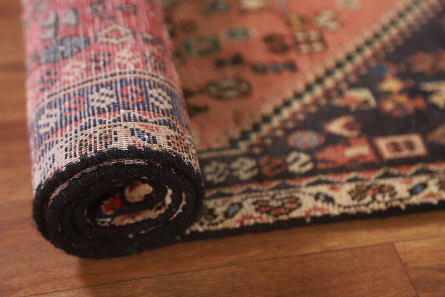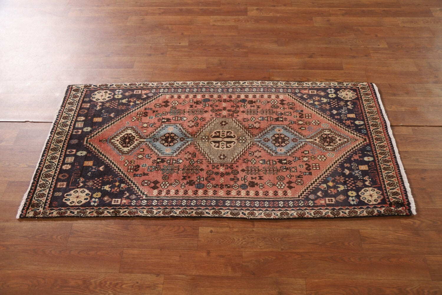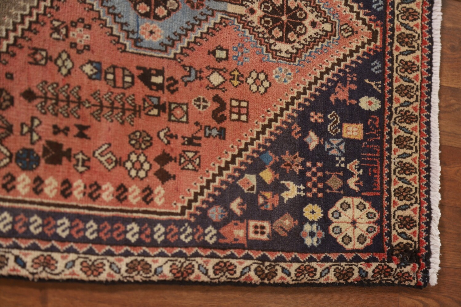 A Beautiful Genuine Persia ( Persia ) Abadeh rug is Hand Knotted by skillful weavers in Persia ( Persia ) with 100% Wool Material. This rug is in Very Good condition. dimensions are 4' 8'' X 2' 2'' in foot and 142 X 66 in centimeter. the primary color is Pink.
