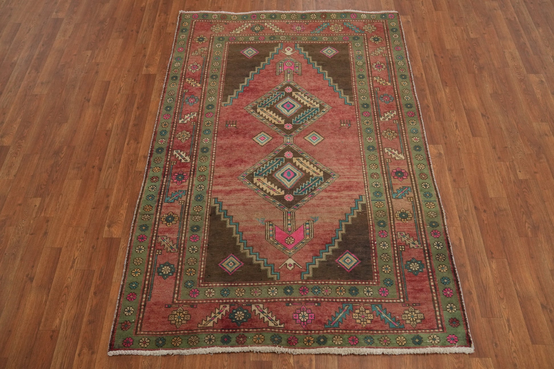 A Beautiful Genuine Persia ( Persia ) Ardebil rug is Hand Knotted by skillful weavers in Persia ( Persia ) with 100% Wool Material. This rug is in Very Good ( Low Pile- Abrash ) condition. dimensions are 6' 6'' X 4' 6'' in foot and 198 X 137 in centimeter. the primary color is Pink.