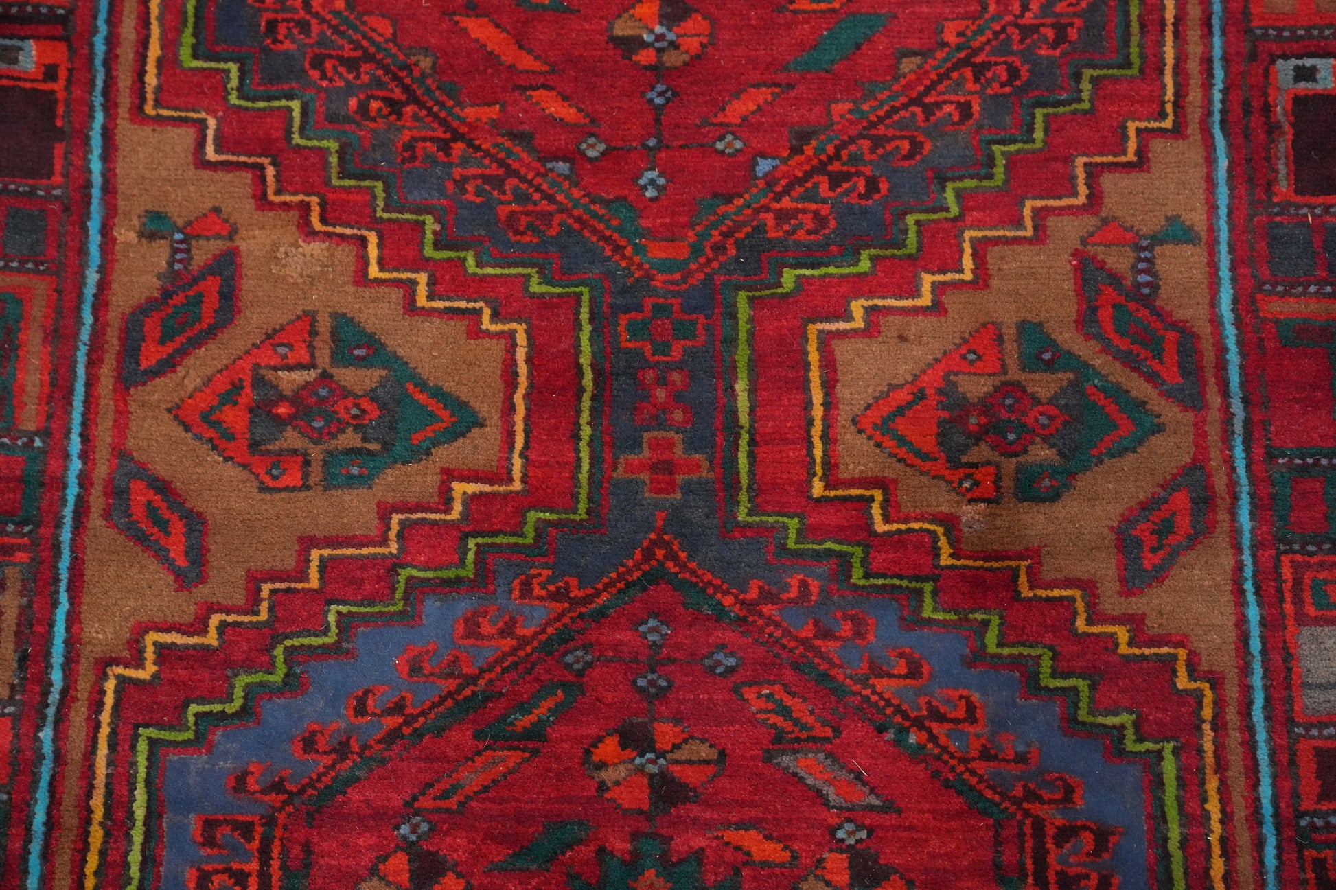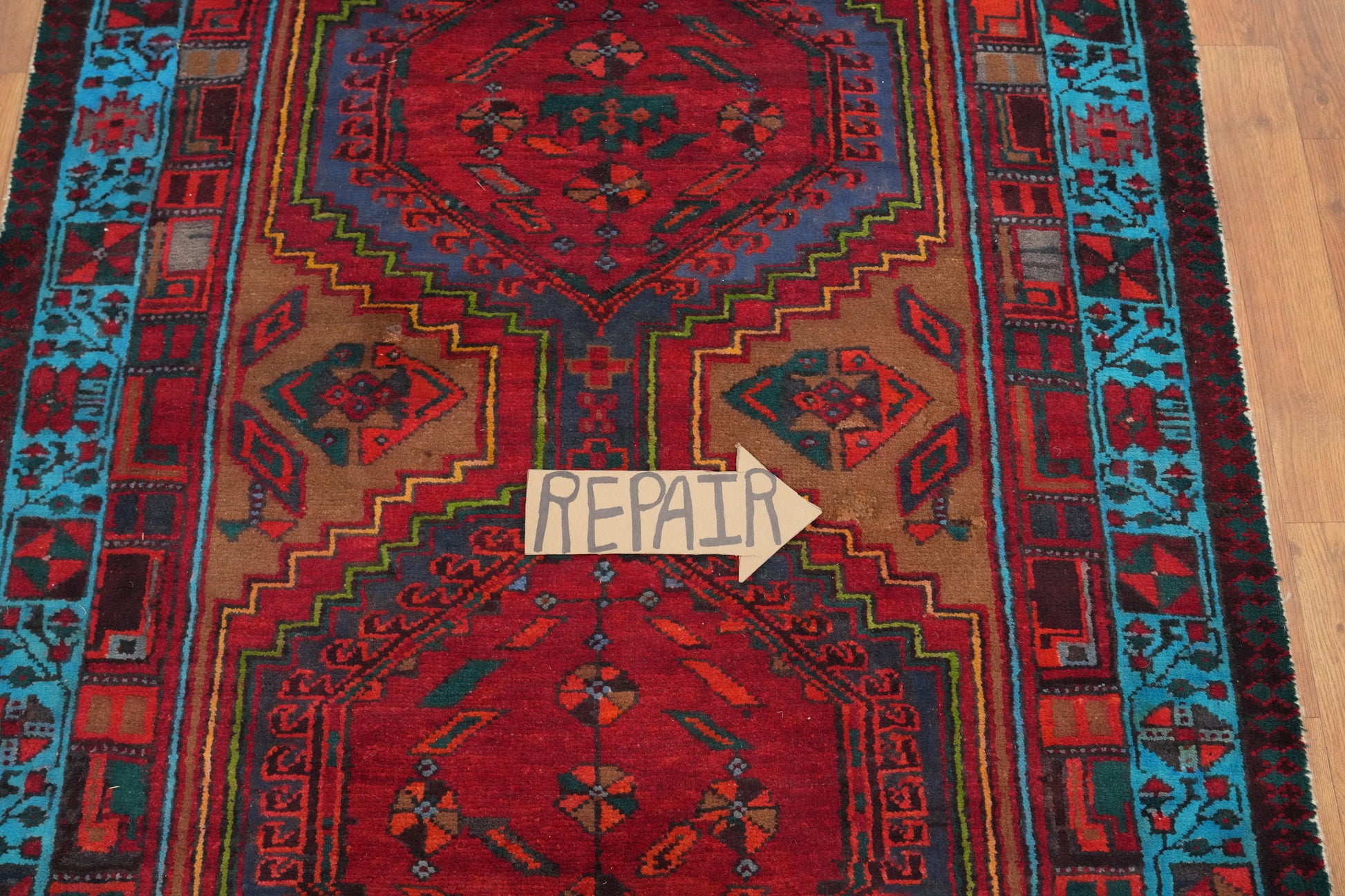 A Beautiful Genuine Persia ( Persia ) Ardebil rug is Hand Knotted by skillful weavers in Persia ( Persia ) with 100% Wool Material. This rug is in Very Good (Small Repair) condition. dimensions are 10' 6'' X 3' 6'' in foot and 320 X 107 in centimeter. the primary color is Red.