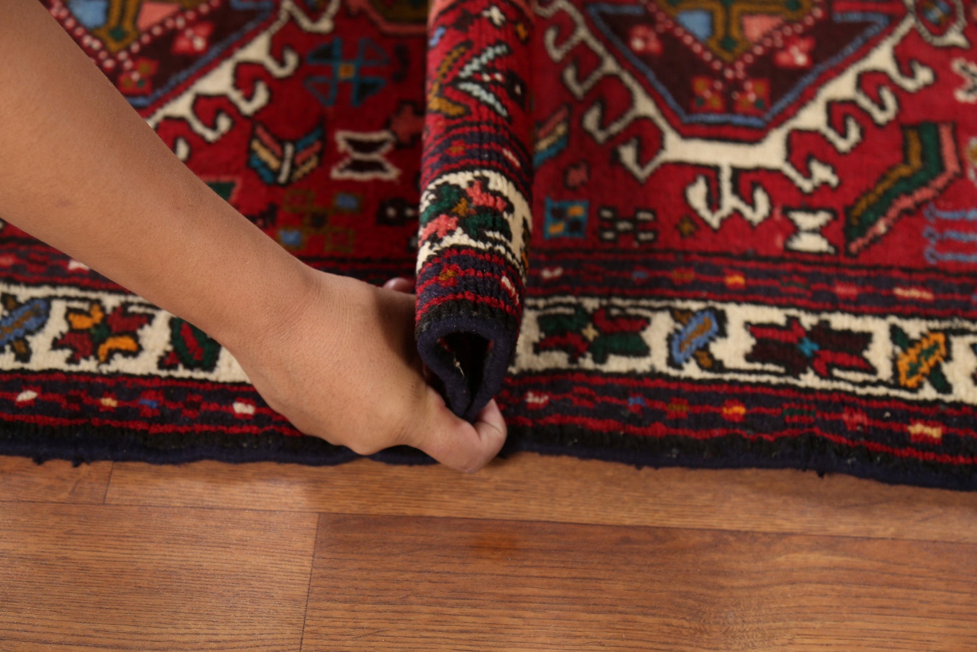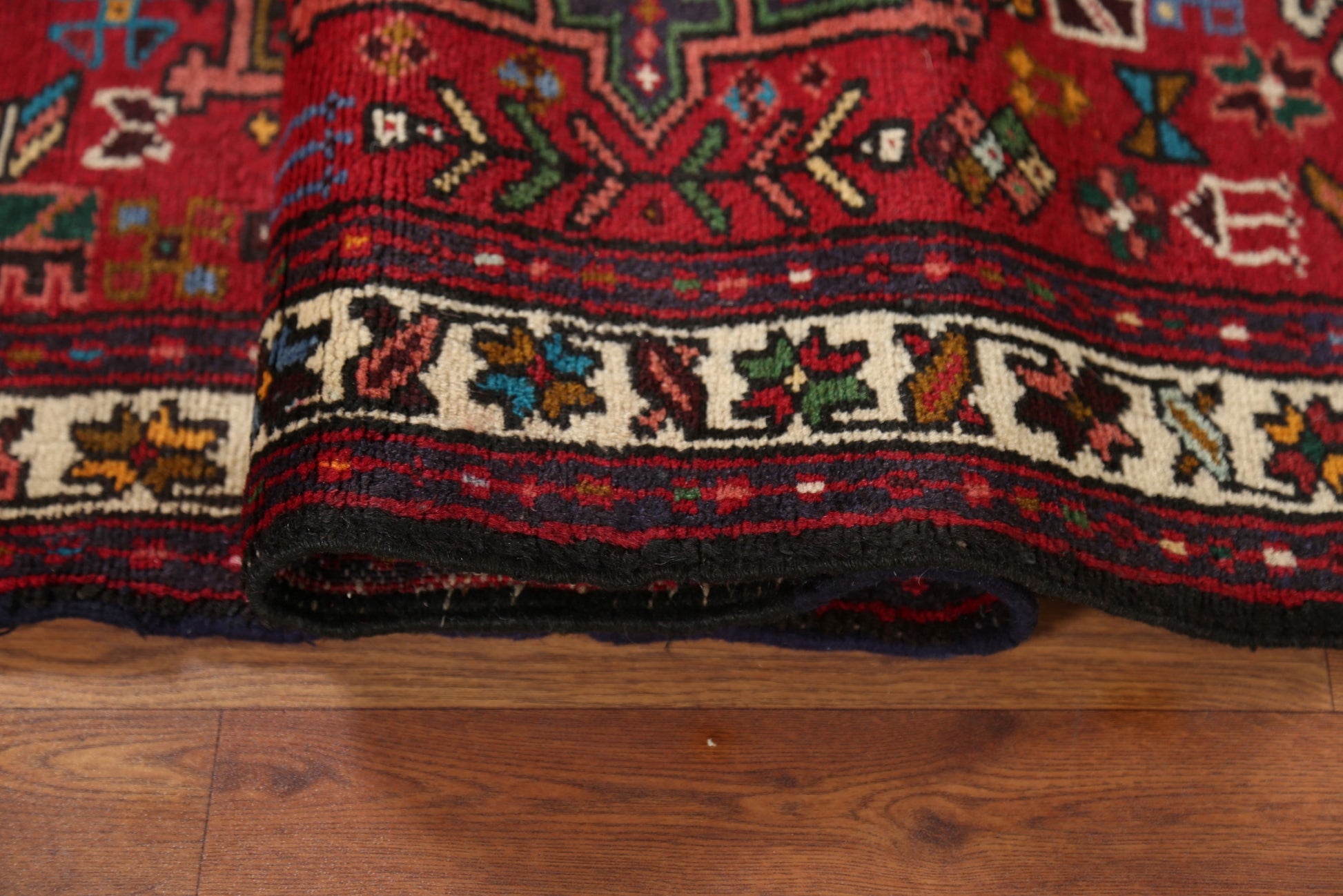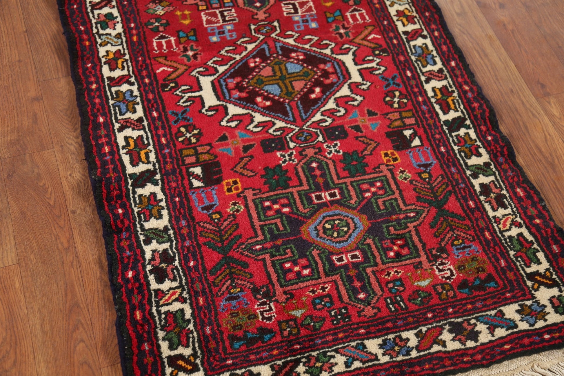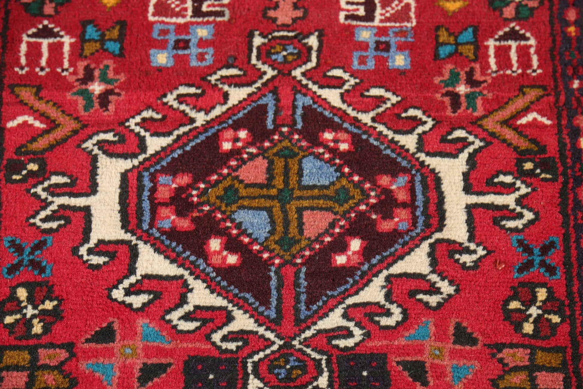 A Beautiful Genuine Persia ( Persia ) Gharajeh rug is Hand Knotted by skillful weavers in Persia ( Persia ) with 100% Wool Material. This rug is in New, First Quality condition. dimensions are 9' 10'' X 2' 4'' in foot and 300 X 71 in centimeter. the primary color is Red.