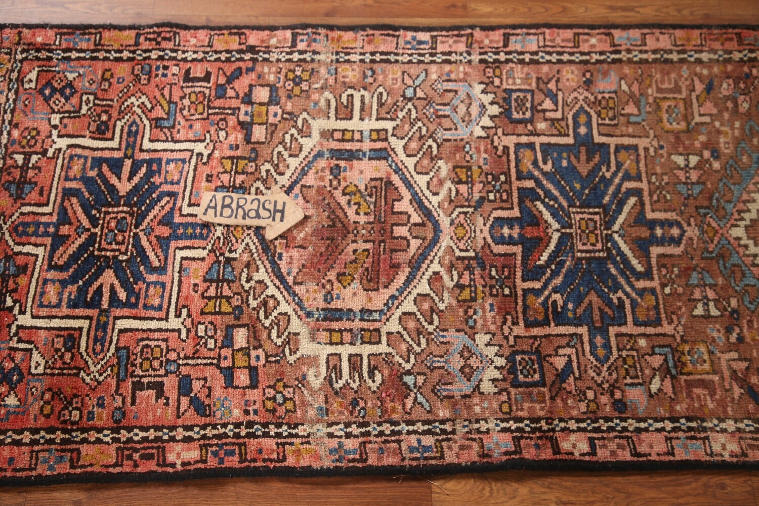A Beautiful Genuine Persia ( Persia ) Gharajeh rug is Hand Knotted by skillful weavers in Persia ( Persia ) with 100% Wool Material. This rug is in Very Good (Low Pile-Abrash) condition. dimensions are 8' 9'' X 2' 5'' in foot and 267 X 74 in centimeter. the primary color is Multi-Colored.