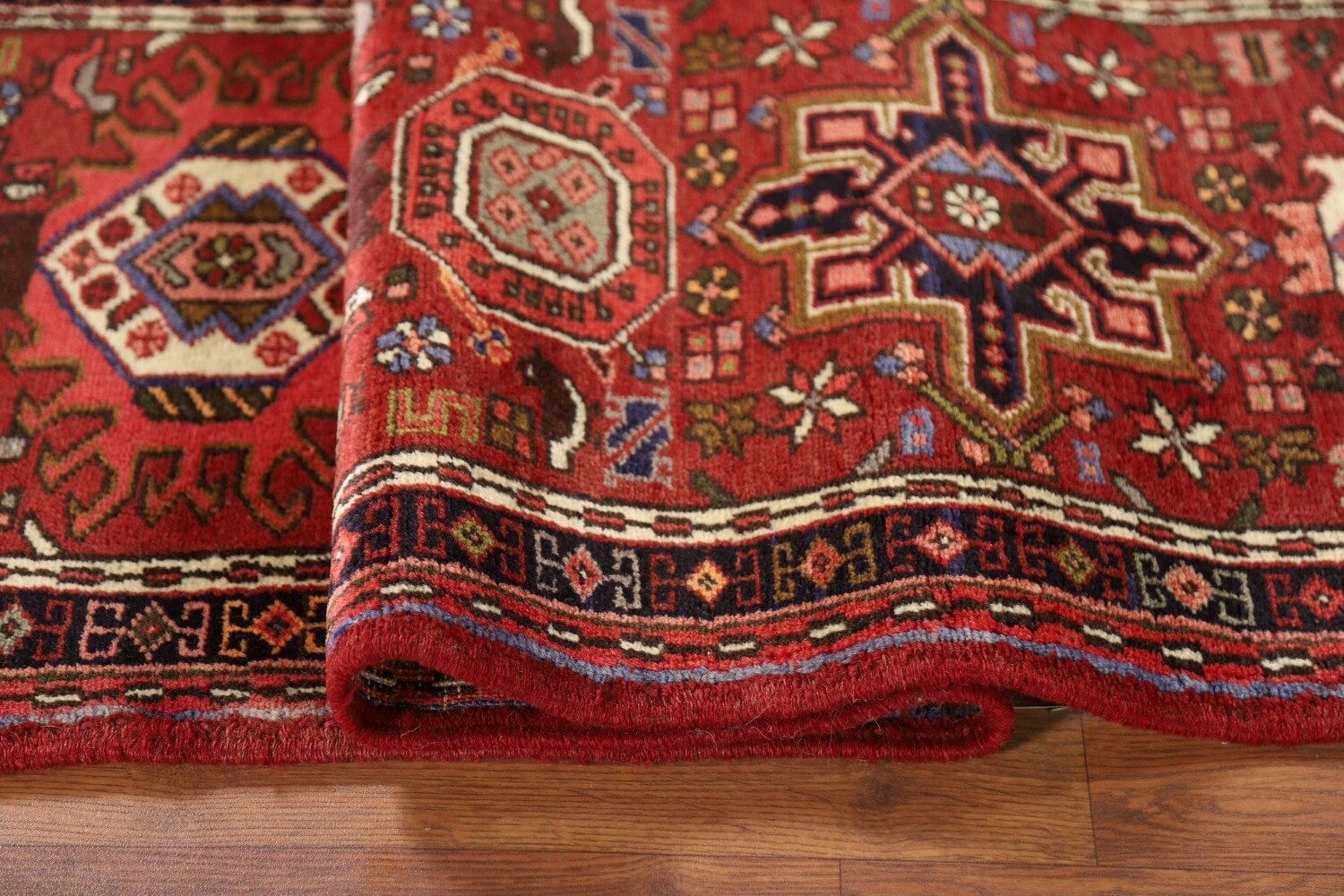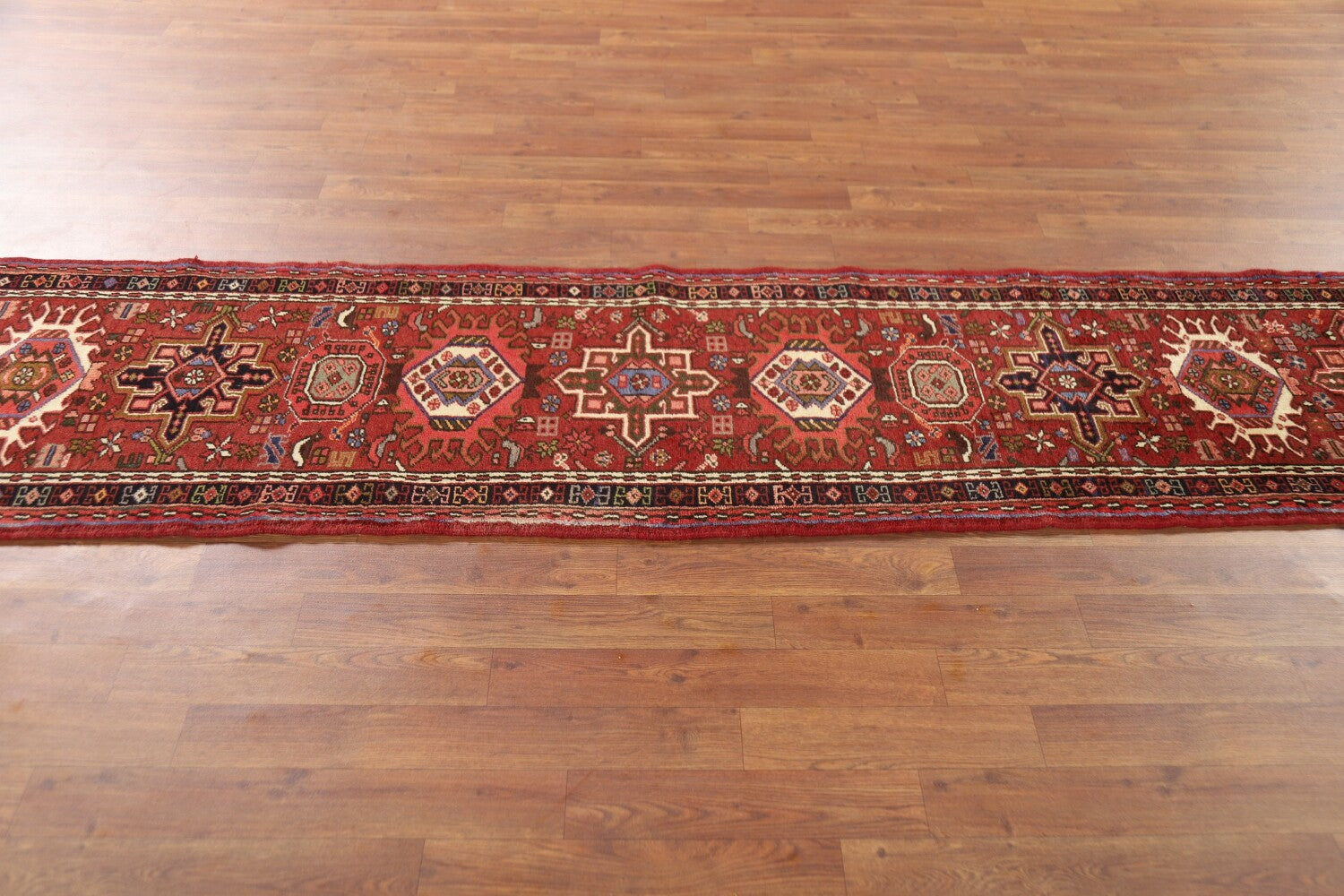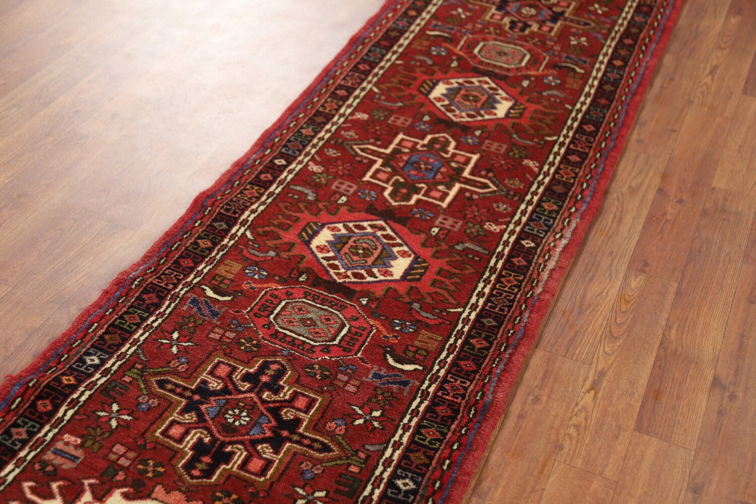 A Beautiful Genuine Persia ( Persia ) Gharajeh rug is Hand Knotted by skillful weavers in Persia ( Persia ) with 100% Wool Material. This rug is in New, First Quality condition. dimensions are 9' 3'' X 2' 0'' in foot and 282 X 61 in centimeter. the primary color is Red.