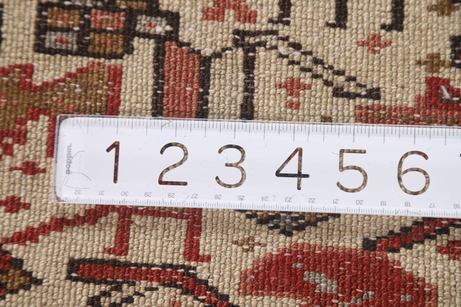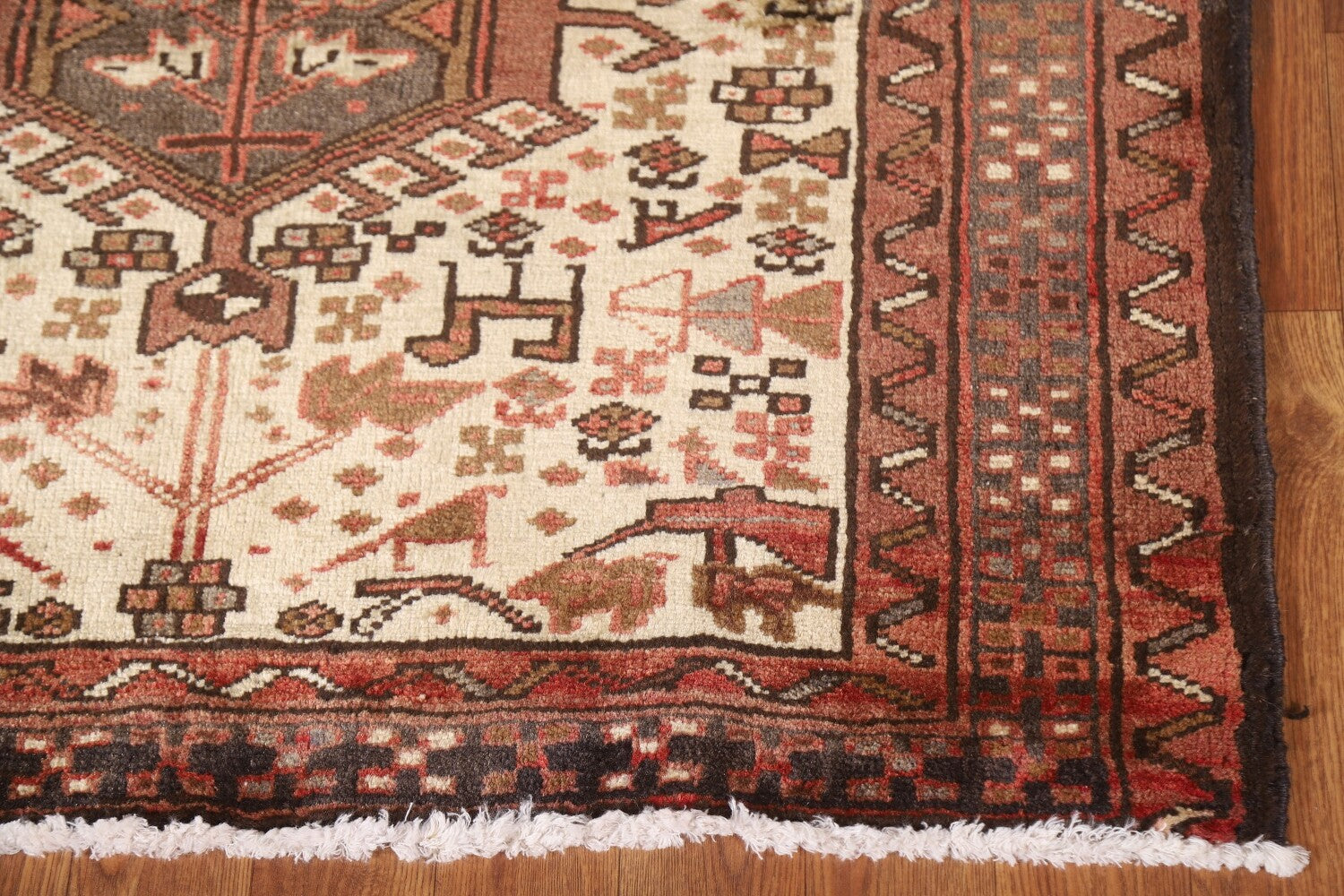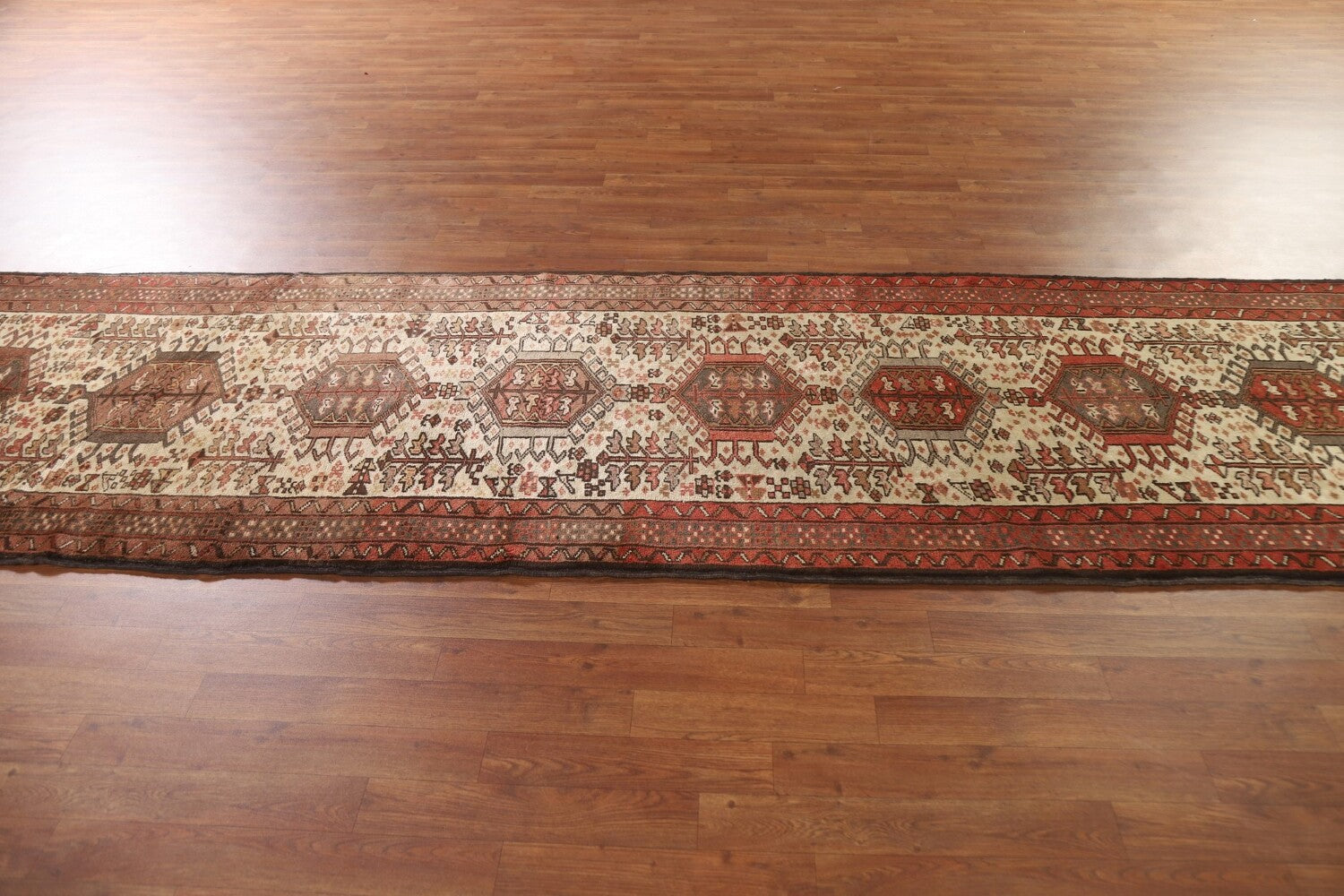 A Beautiful Genuine Persia ( Persia ) Gharajeh rug is Hand Knotted by skillful weavers in Persia ( Persia ) with 100% Wool Material. This rug is in Very Good condition. dimensions are 13' 2'' X 3' 4'' in foot and 401 X 102 in centimeter. the primary color is Beige & Ivories.