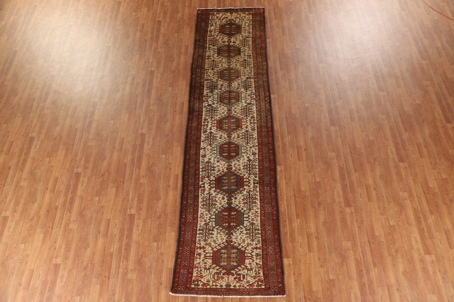 Tribal Geometric Gharajeh Persian Runner Rug 3x13