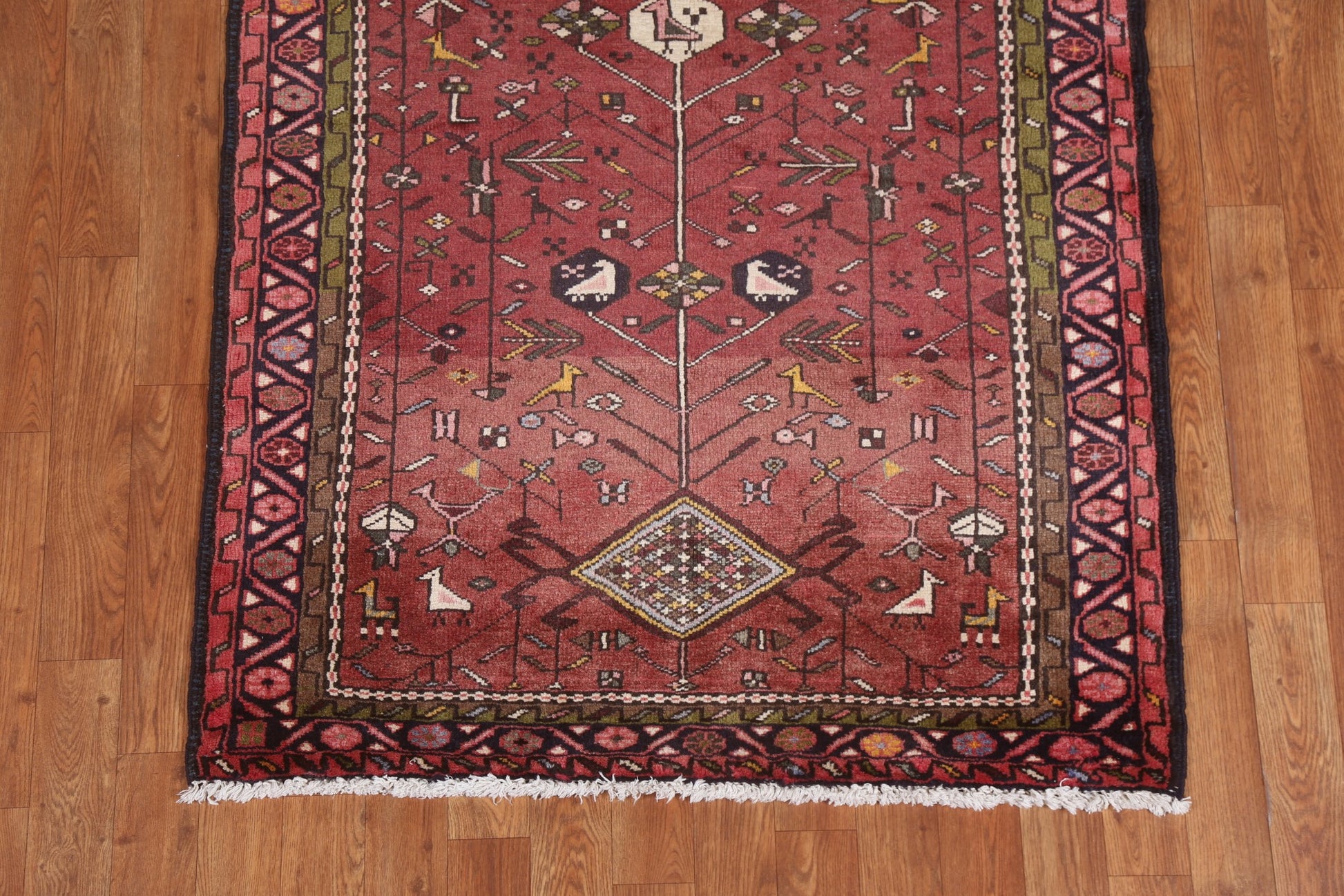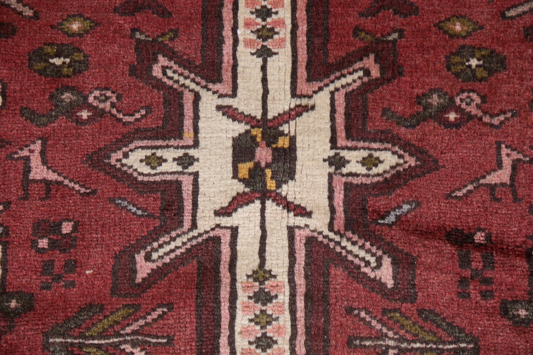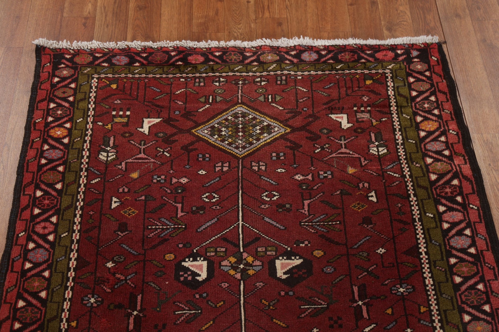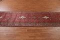 A Beautiful Genuine Persia ( Persia ) Gharajeh rug is Hand Knotted by skillful weavers in Persia ( Persia ) with 100% Wool Material. This rug is in Very Good (Abrash) condition. dimensions are 14' 7'' X 3' 5'' in foot and 445 X 104 in centimeter. the primary color is Red.