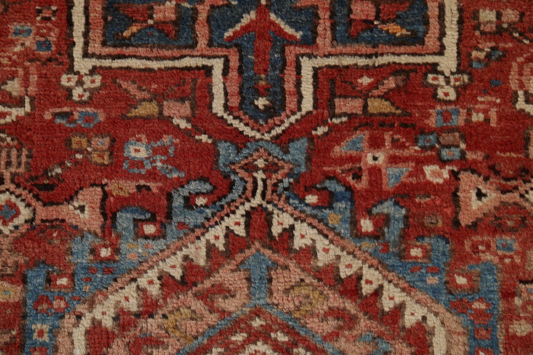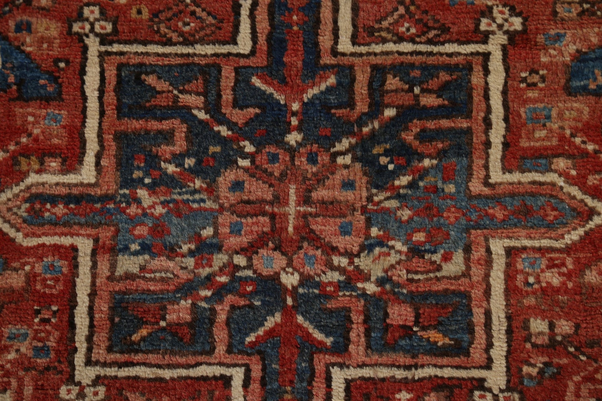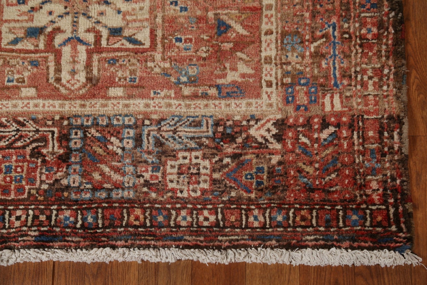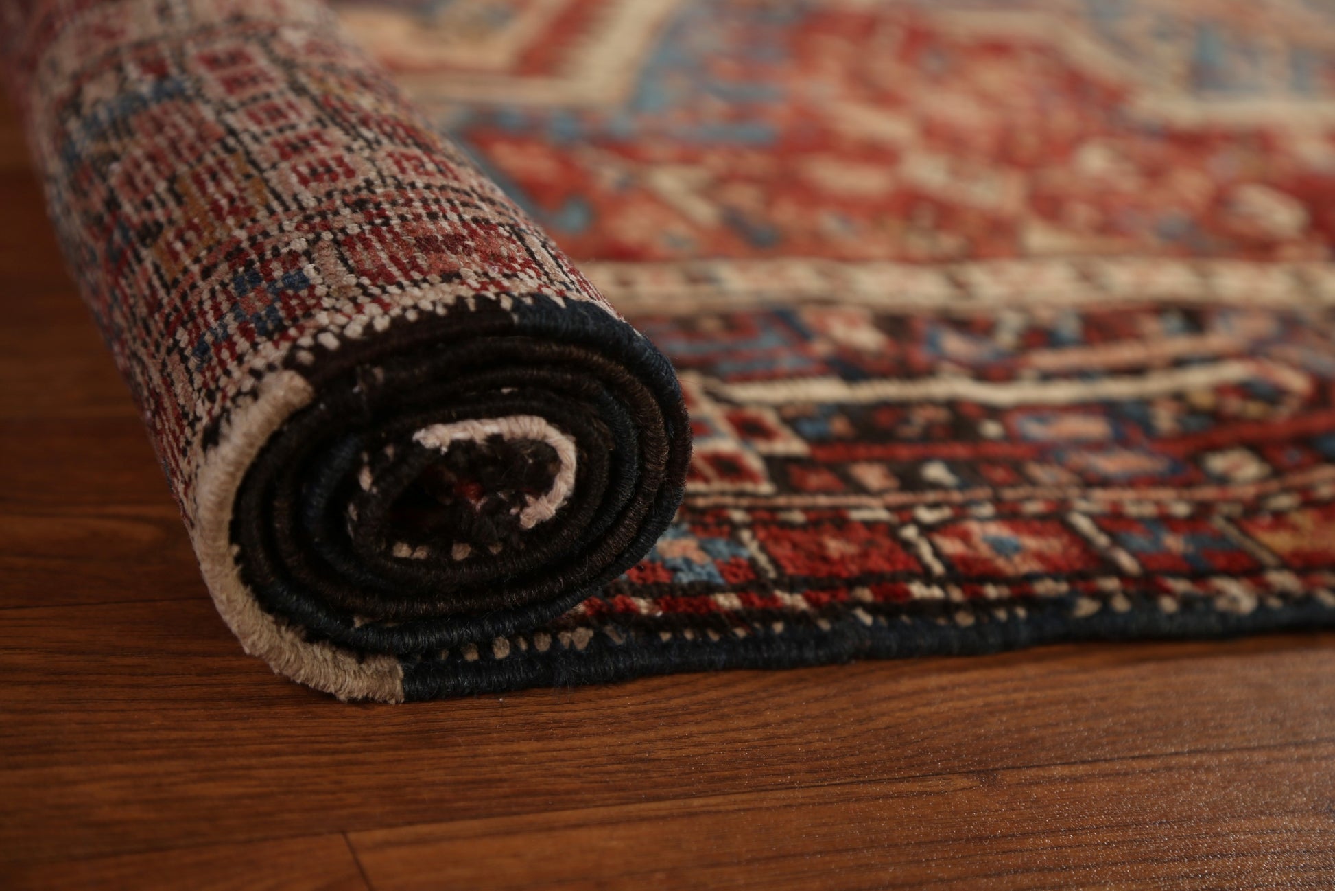 A Beautiful Genuine Persia ( Persia ) Gharajeh rug is Hand Knotted by skillful weavers in Persia ( Persia ) with 100% Wool Material. This rug is in Very Good (Faded Color) condition. dimensions are 13' 11'' X 3' 6'' in foot and 424 X 107 in centimeter. the primary color is Red.