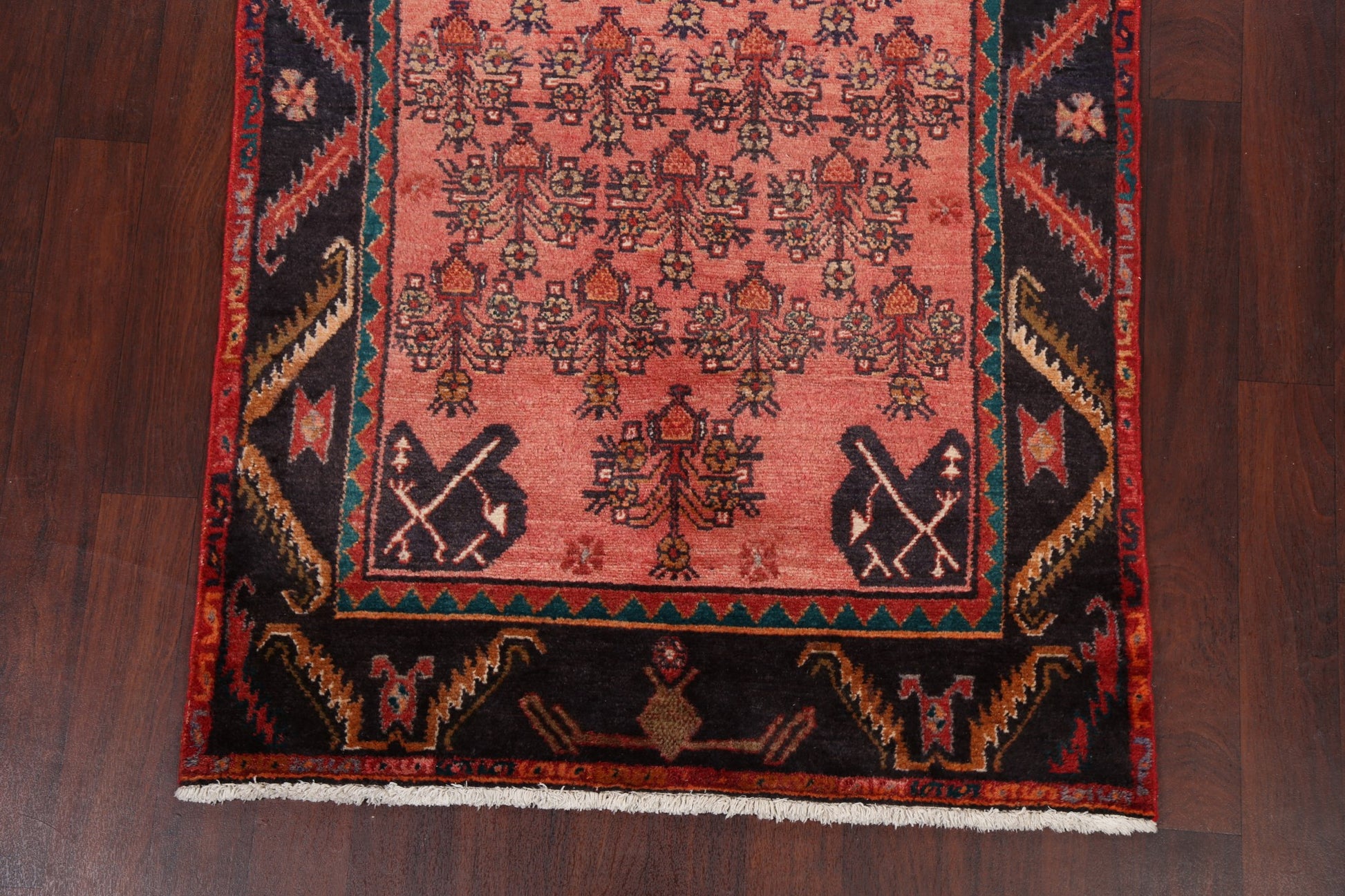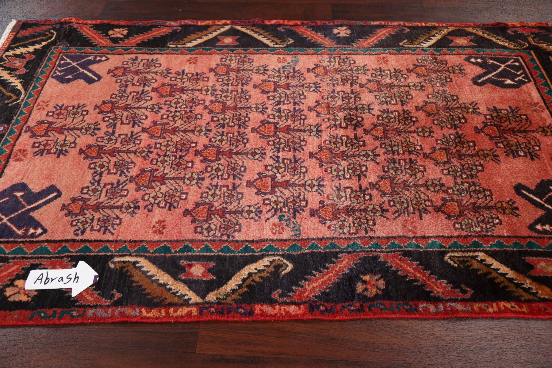 A Beautiful Genuine Persia ( Persia ) Hamedan rug is Hand Knotted by skillful weavers in Persia ( Persia ) with 100% Wool Material. This rug is in Very Good (Abrash) condition. dimensions are 7' 8'' X 4' 2'' in foot and 234 X 127 in centimeter. the primary color is Pink.