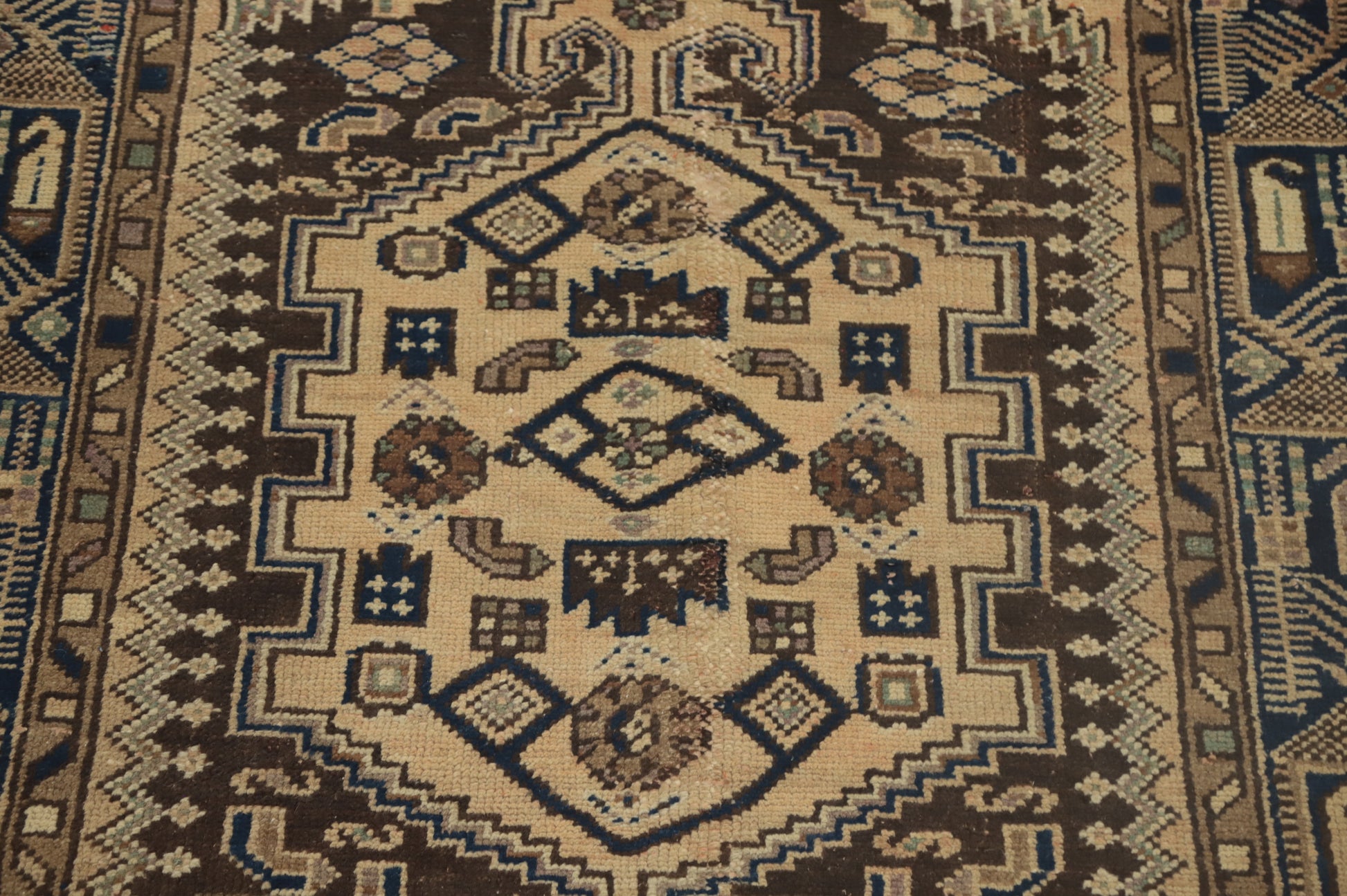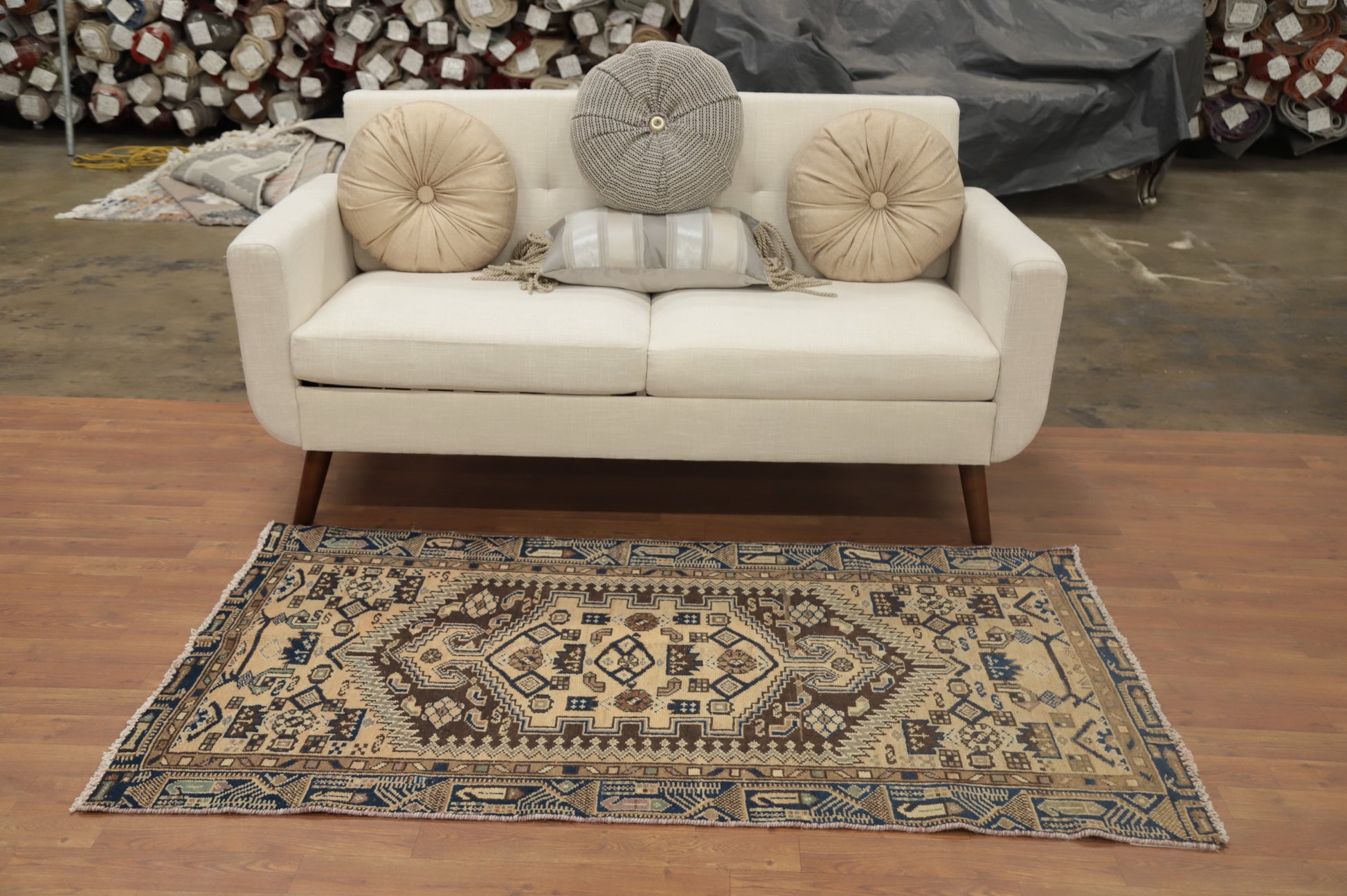 A Beautiful Genuine Persia ( Persia ) Hamedan rug is Hand Knotted by skillful weavers in Persia ( Persia ) with 100% Wool Material. This rug is in Very Good ( Low Pile ) condition. dimensions are 5' 6'' X 3' 2'' in foot and 168 X 97 in centimeter. the primary color is Beige & Ivories.