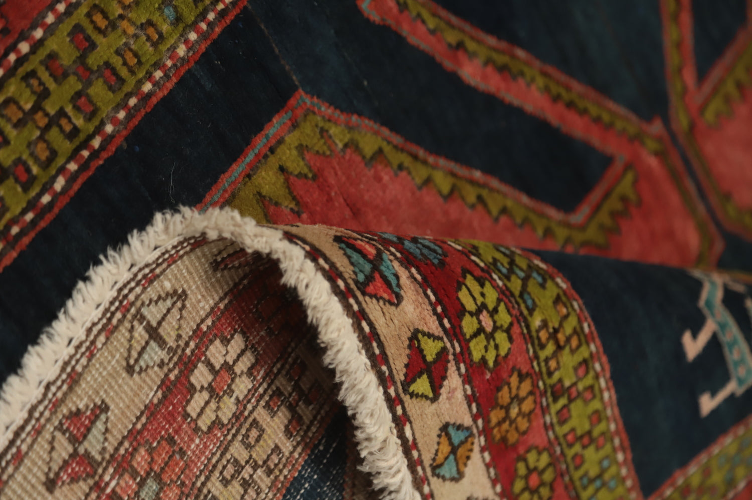 A Beautiful Genuine Persia ( Persia ) Meshkin rug is Hand Knotted by skillful weavers in Persia ( Persia ) with 100% Wool Material. This rug is in Very Good (Abrash) condition. dimensions are 11' 0'' X 4' 1'' in foot and 335 X 124 in centimeter. the primary color is Navy Blue & Blues.