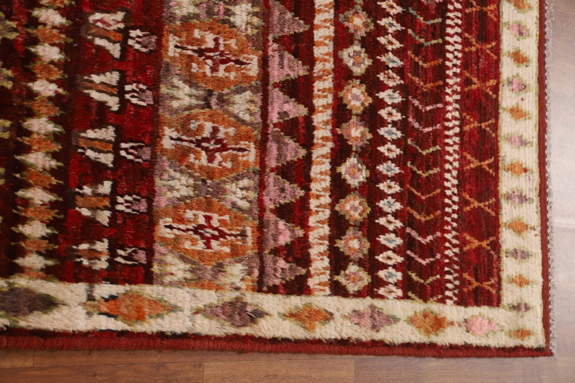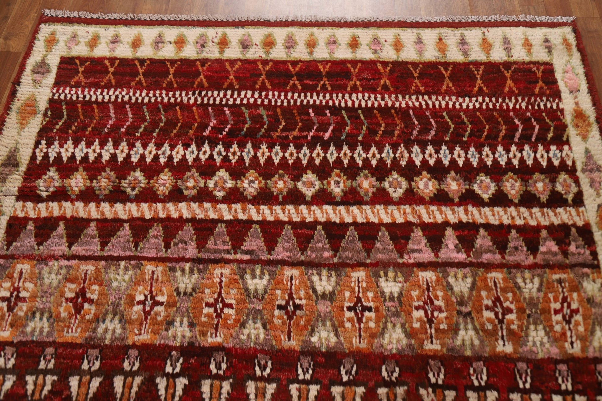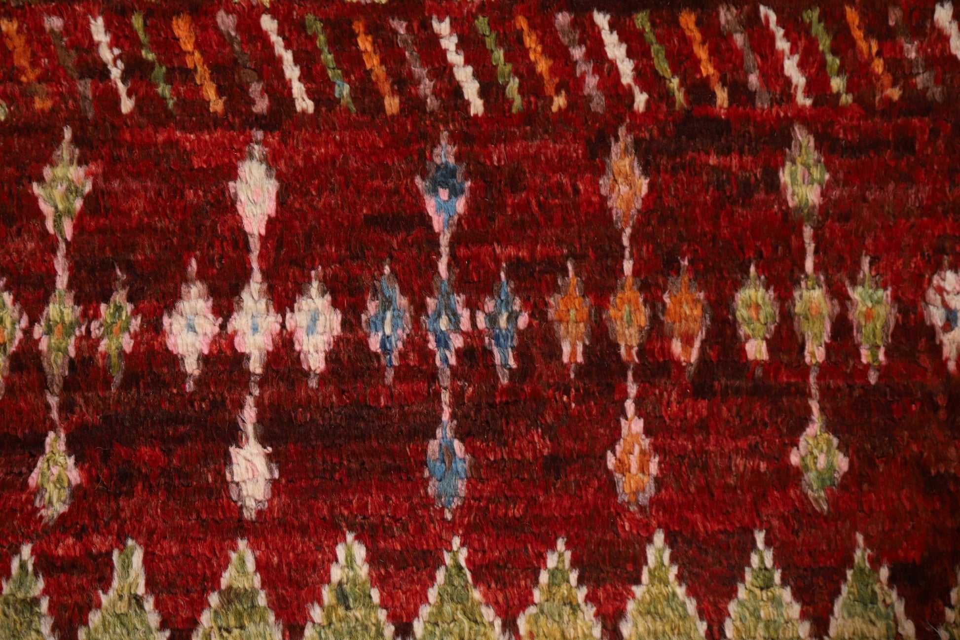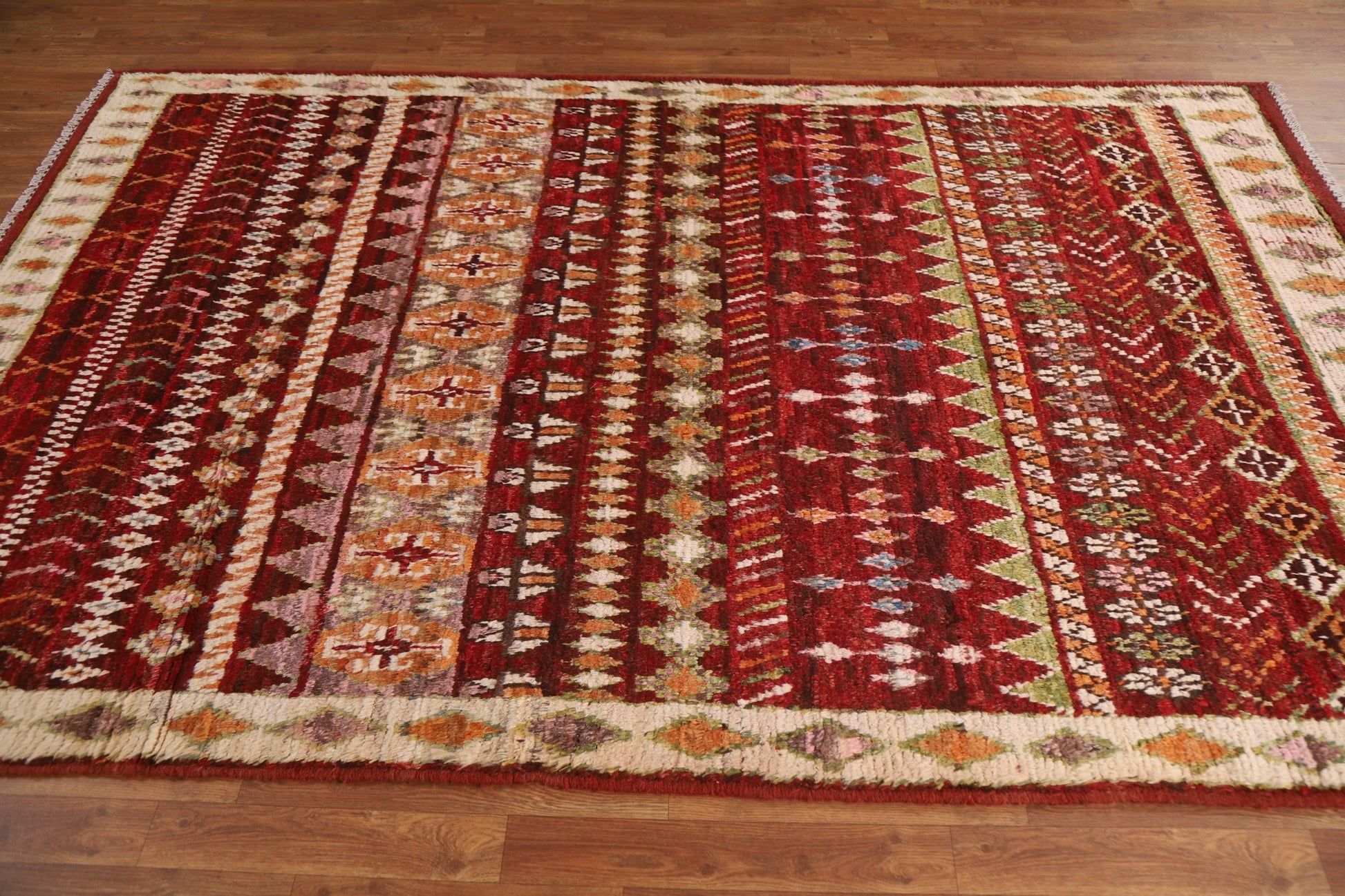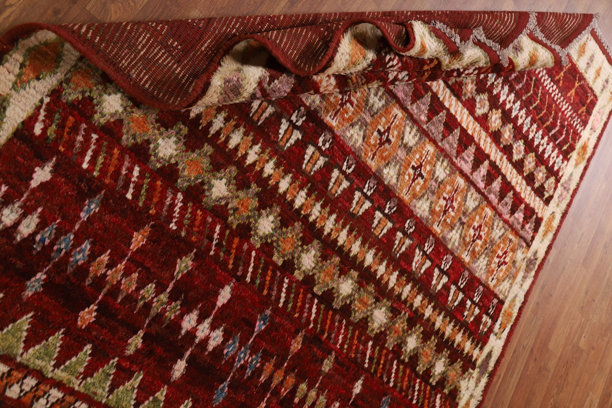 A Beautiful Genuine Pakistan Moroccan rug is Hand Knotted by skillful weavers in Pakistan with 100% Wool Material. This rug is in condition. dimensions are 8' 11'' X 5' 6'' in foot and 272 X 168 in centimeter. the primary color is Red.