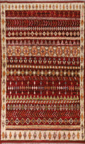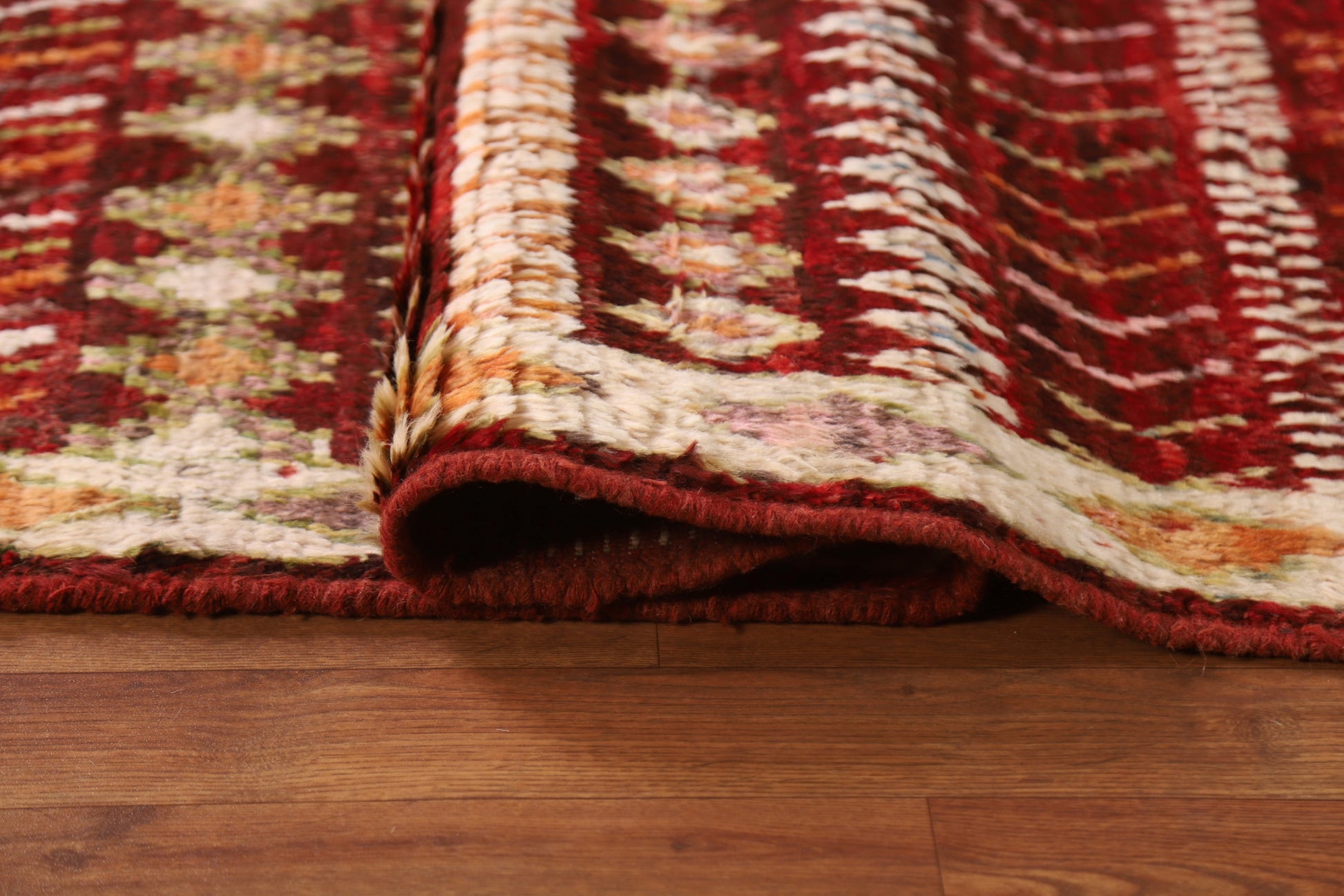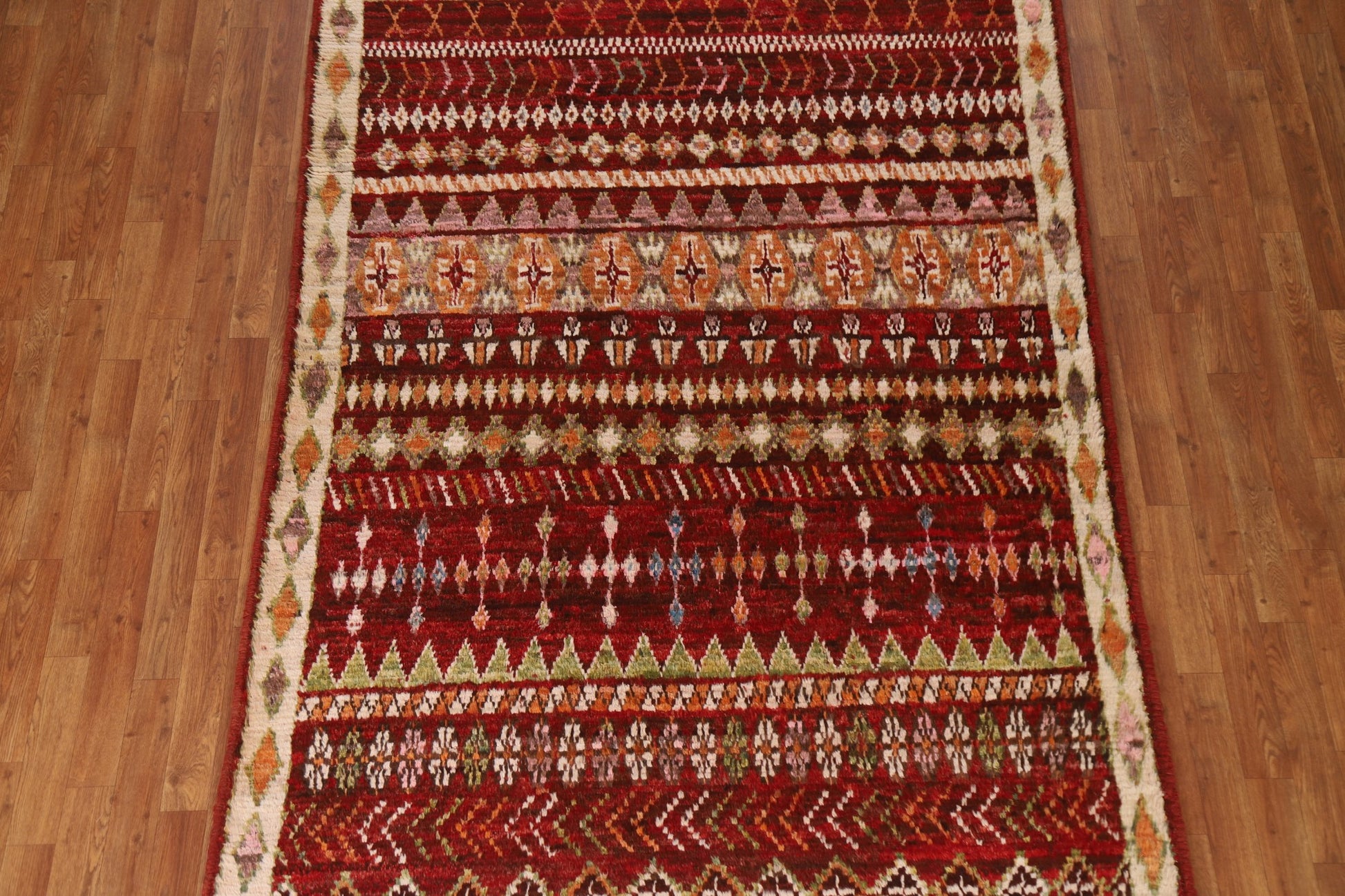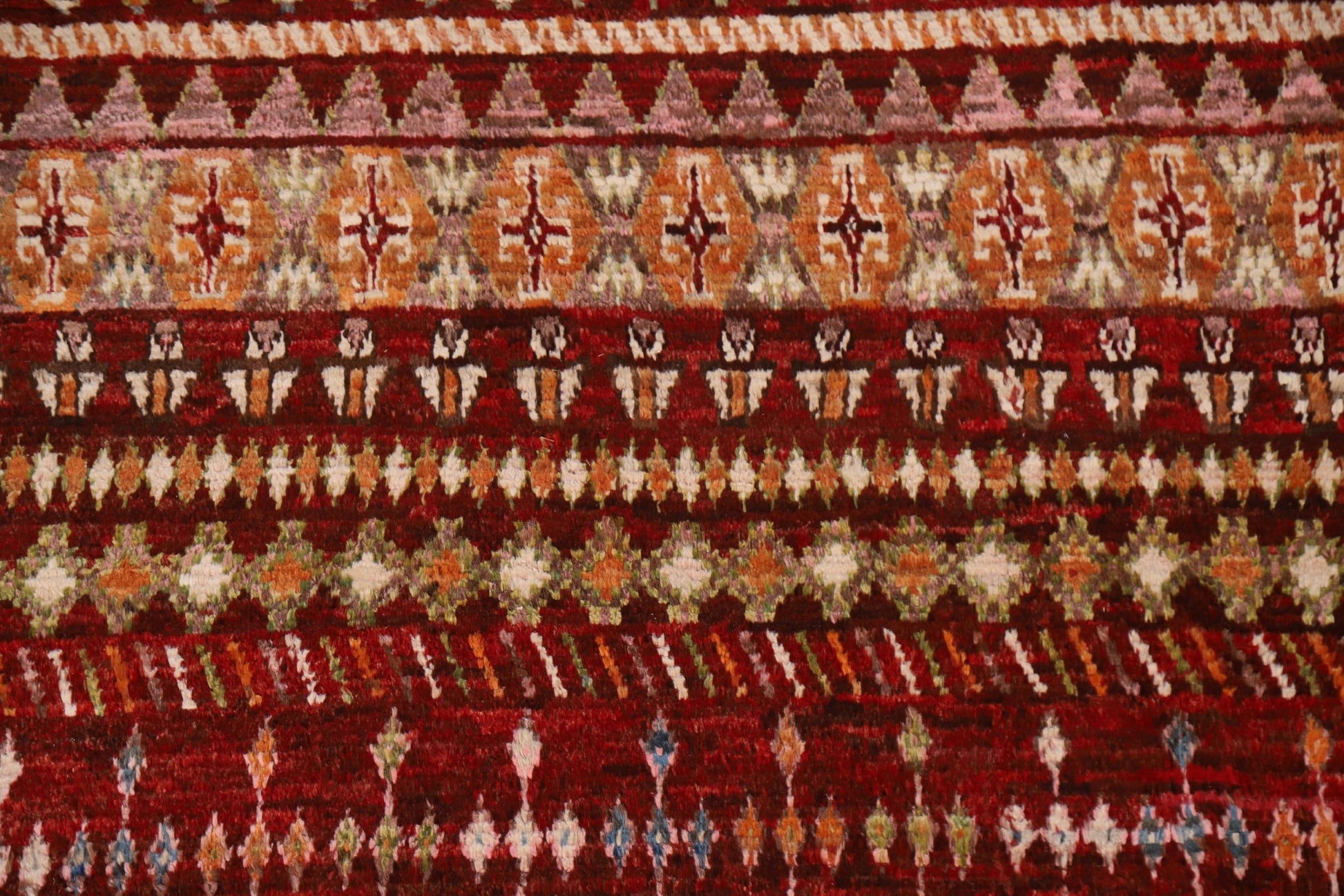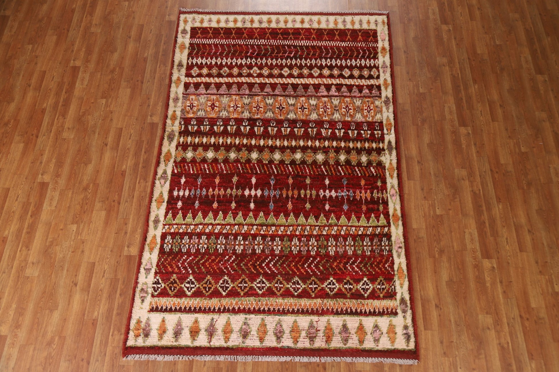 A Beautiful Genuine Pakistan Moroccan rug is Hand Knotted by skillful weavers in Pakistan with 100% Wool Material. This rug is in condition. dimensions are 8' 11'' X 5' 6'' in foot and 272 X 168 in centimeter. the primary color is Red.