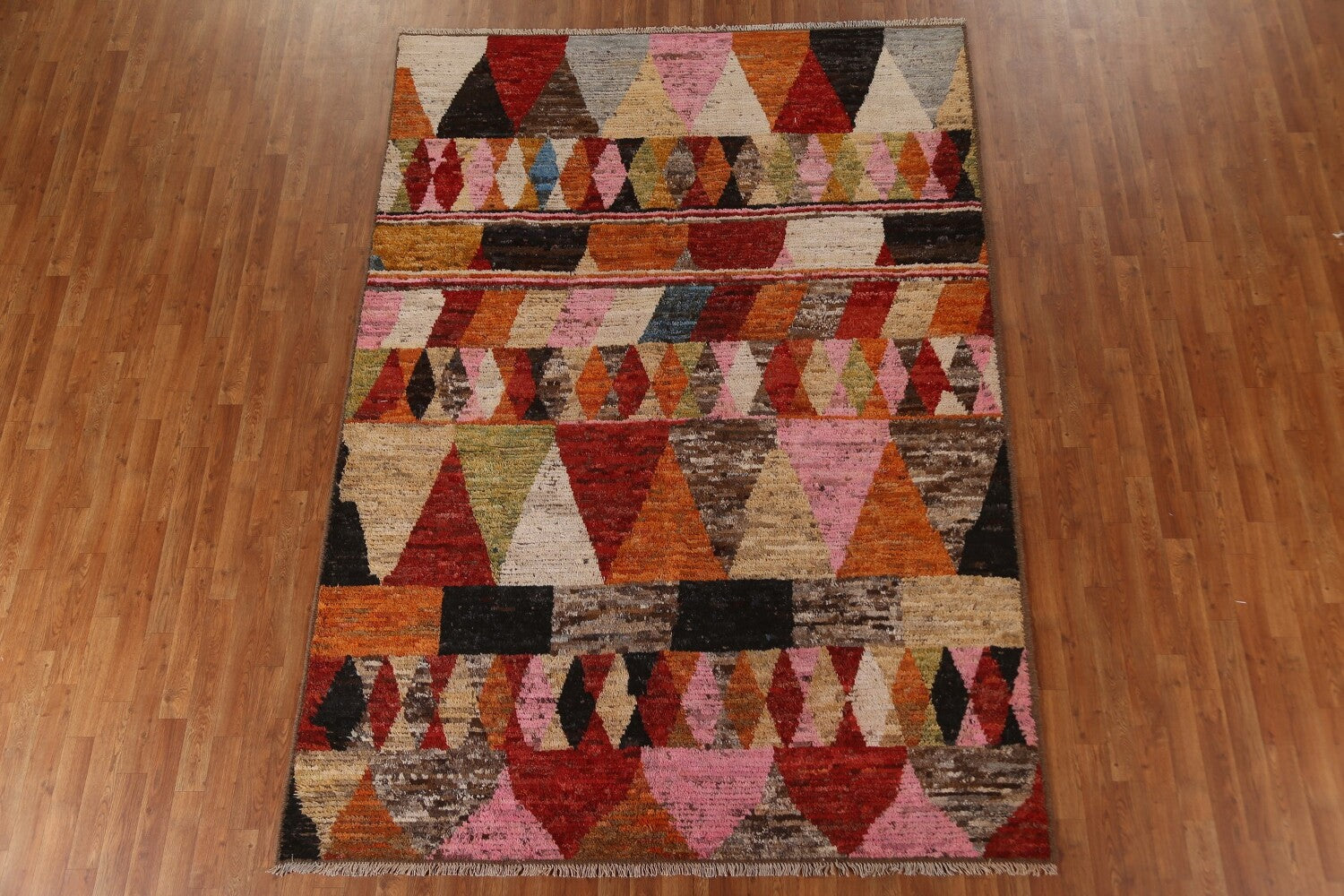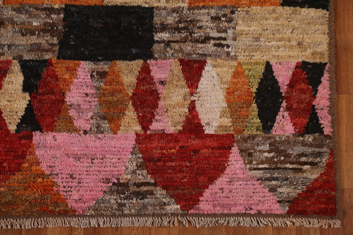 A Beautiful Genuine Pakistan Moroccan rug is Hand Knotted by skillful weavers in Pakistan with 100% Wool Material. This rug is in condition. dimensions are 9' 7'' X 6' 10'' in foot and 292 X 208 in centimeter. the primary color is Multi-Colored.