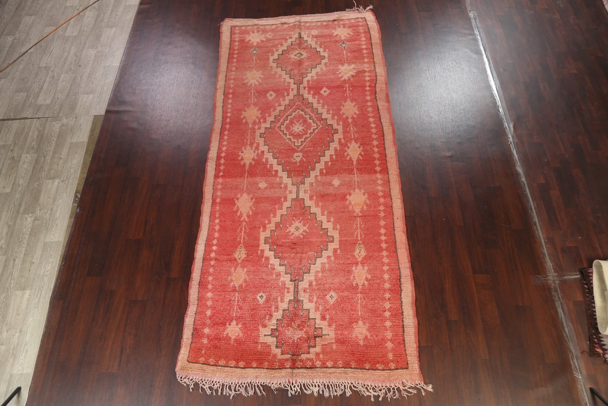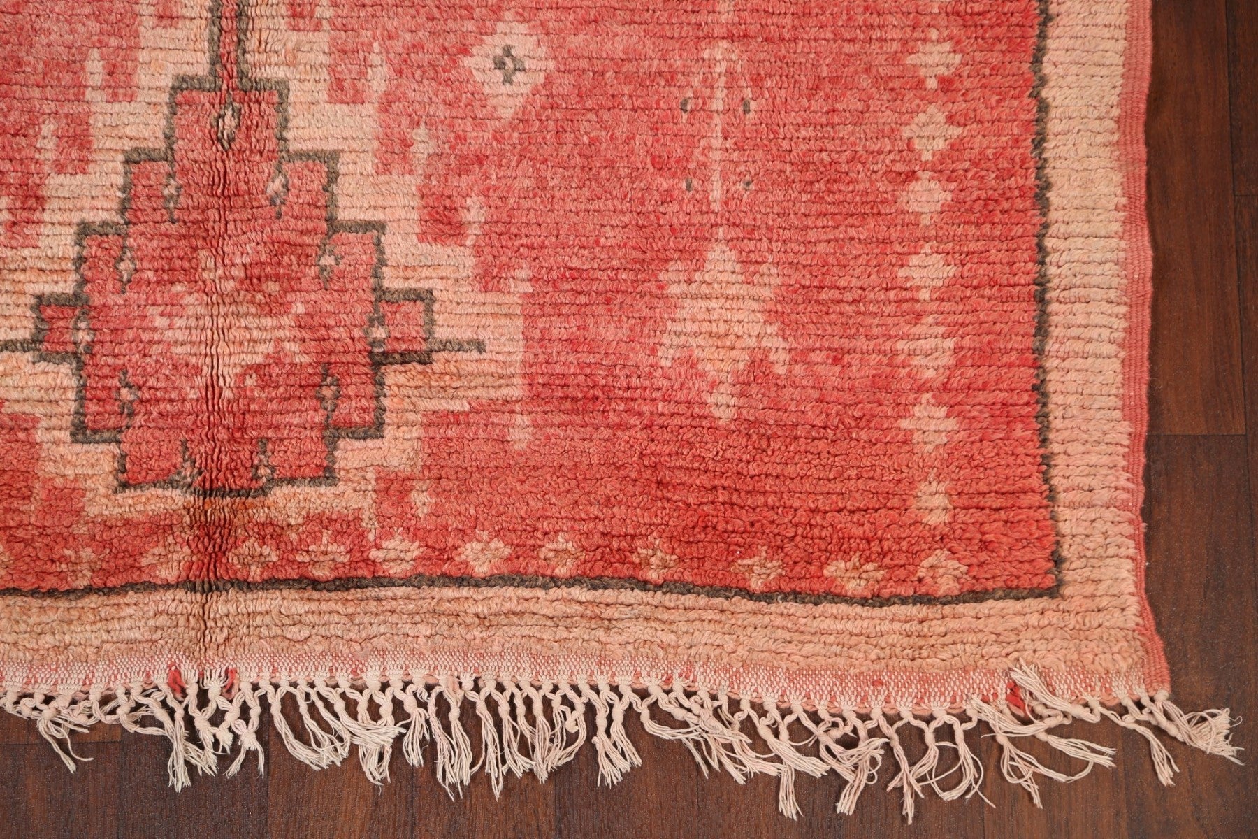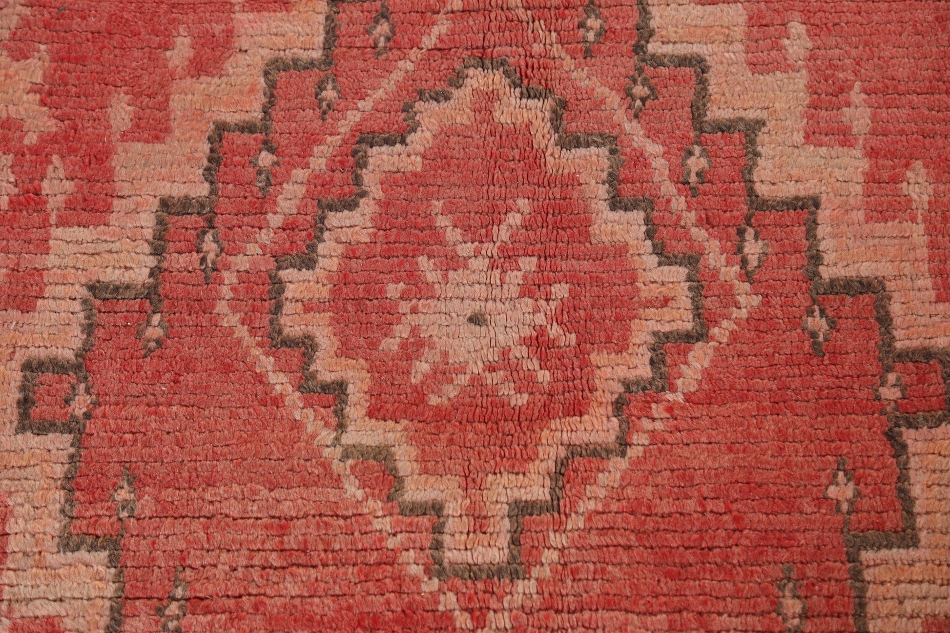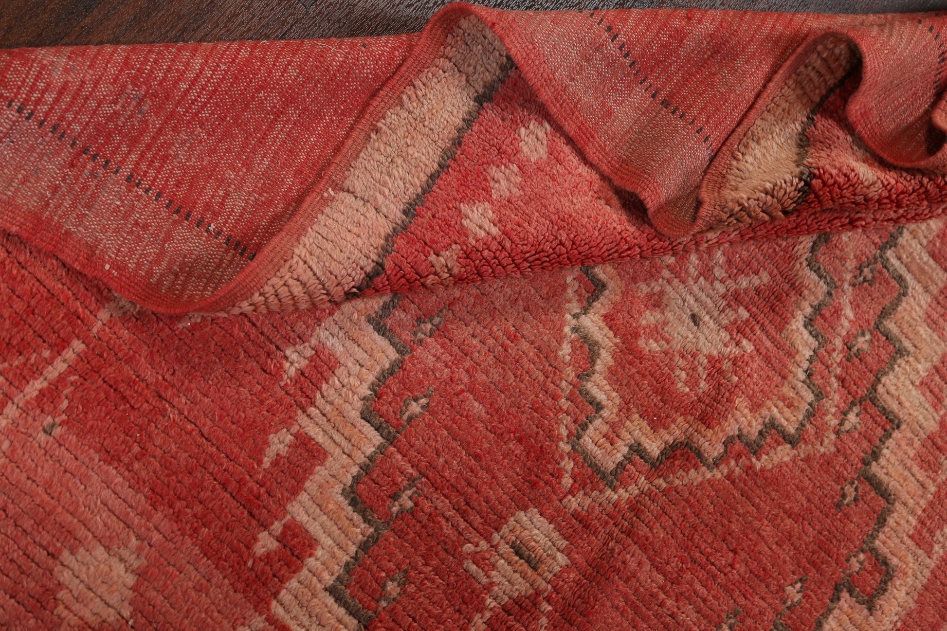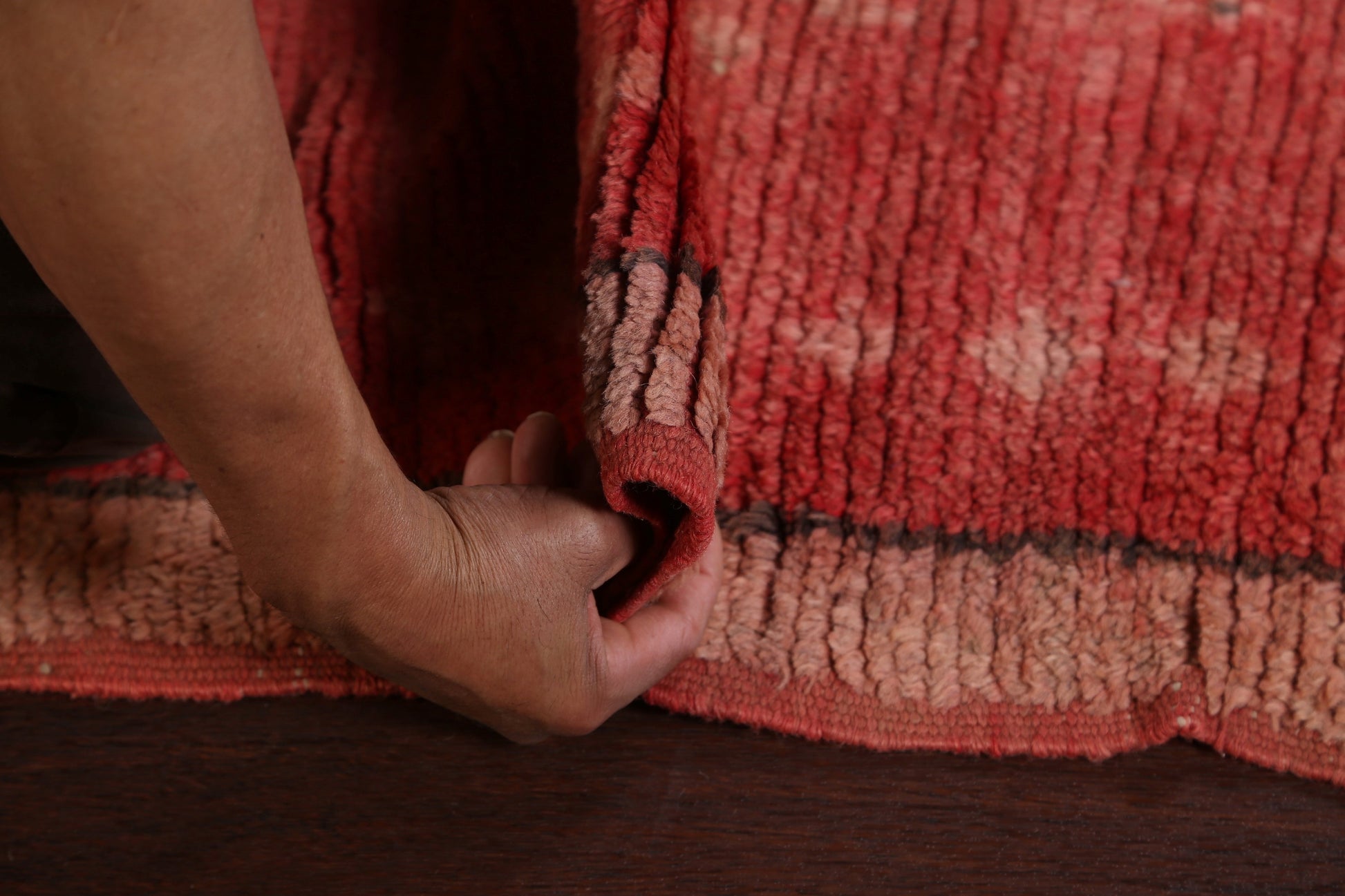 A Beautiful Genuine Morocco Moroccan rug is Hand Knotted by skillful weavers in Morocco with 100% Wool Material. This rug is in Very Good condition. dimensions are 12' 2'' X 5' 3'' in foot and 371 X 160 in centimeter. the primary color is Red.