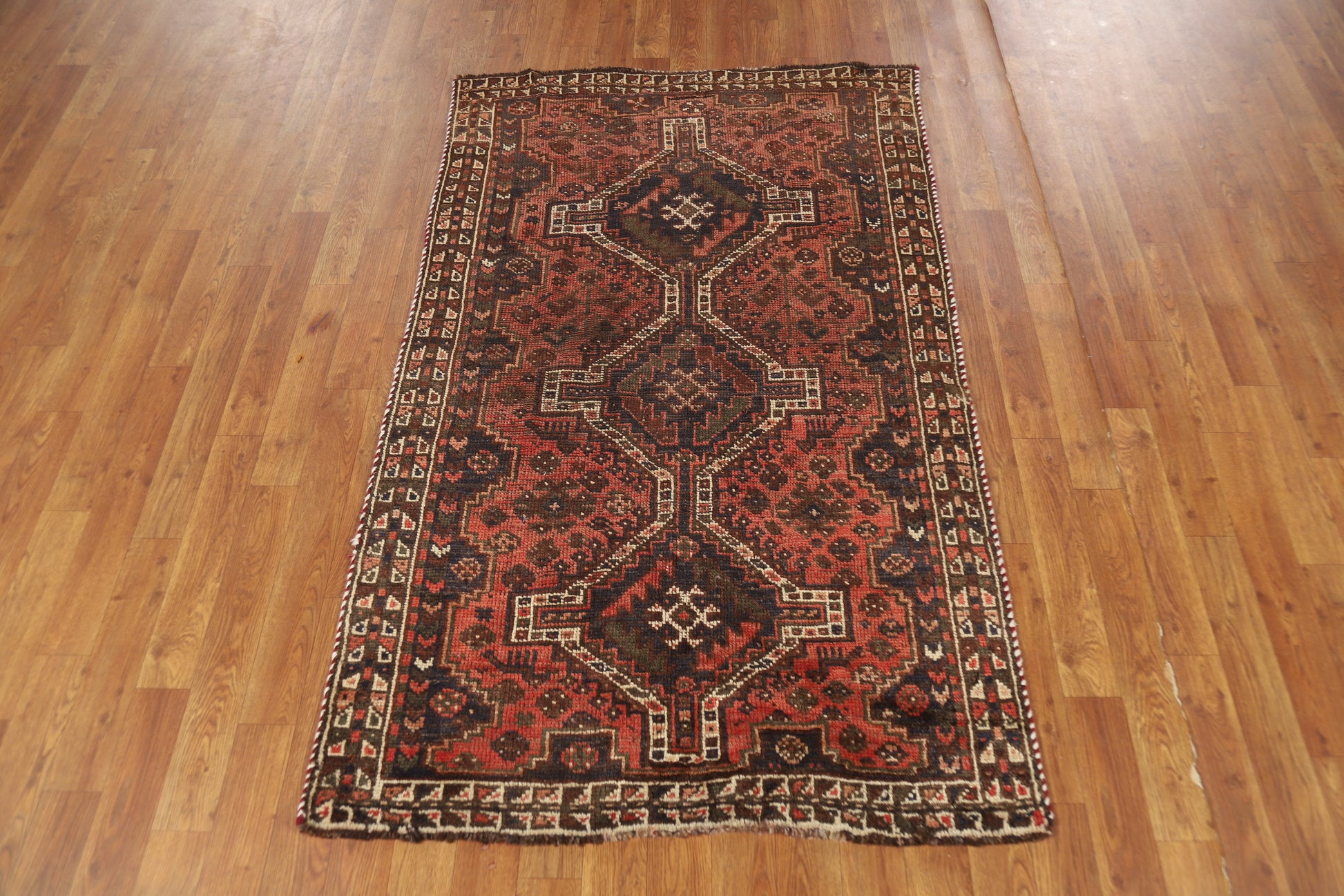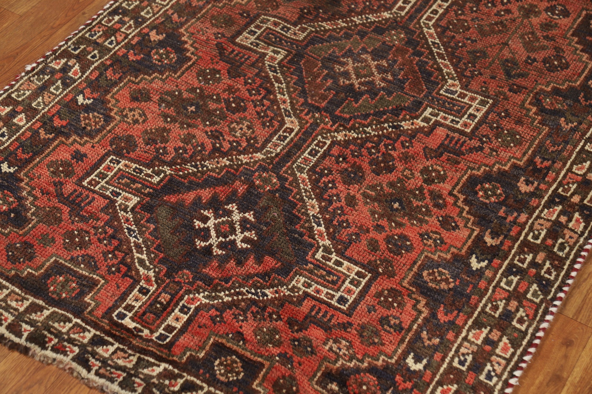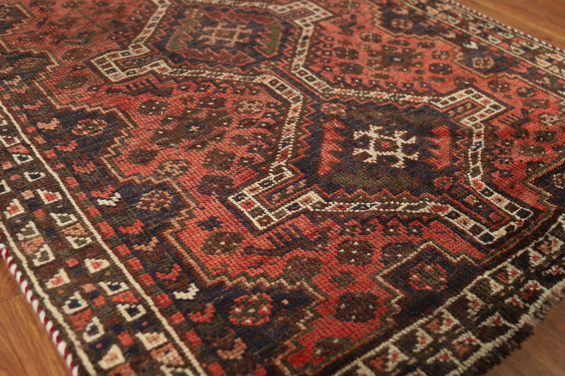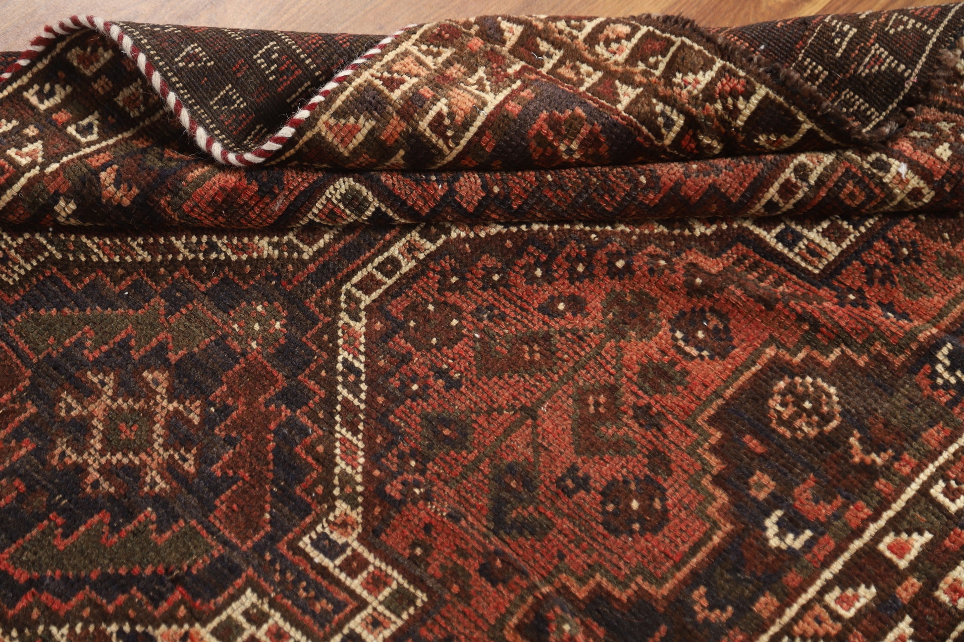 A Beautiful Genuine Persia ( Persia ) Qashqai rug is Hand Knotted by skillful weavers in Persia ( Persia ) with 100% Wool Material. This rug is in Very Good (Evenly Low Pile) condition. dimensions are 5' 5'' X 3' 3'' in foot and 165 X 99 in centimeter. the primary color is Oranges & Rust.