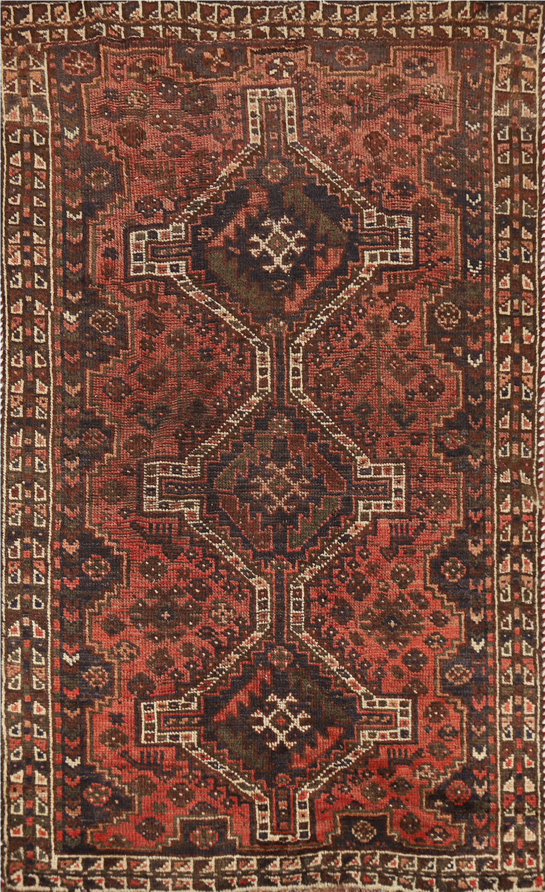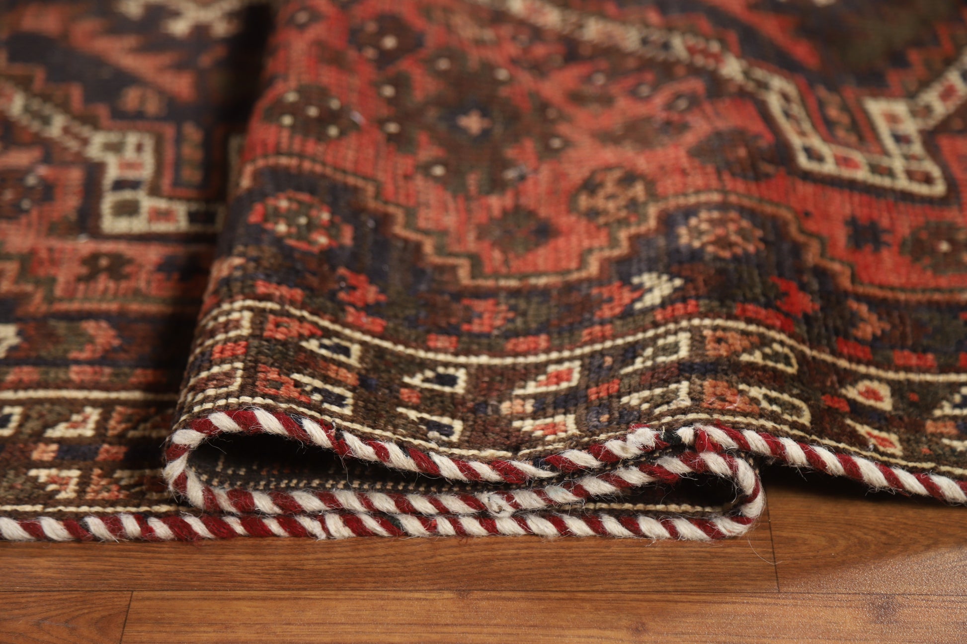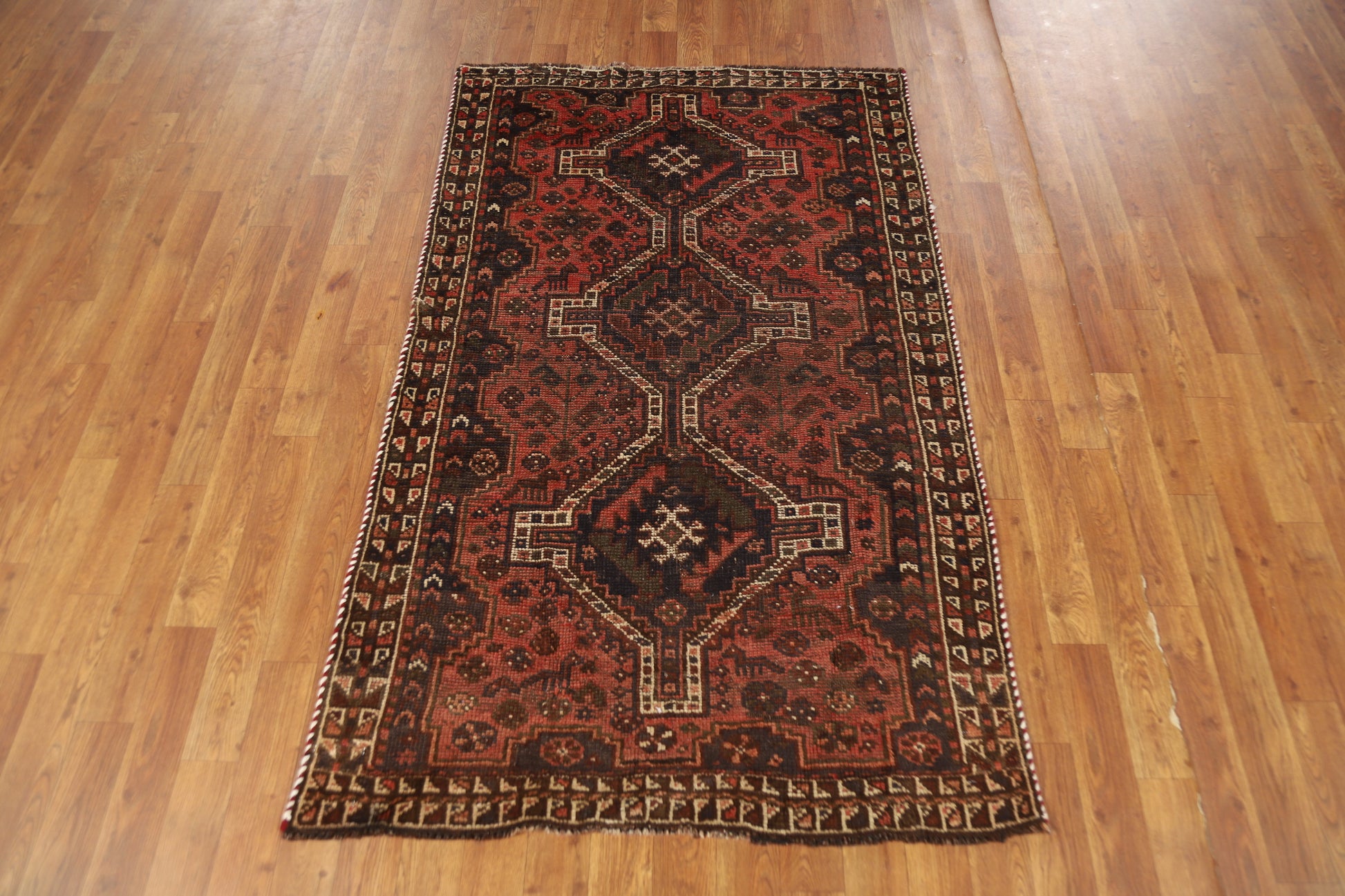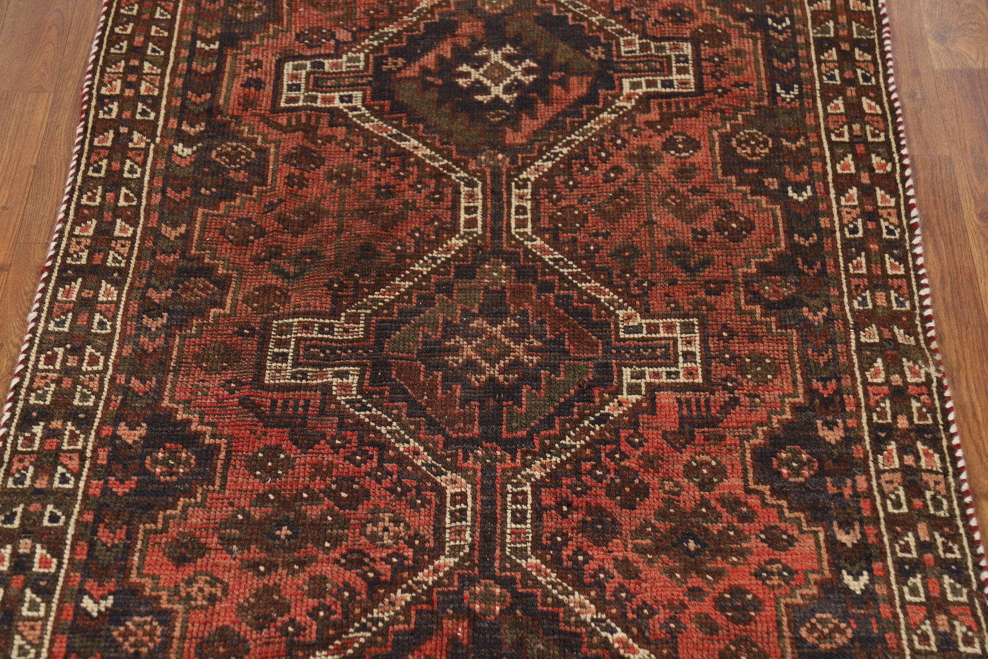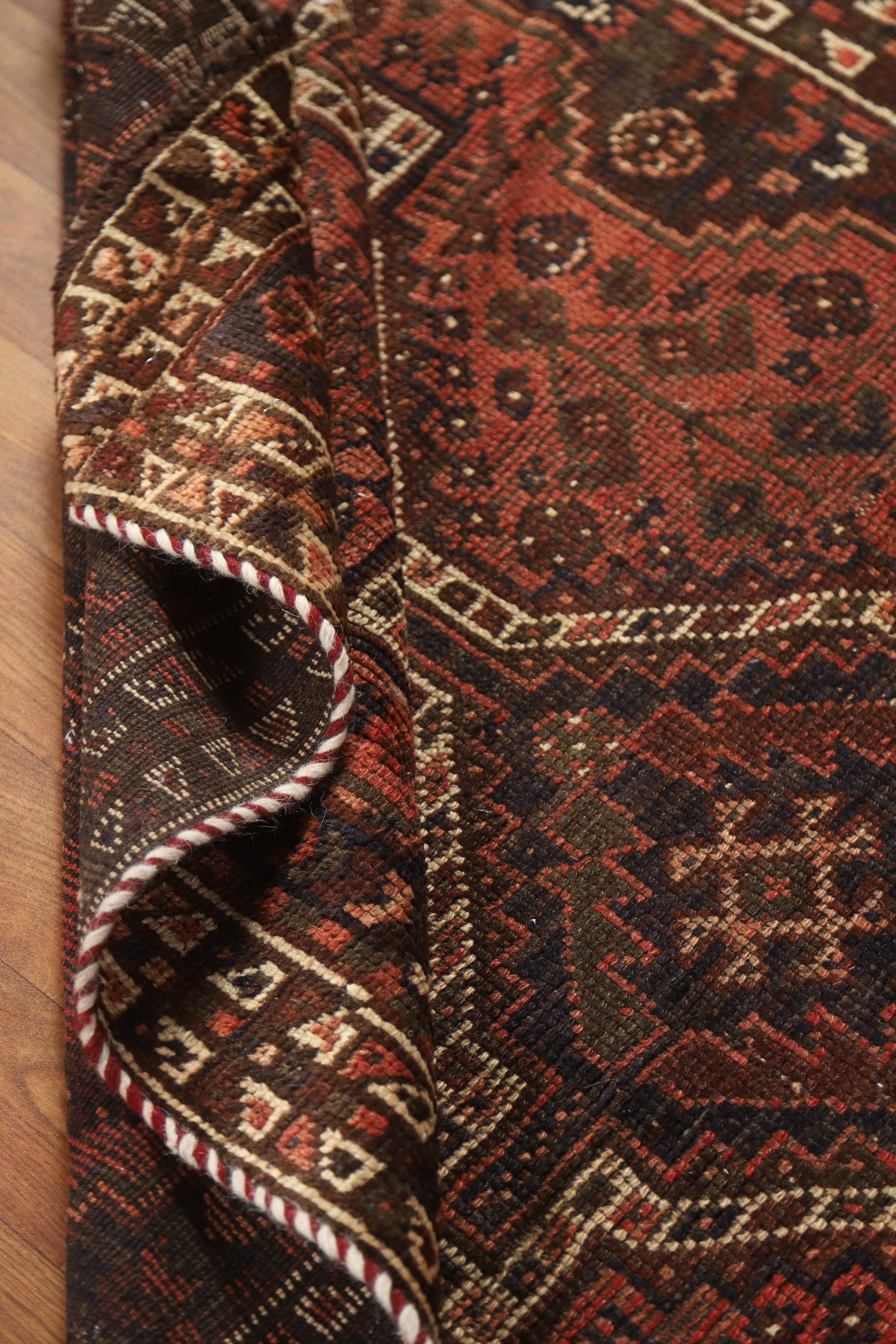 A Beautiful Genuine Persia ( Persia ) Qashqai rug is Hand Knotted by skillful weavers in Persia ( Persia ) with 100% Wool Material. This rug is in Very Good (Evenly Low Pile) condition. dimensions are 5' 5'' X 3' 3'' in foot and 165 X 99 in centimeter. the primary color is Oranges & Rust.