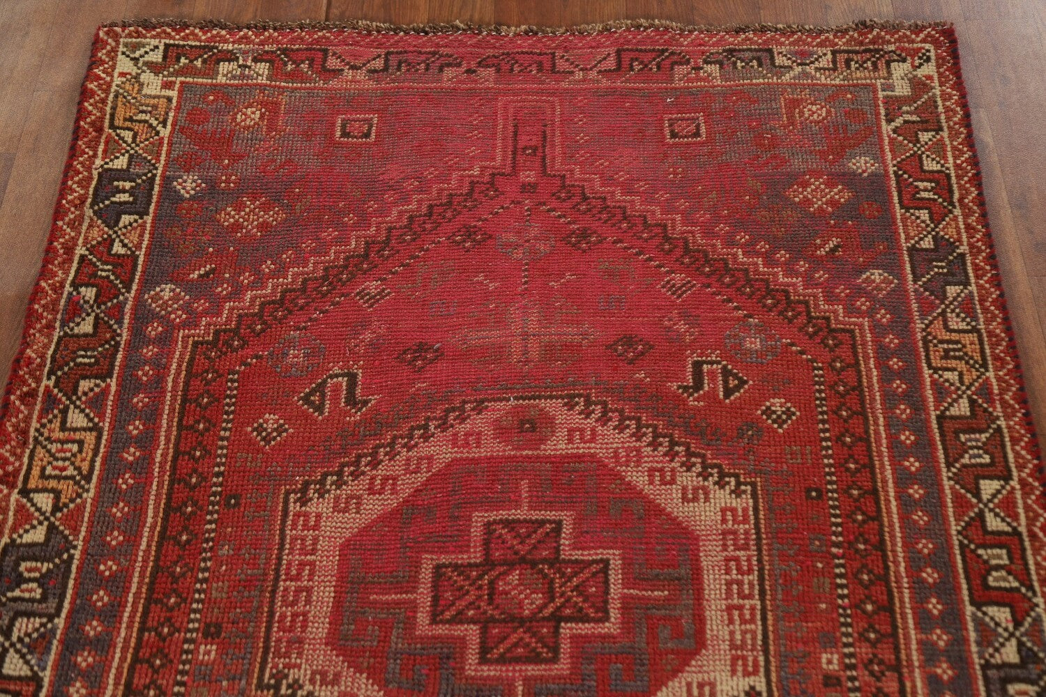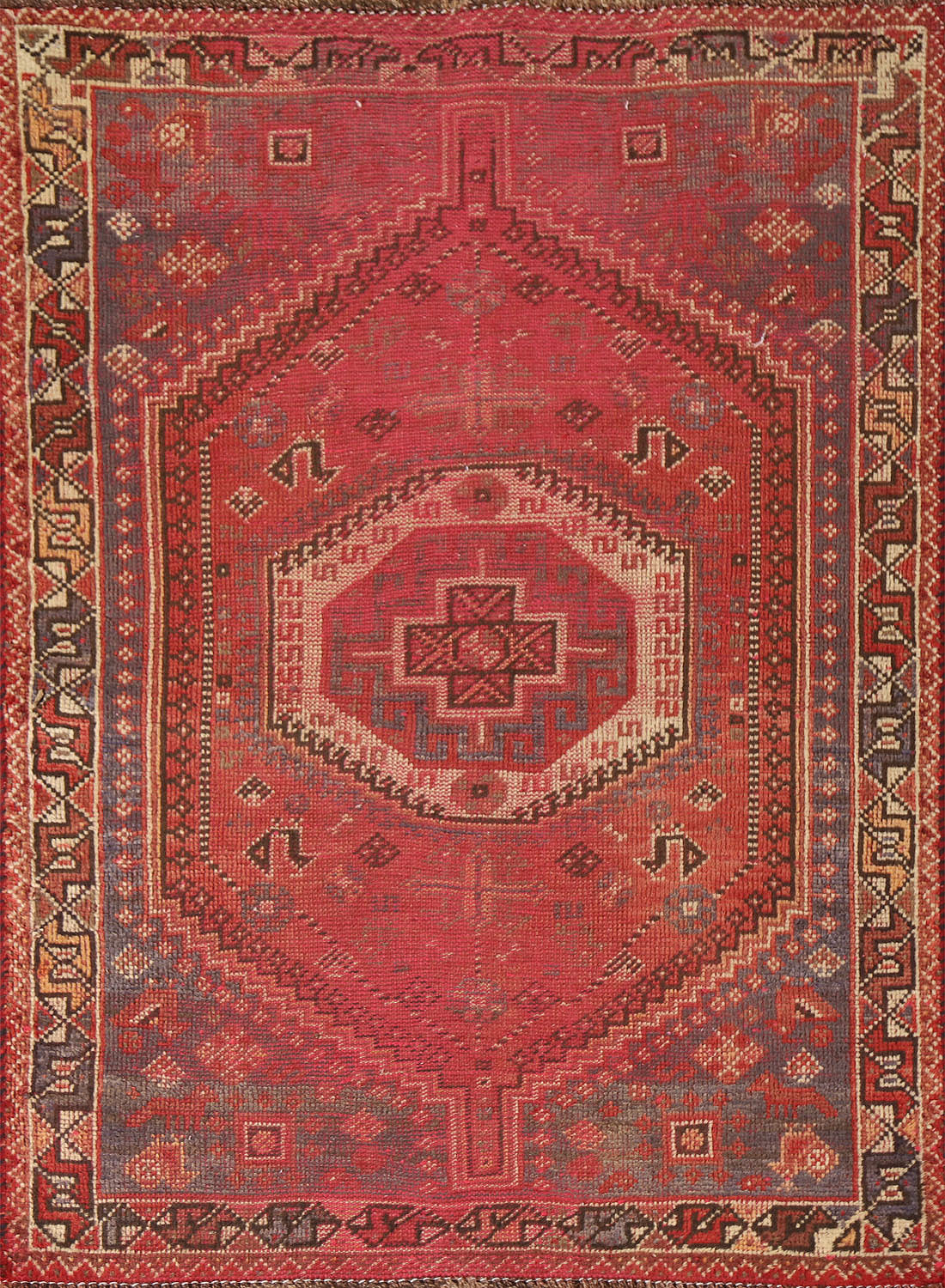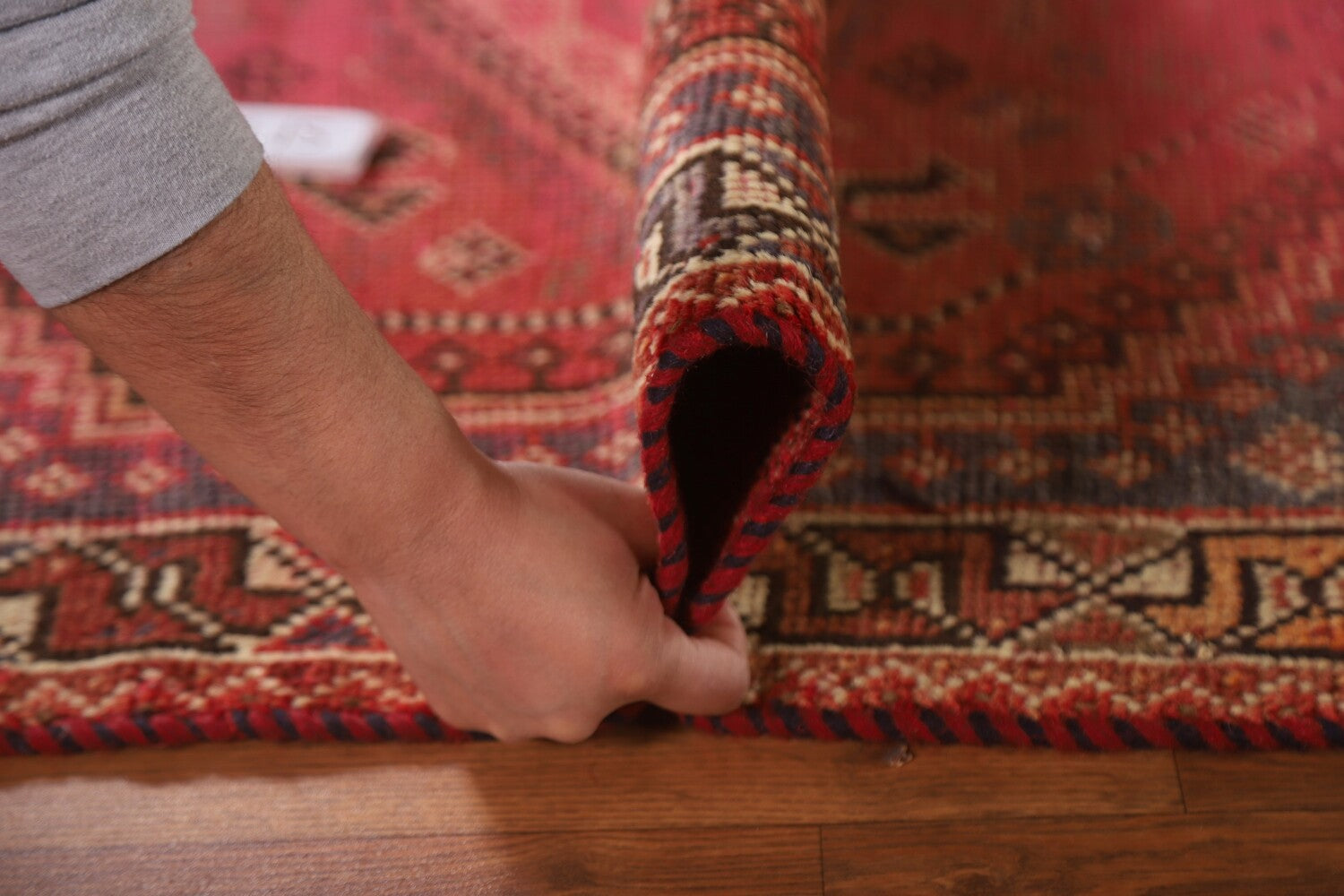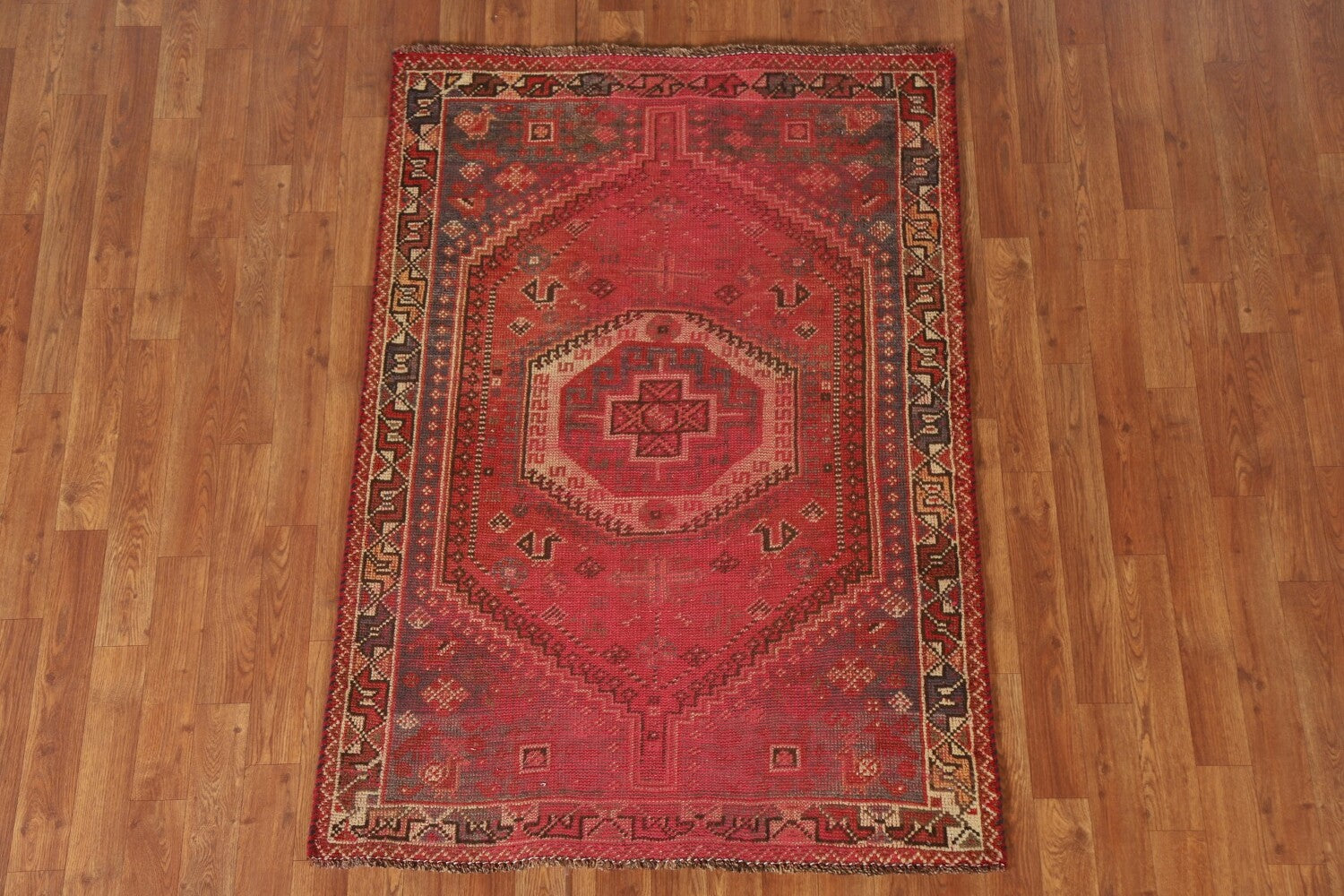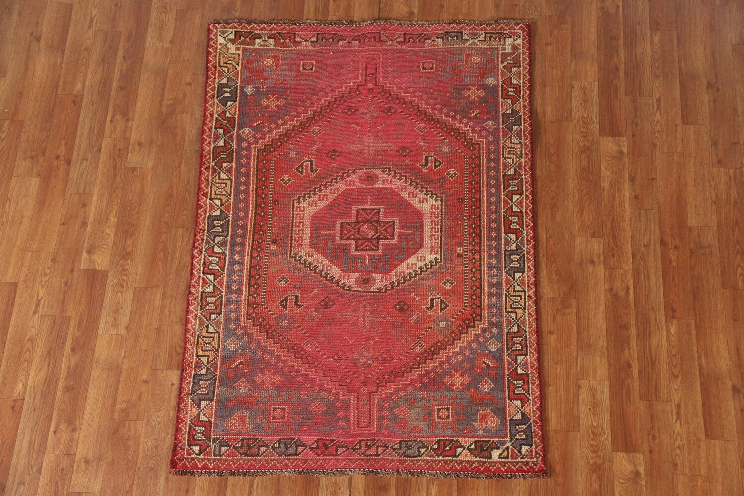 A Beautiful Genuine Persia ( Persia ) Qashqai rug is Hand Knotted by skillful weavers in Persia ( Persia ) with 100% Wool Material. This rug is in Very Good (Evenly Low Pile) condition. dimensions are 4' 10'' X 3' 4'' in foot and 147 X 102 in centimeter. the primary color is Pink.
