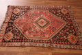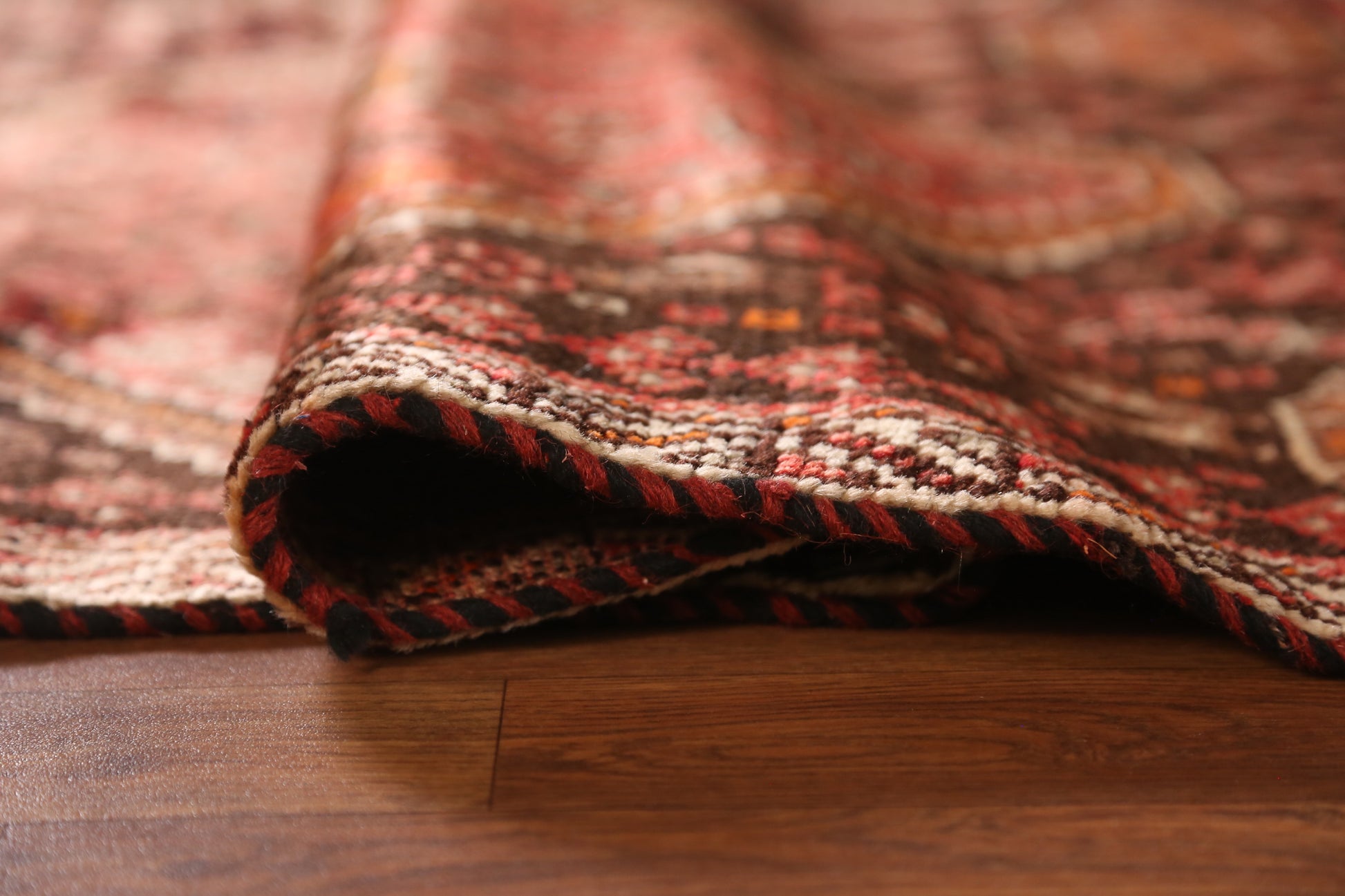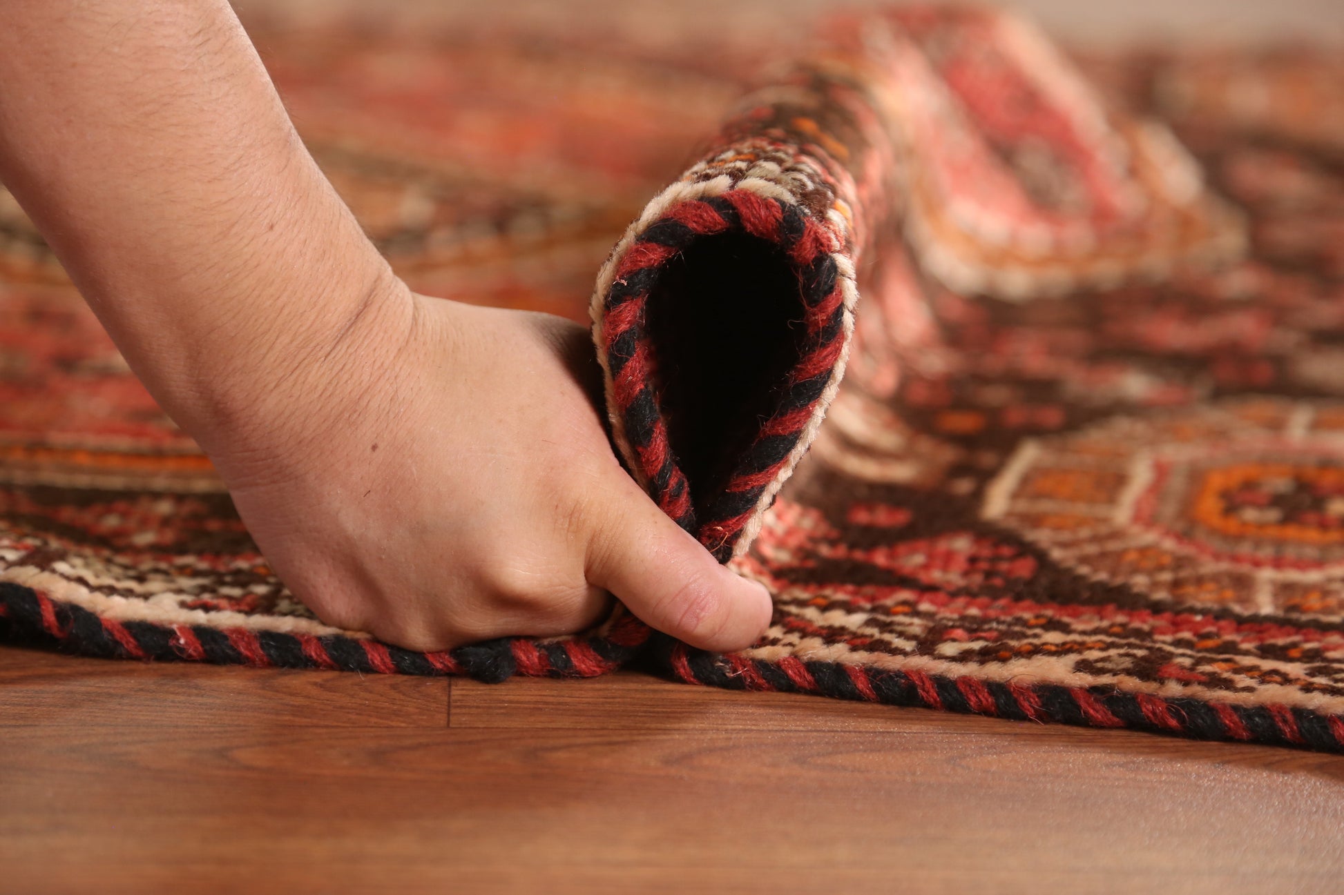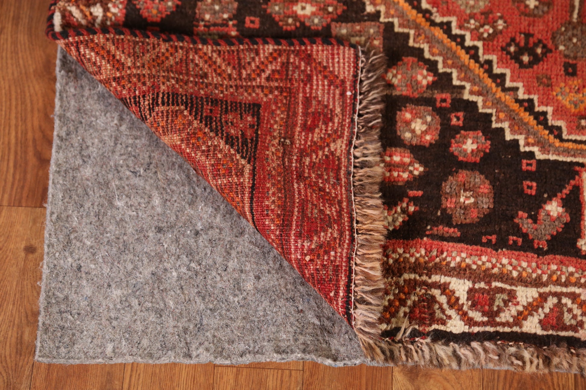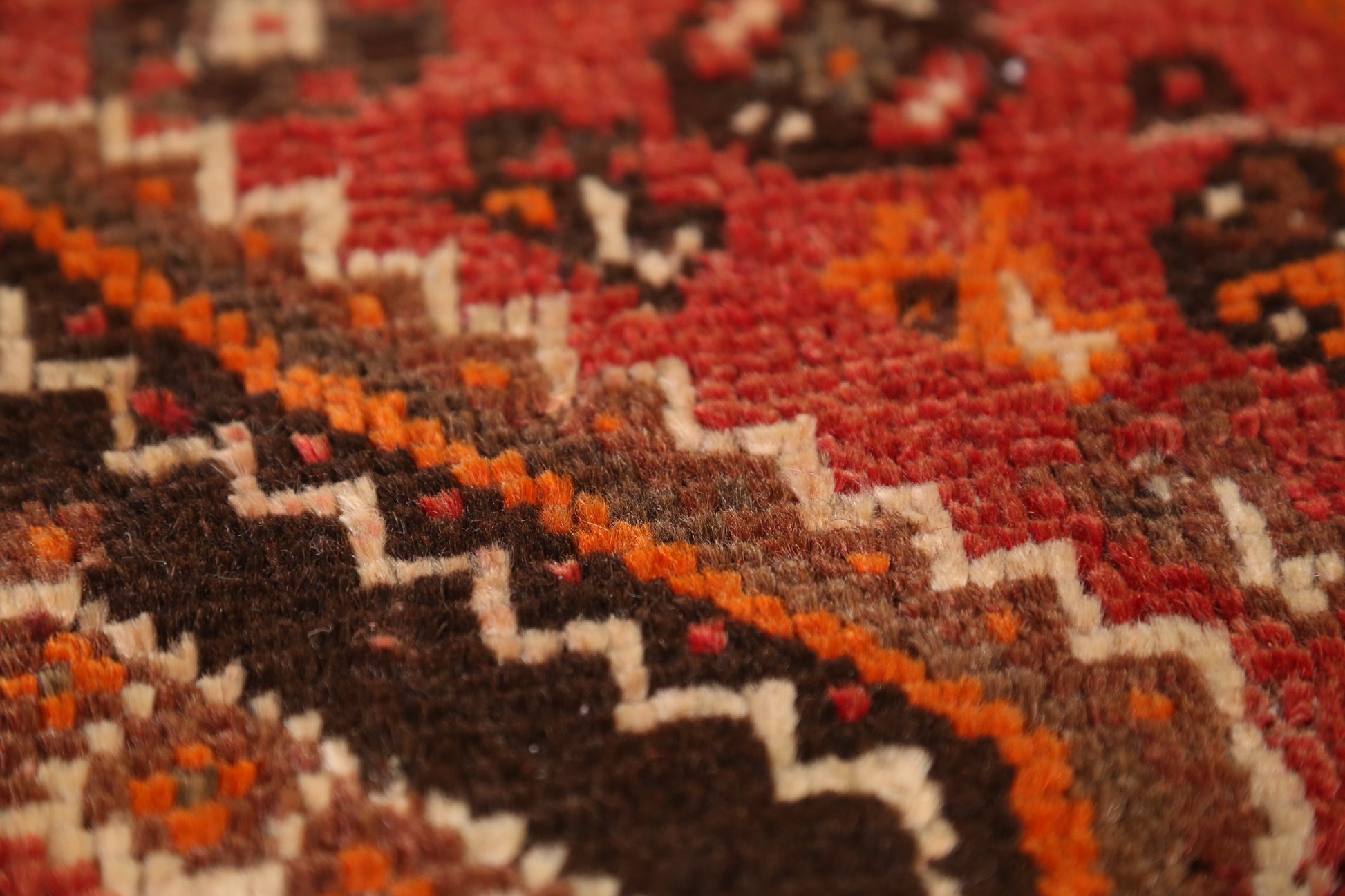 A Beautiful Genuine Persia ( Persia ) Qashqai rug is Hand Knotted by skillful weavers in Persia ( Persia ) with 100% Wool Material. This rug is in Very Good ( Evenly Low Pile-Repair) condition. dimensions are 4' 10'' X 3' 7'' in foot and 147 X 109 in centimeter. the primary color is Oranges & Rust.